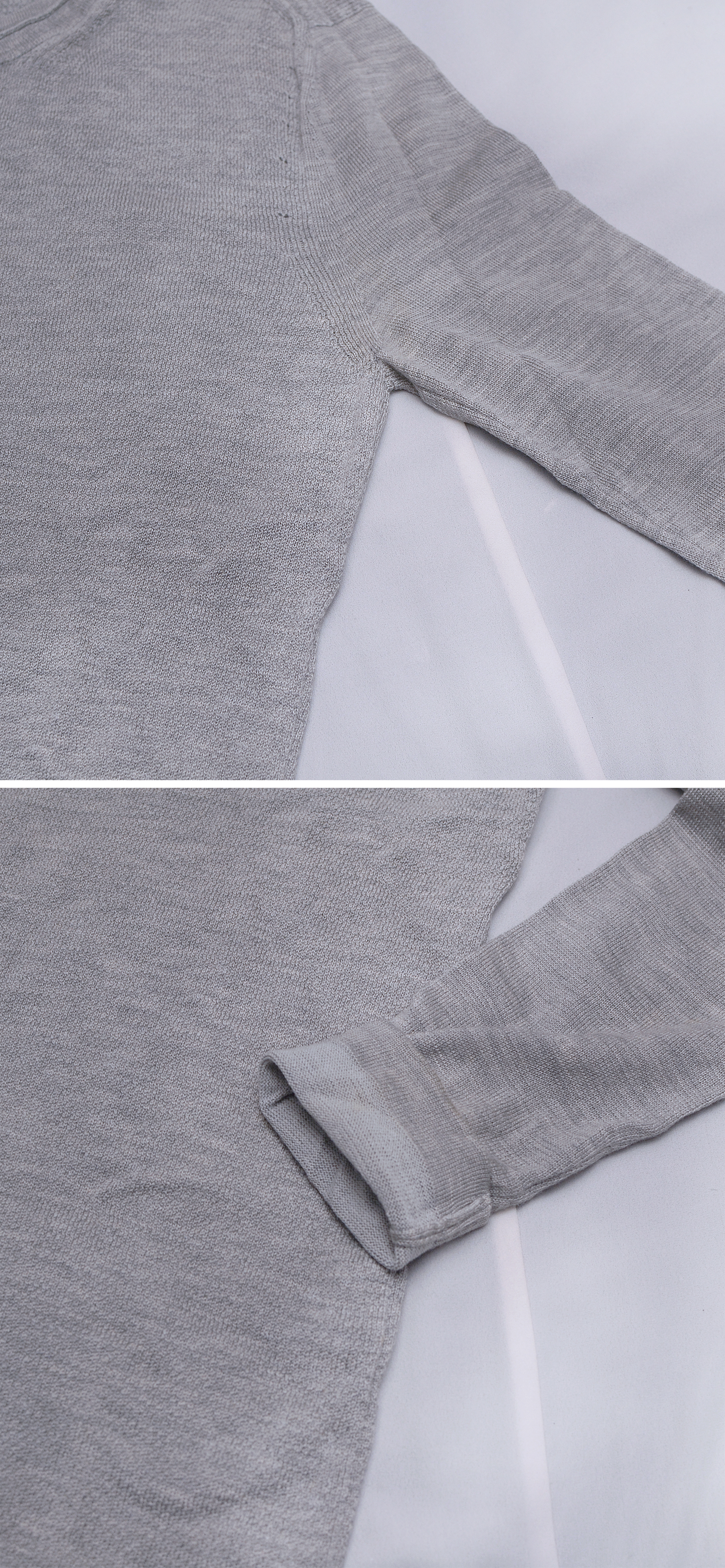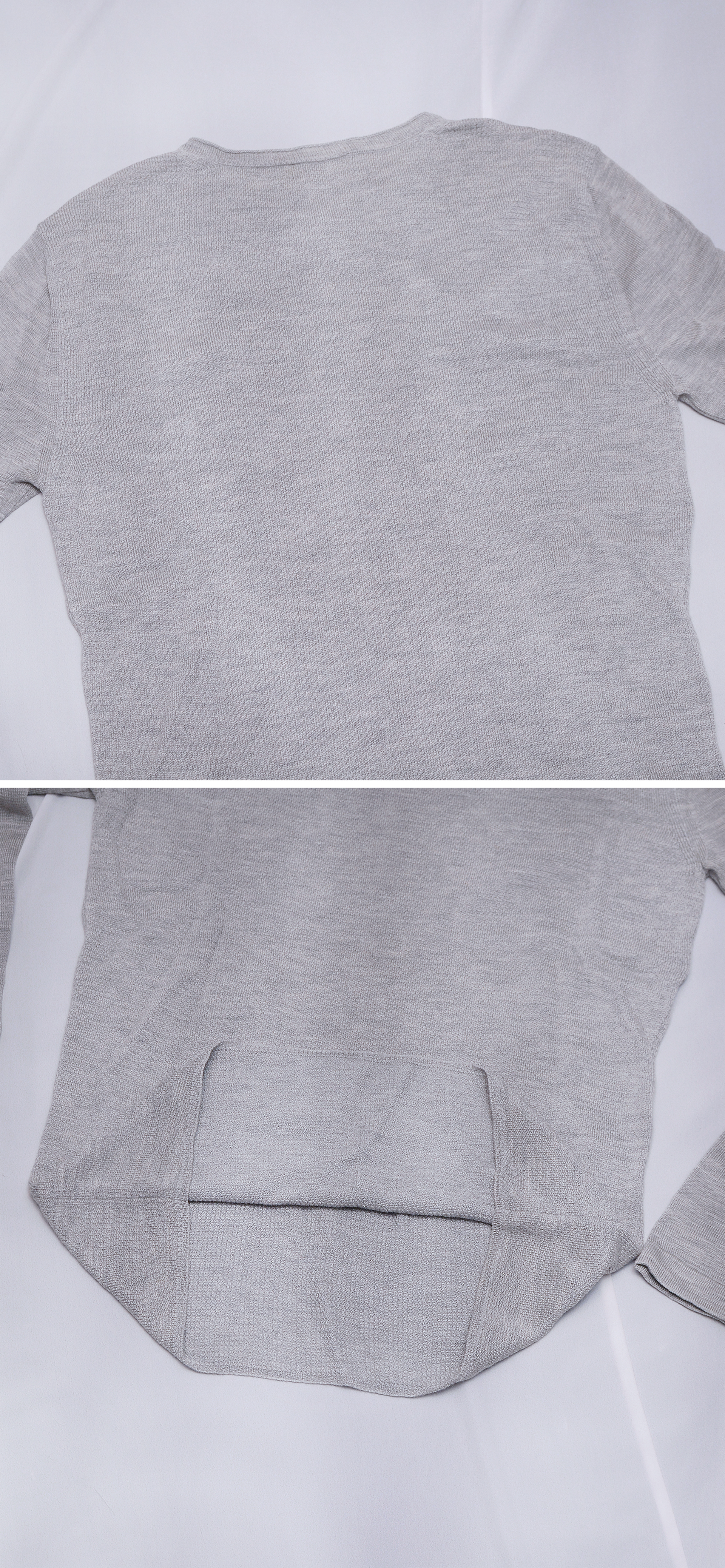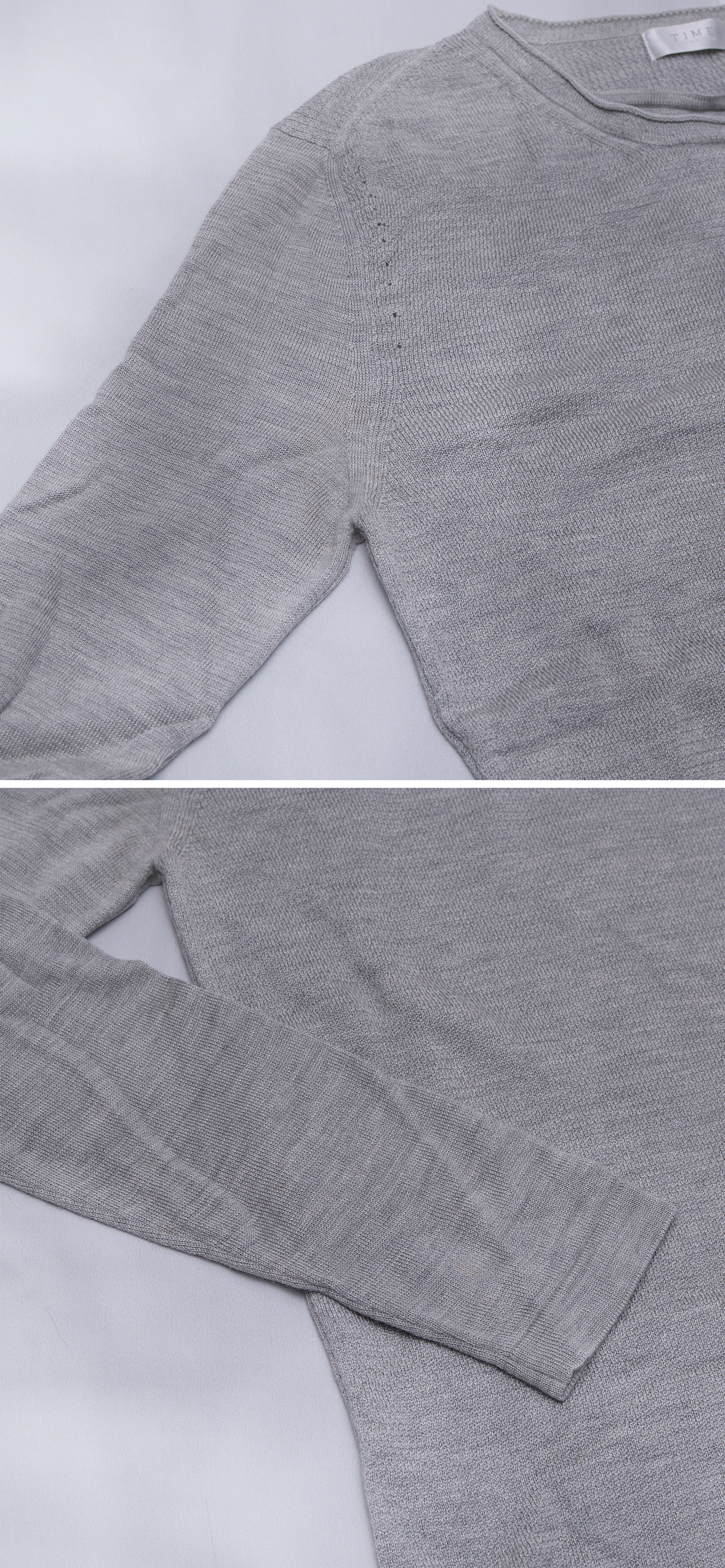 더 한섬 타임다운 우아하고 미니멀한 스타일에 부드럽게 떨어지는 라인 패턴 매우 좋고 목부분 레이어트 타입의 더블 라운드넥으로 포인트 되어 있어 멋스럽습니다. 차분한 그레이 컬러 울 71% 견(실크) 29% 최상급 소재로 부드러운 촉감 착 떨어지는 핏 매우 좋고 가볍습니다. 두껍지 않은 적당한 두께감에 통기성 좋아 봄.가을 및 초겨울 이너 정도까지 두루 편하게 입기 좋습니다.