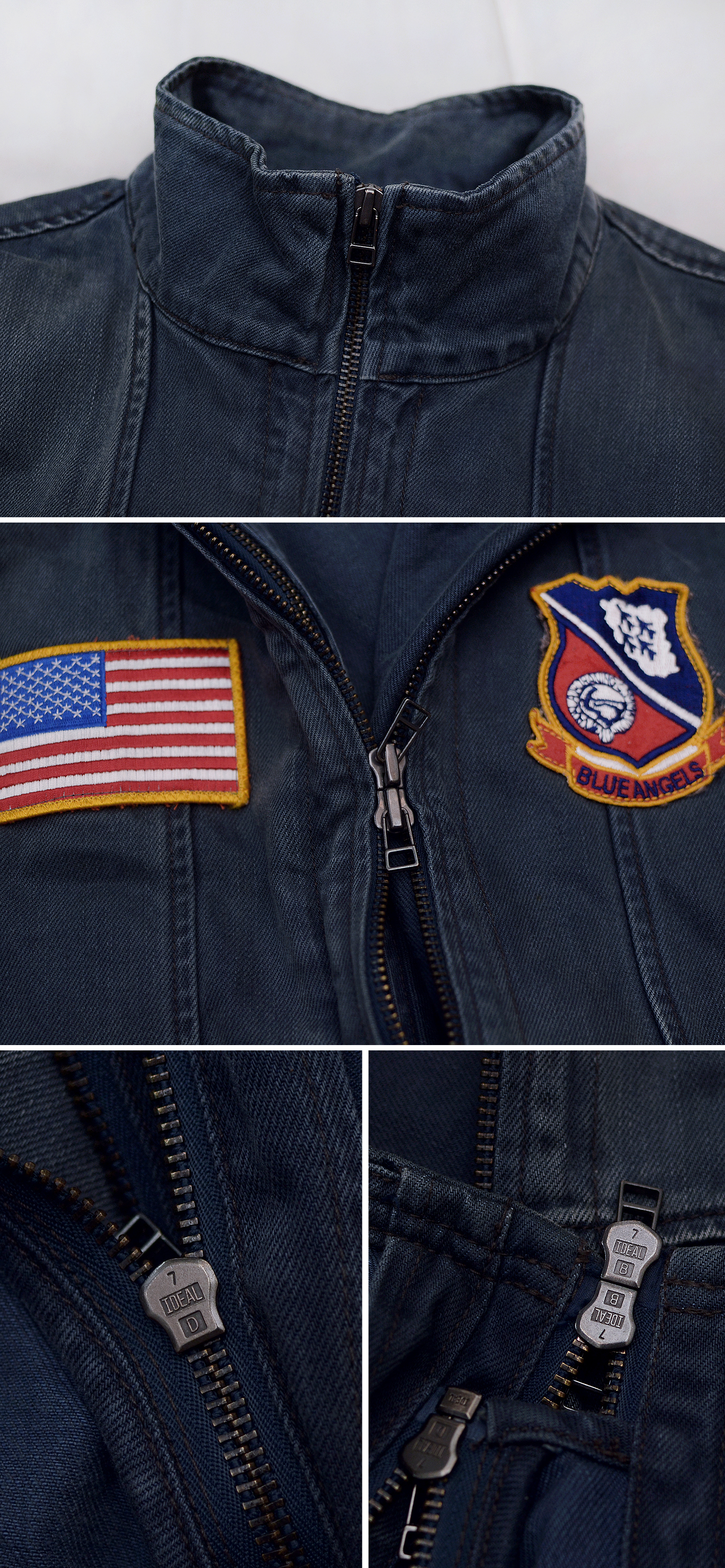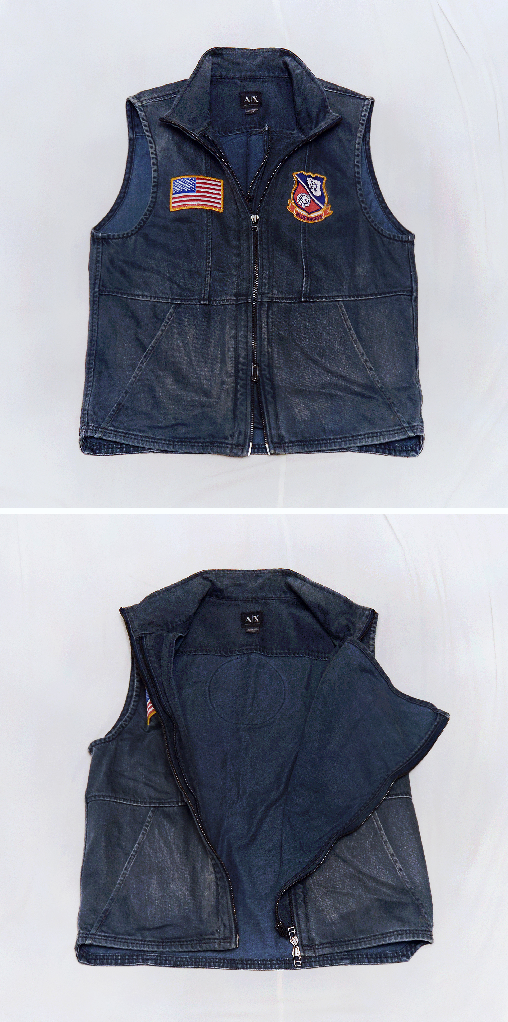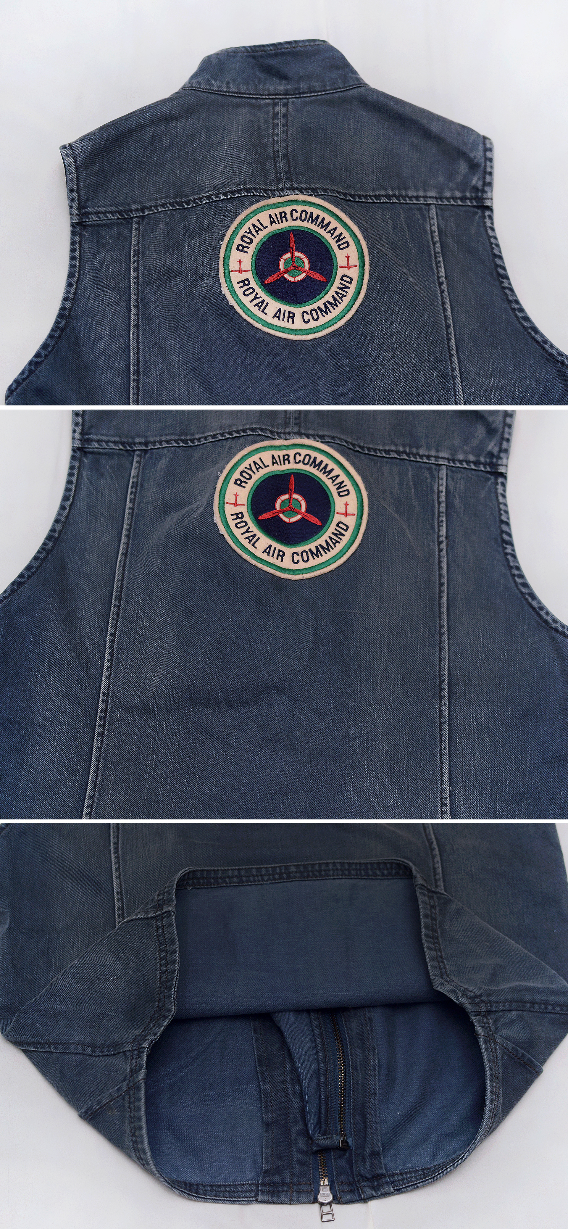 아르마니의 스트릿 캐쥬얼 익스체인지 라인의 멋스러운 아메카지 스타일 바이커.라이더 베스트 데님 조끼로 빈티지 러스틱 워싱된 탄탄한 데님 코튼 소재에 미국 성조기와 로얄 에어 코만도 공군 밀리터리 자수 와펜 디테일 장식등으로 멋스럽습니다. 미국산 아이디얼 (IDEAL) 지퍼 사용된 외부 메인 풀집업 양방향 더블 지퍼에 안쪽에는 윈드가드용 내피 타입 지퍼 이너 카라 되어 있어 실제 라이딩시 외부 바람등 잘 막아주는 바이커 조끼로서의 디테일까지 단순한 패셔너블한 스타일뿐 아니라 실제 라이딩용 베스트 자켓으로의 기능성도 좋습니다. 봄.여름철 멋스러운 라이딩용 데님 베스트뿐 아니라 일상용 빈티지 스트릿 스타일로 반팔티.후드티등과 함께 매치해서 입어도 멋스럽습니다.