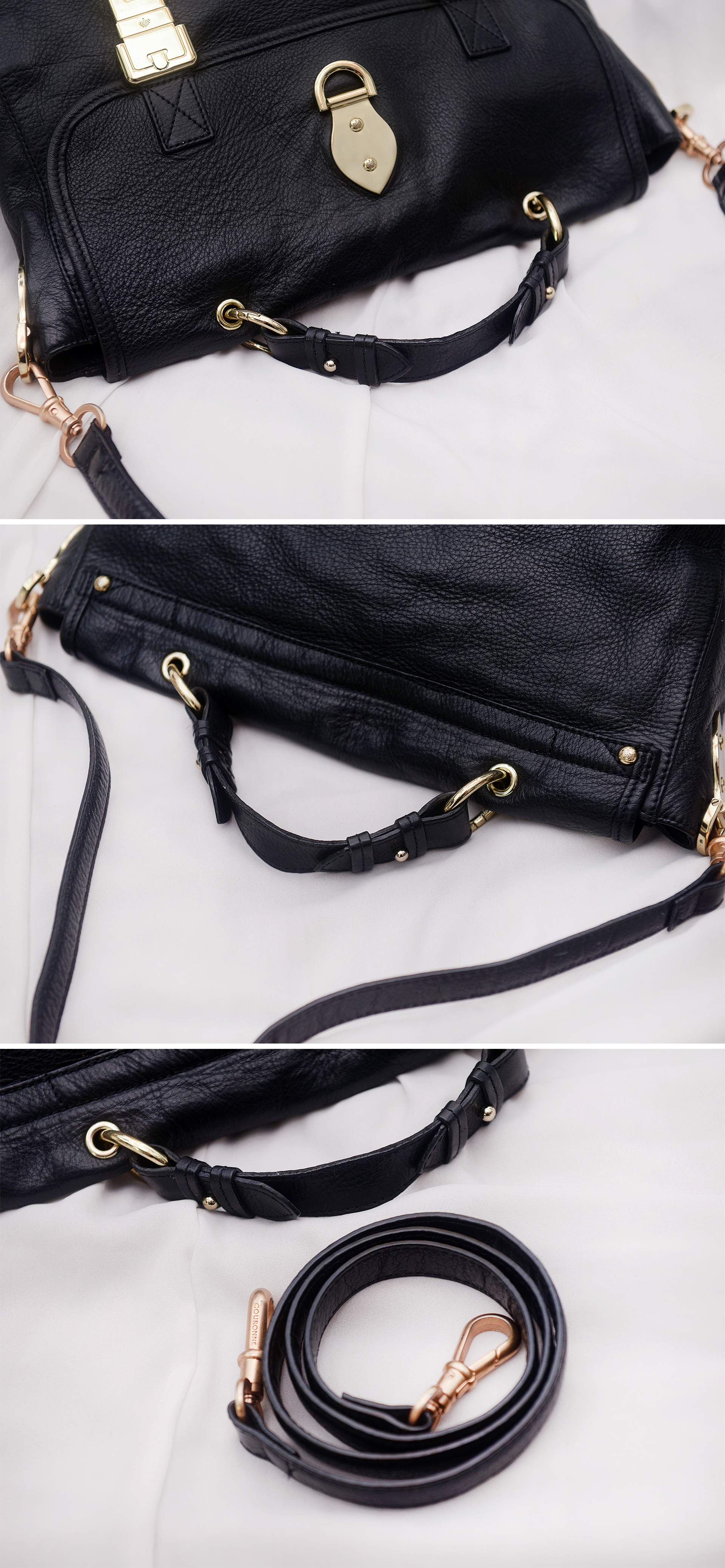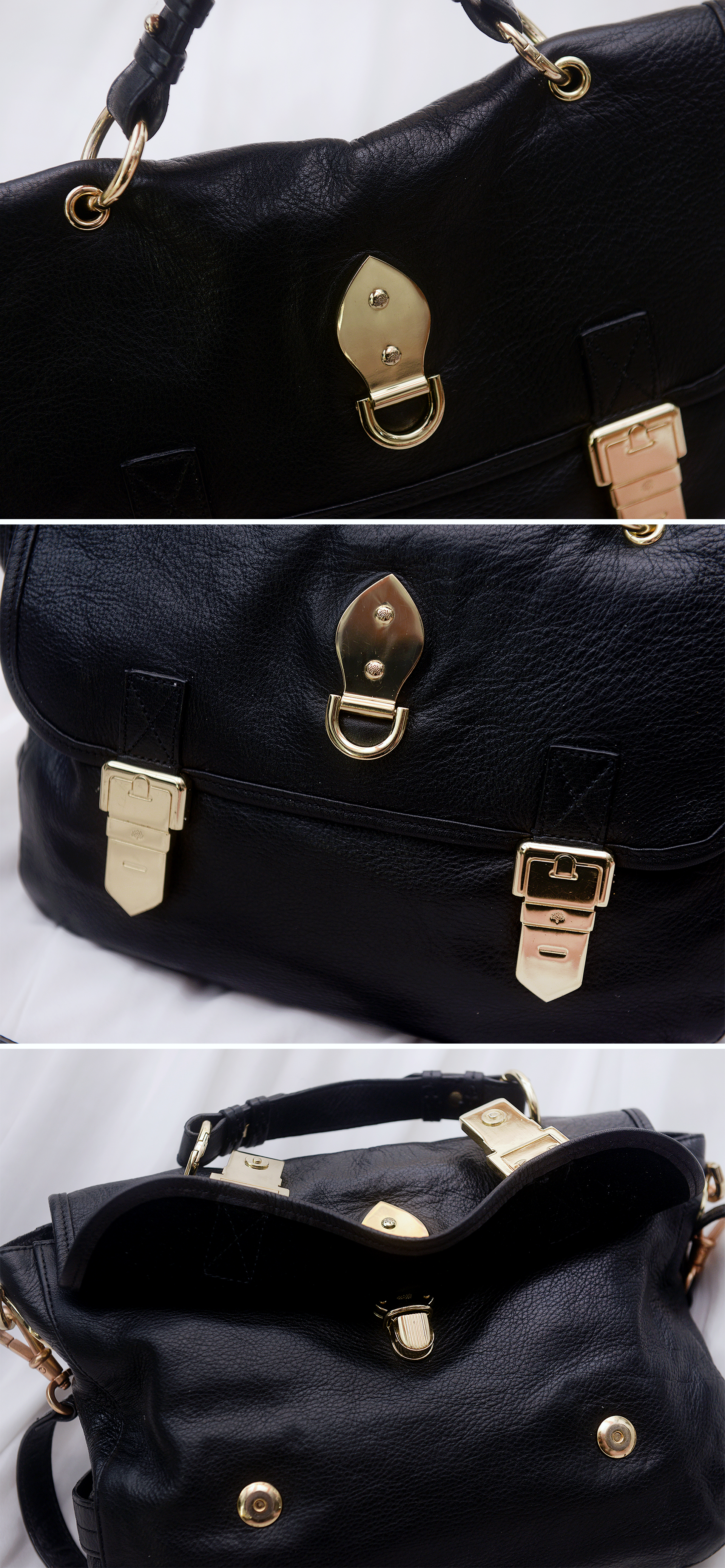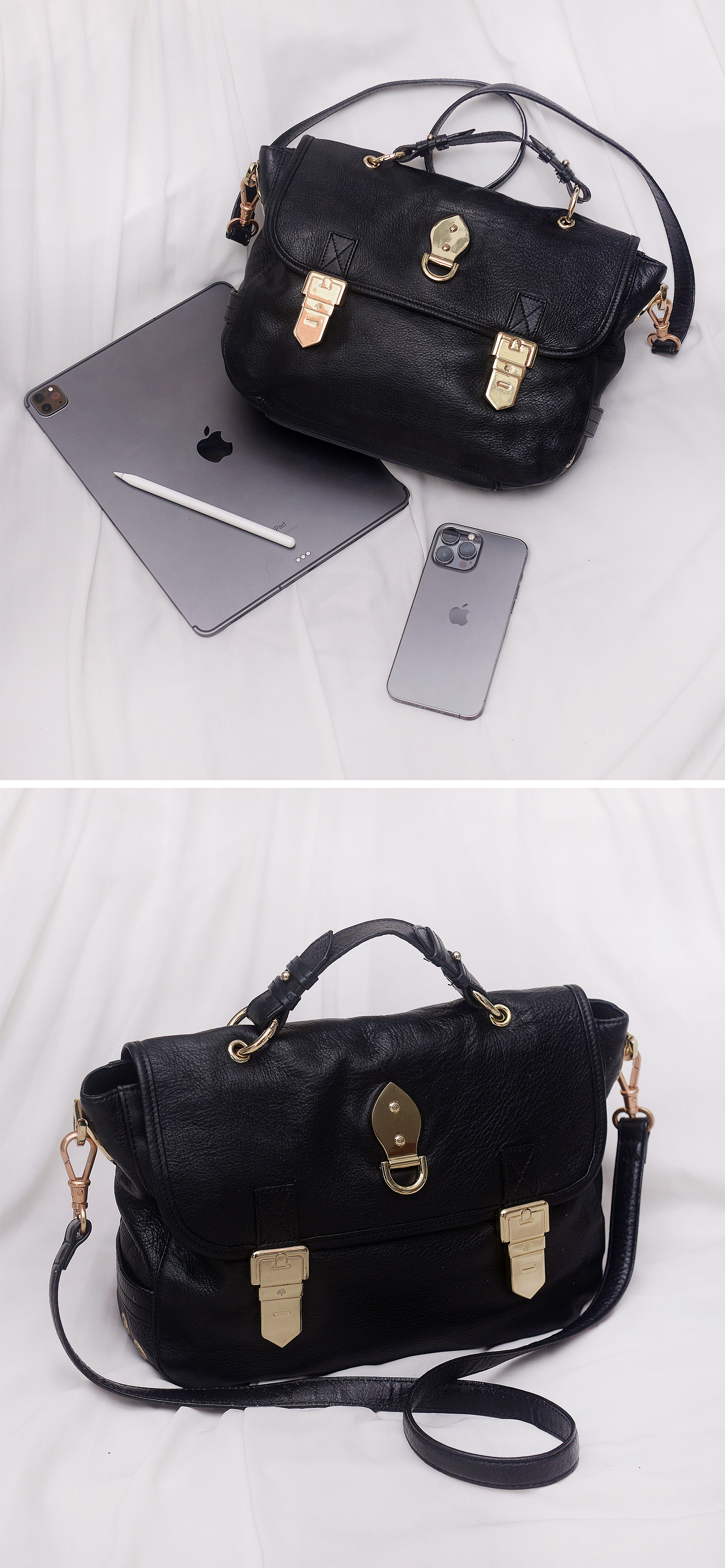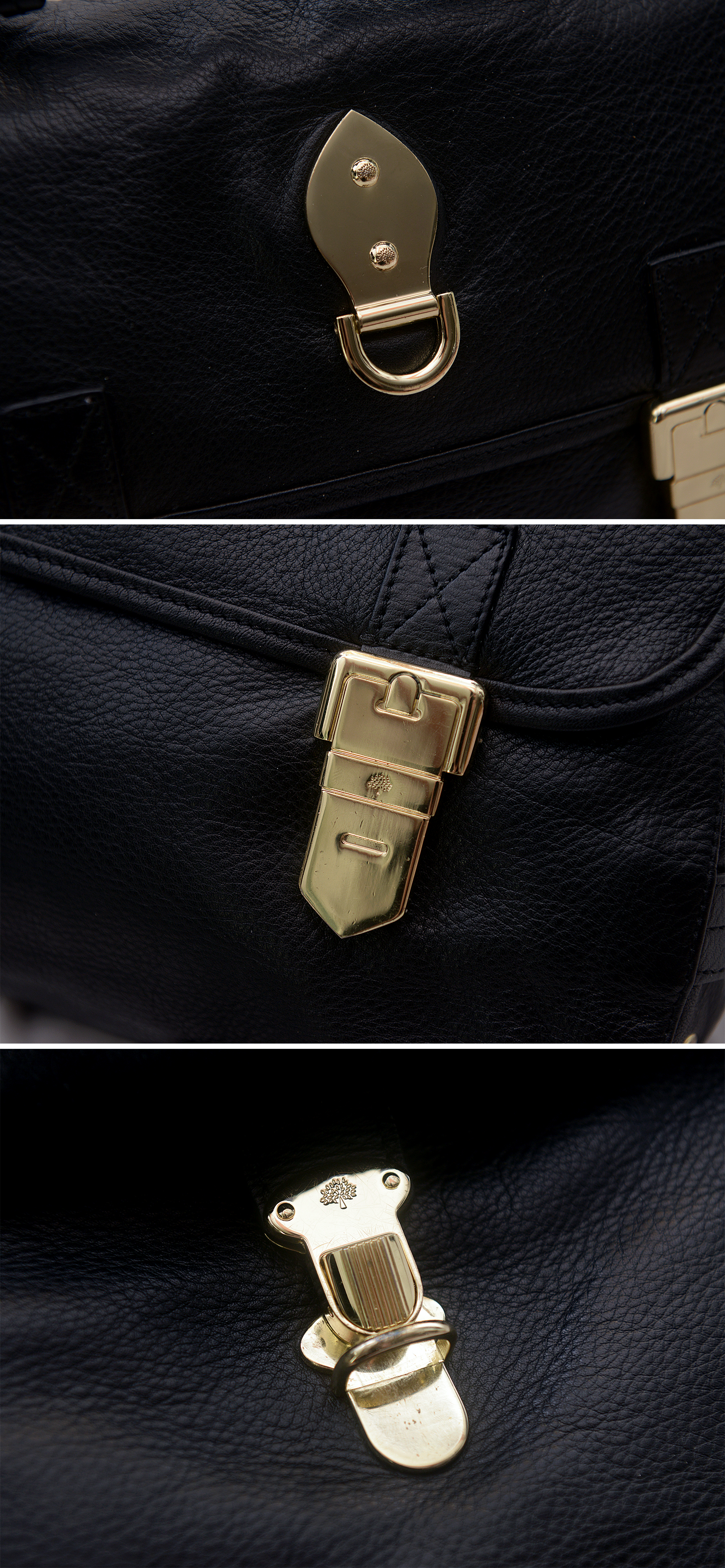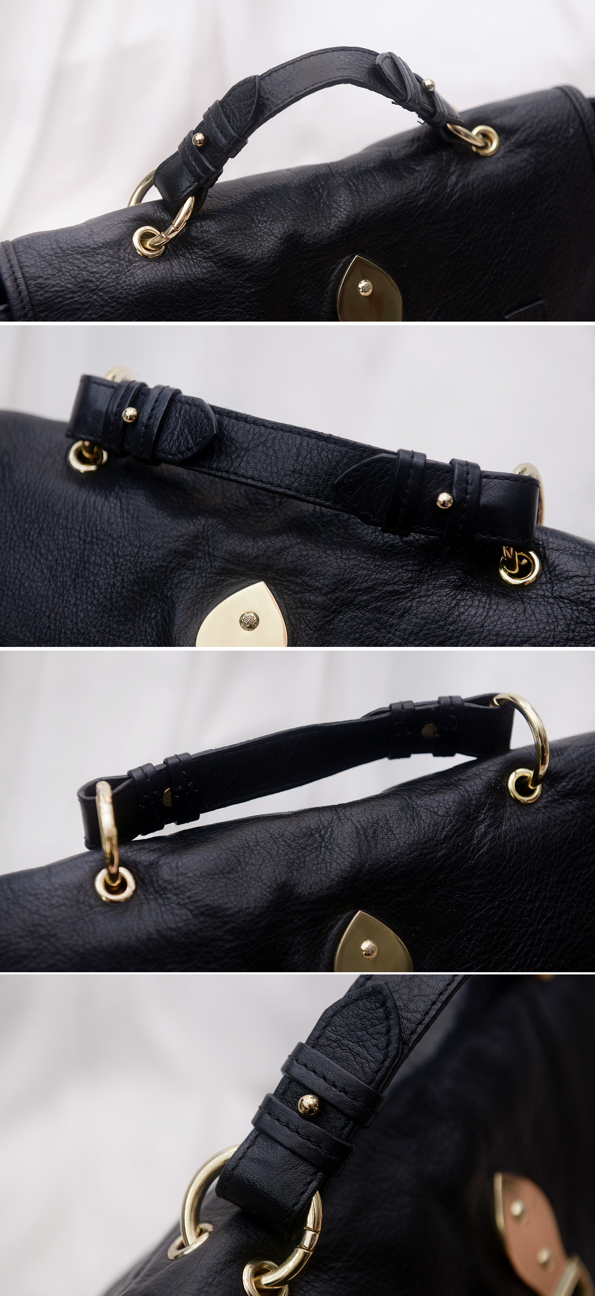 멀버리다운 최상급 소재의 부드러운 촉감과 멋스러운 소프트그레인 엠보의 풀그레인 가죽에 클래식하고 멋스러운 디자인과 만듬새 매우 좋은 가죽 탑커버 스타일 원핸들 사첼백 브리프케이스 메신저백 리포트백입니다. 묵직하게 딱 잡아주는 마그네틱 오픈.잠금 장치와 금속 버클식 잠금 벨크로 접착까지 3중으로 되어 있어 수납품 이탈 걱정 없이 확실하게 보호해 줍니다. 클래식한 디자인에 블랙&골드 컬러 조합으로 남여공용 누구나 잘 어울리고 일상용 데일리백부터 비즈니스용 브리프케이스등 다용도로 두루 사용하기 좋습니다.