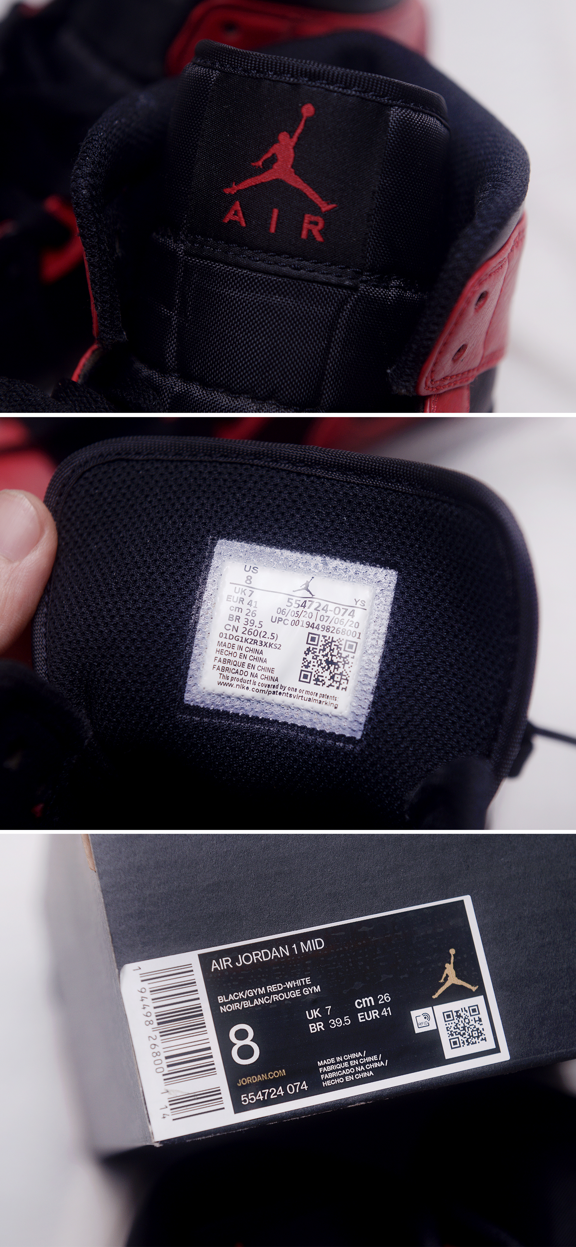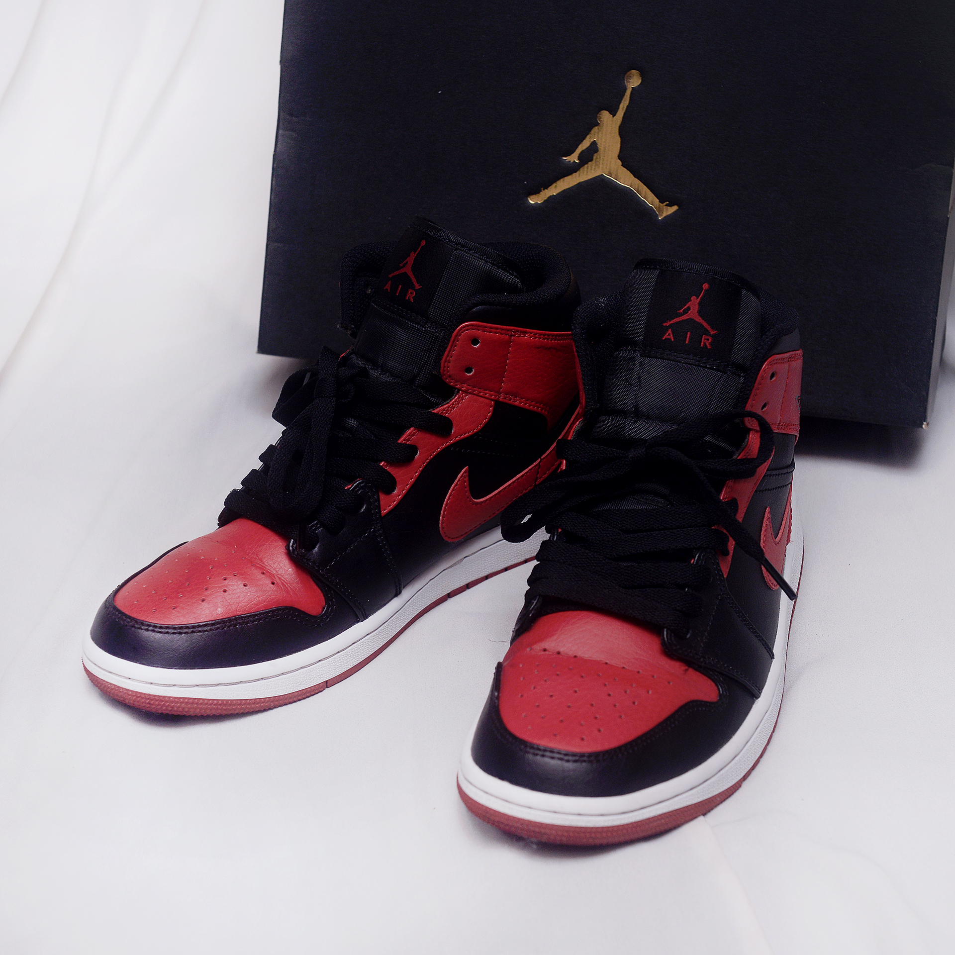 나이키 (NIKE) 에어조던1 미드 브레드 2020 버전 일명 검빨 컬러 당연히 정품