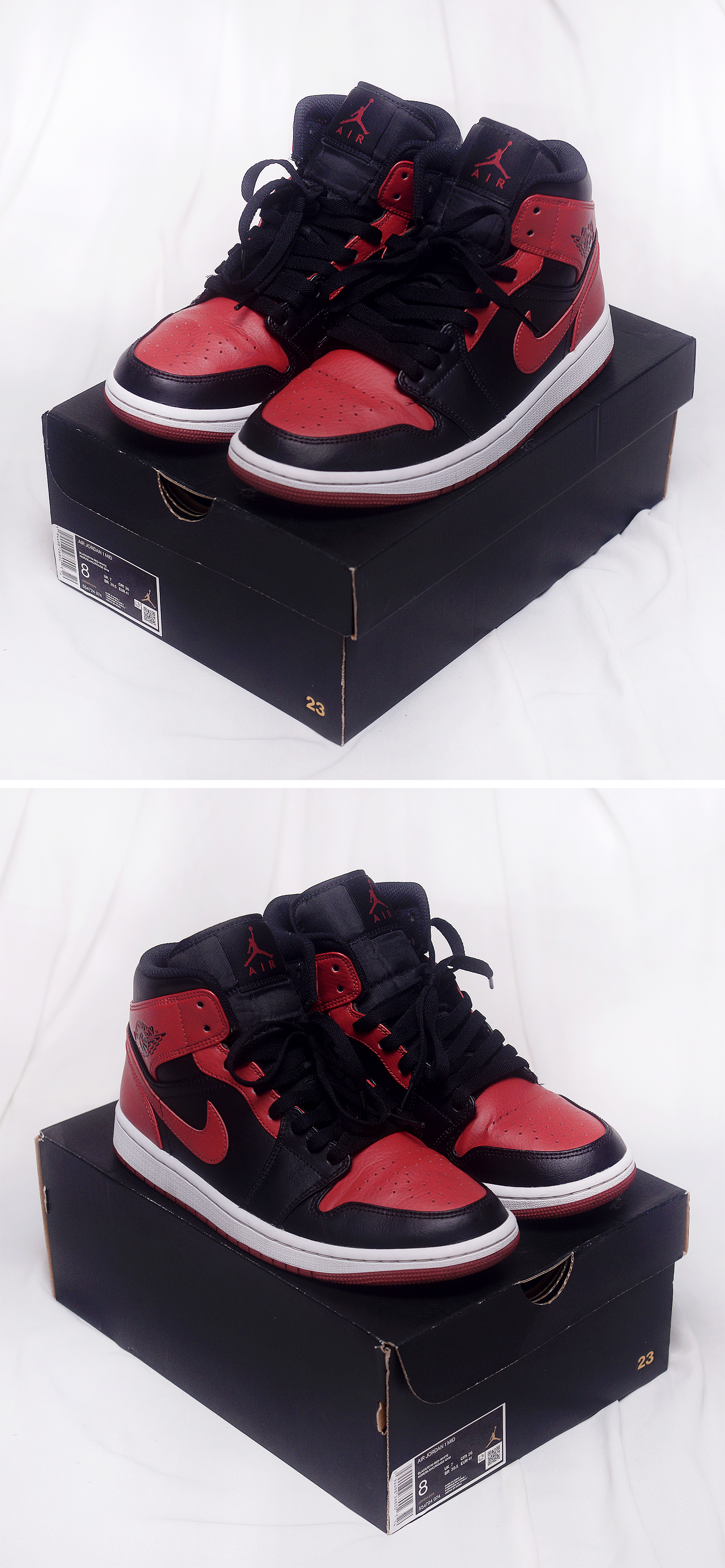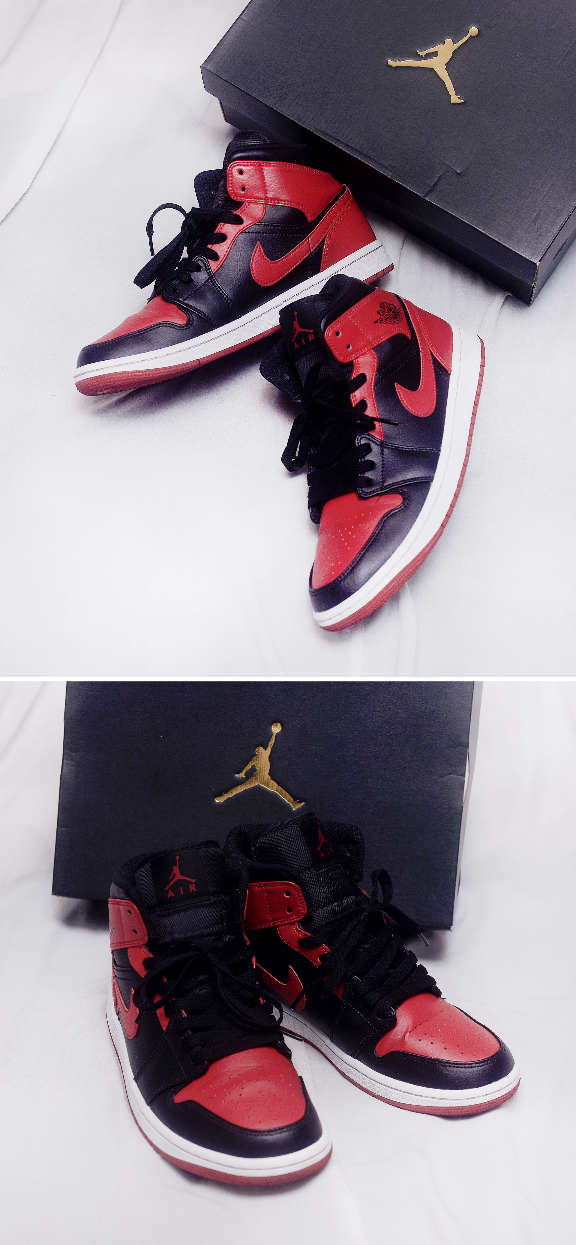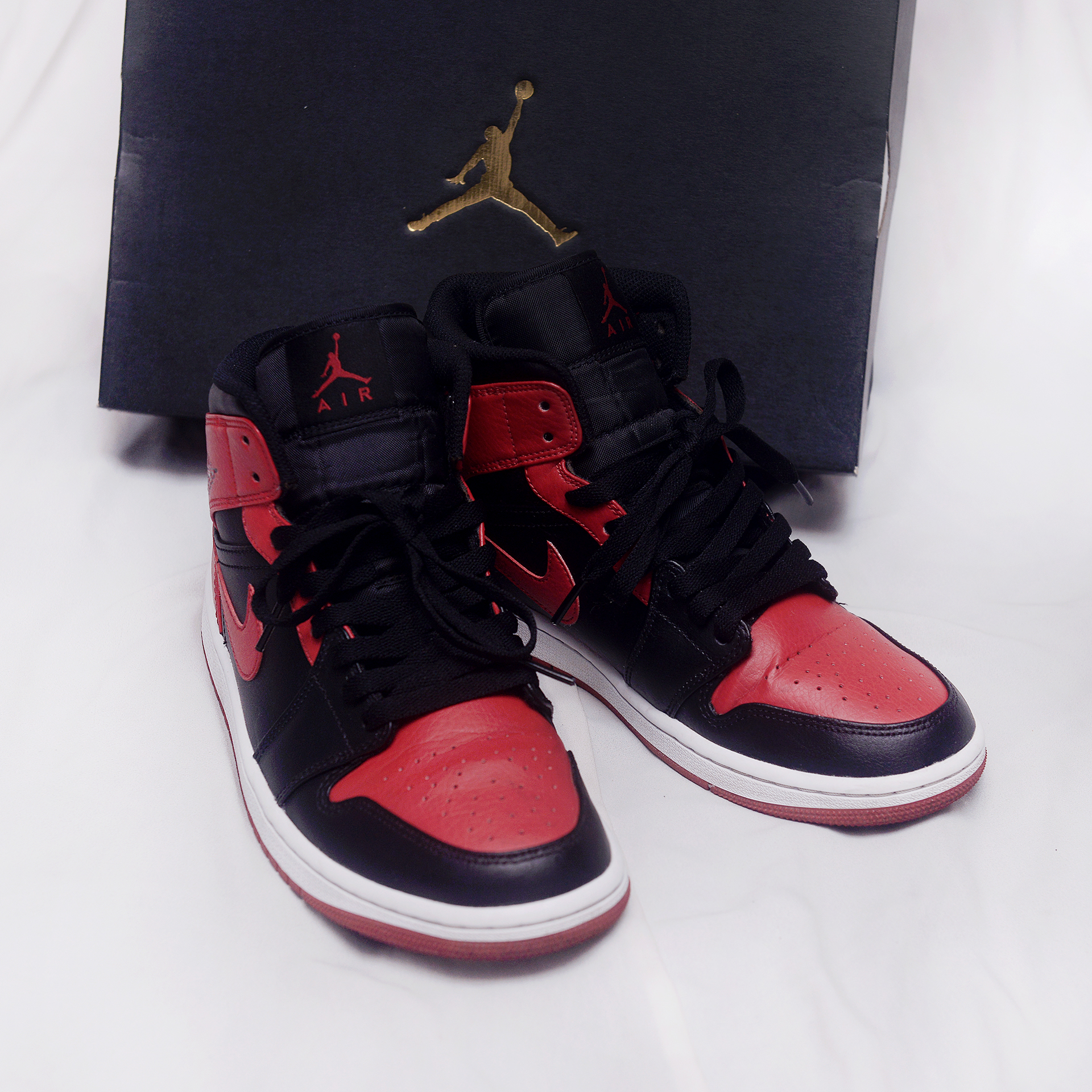 신품급) 나이키 에어 조던1 미드 브레드 밴드 검빨 (US8 / 260) - 13만