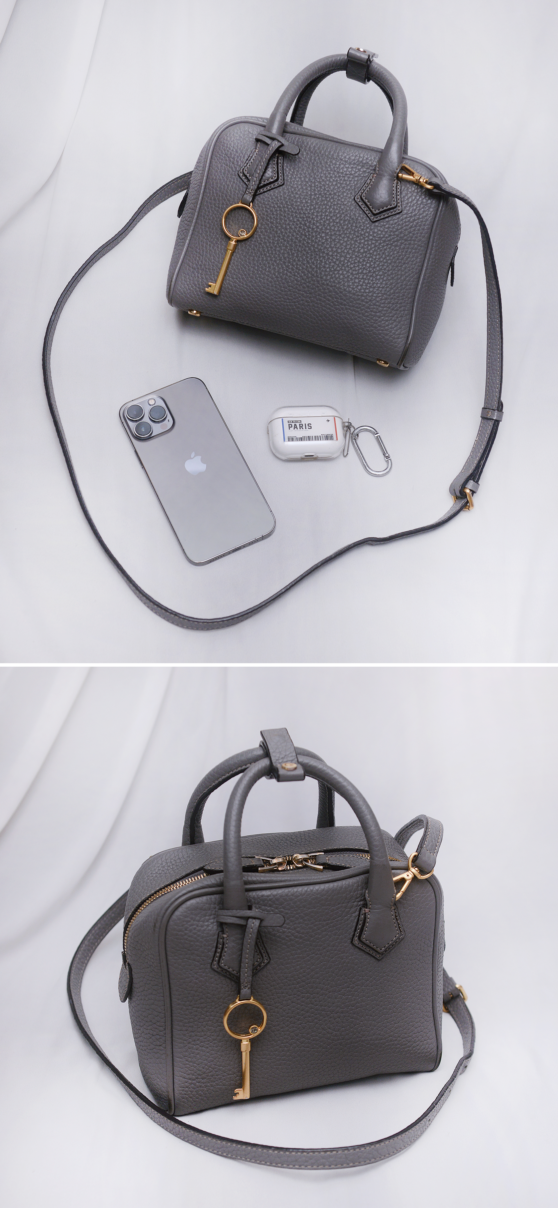 타마 (THAVMA) 크리스타 미니미 그레이 토고 가죽 토트.숄더.크로스 미니백