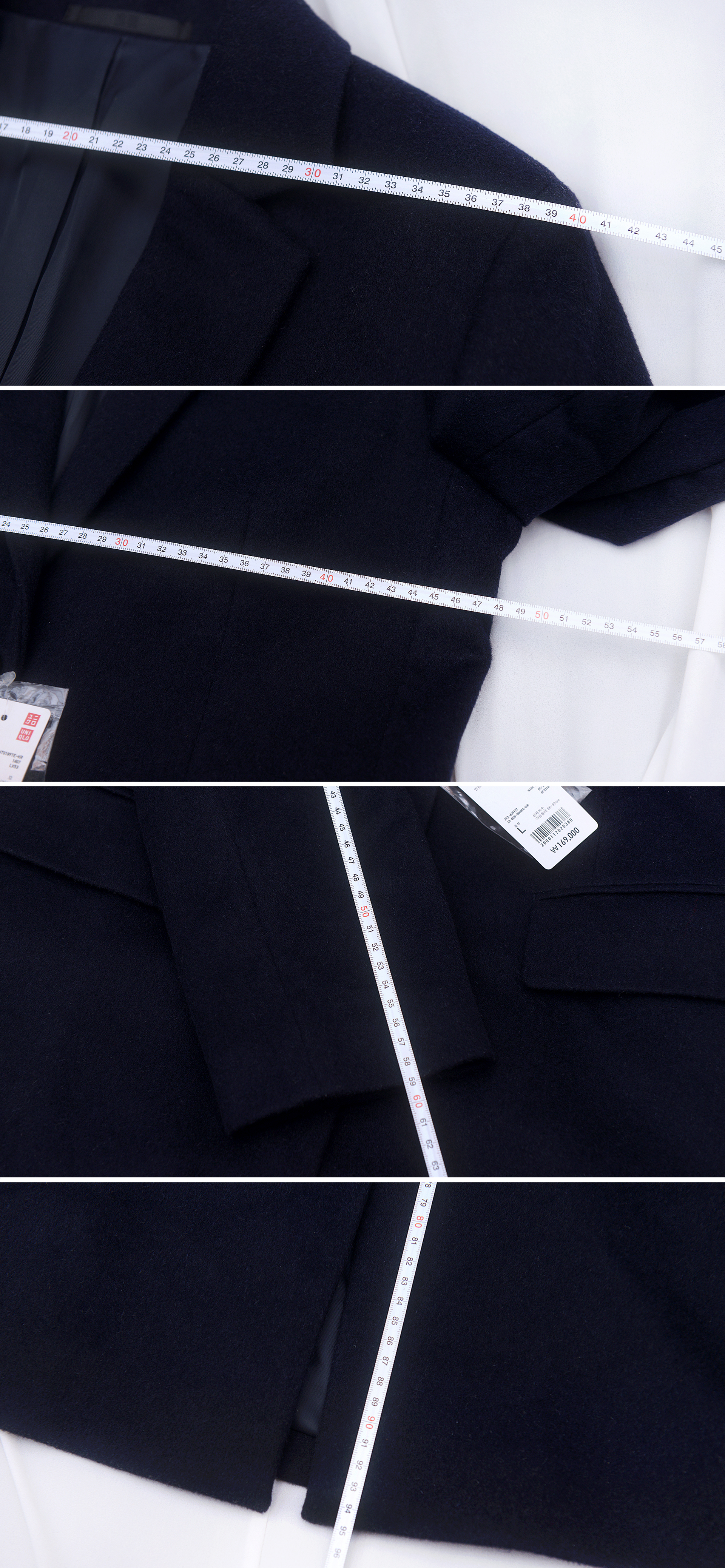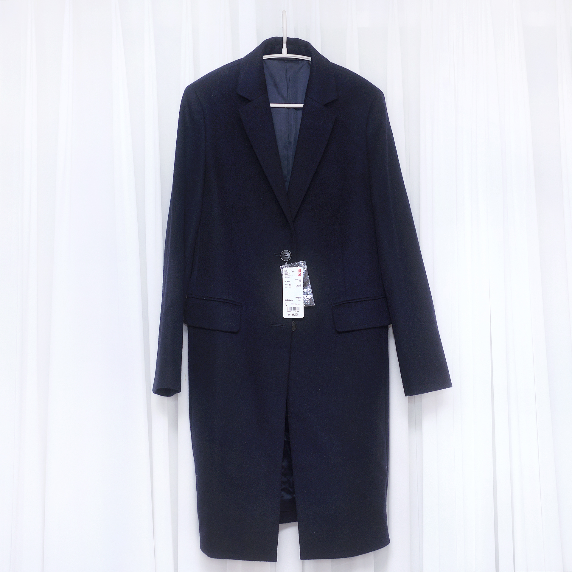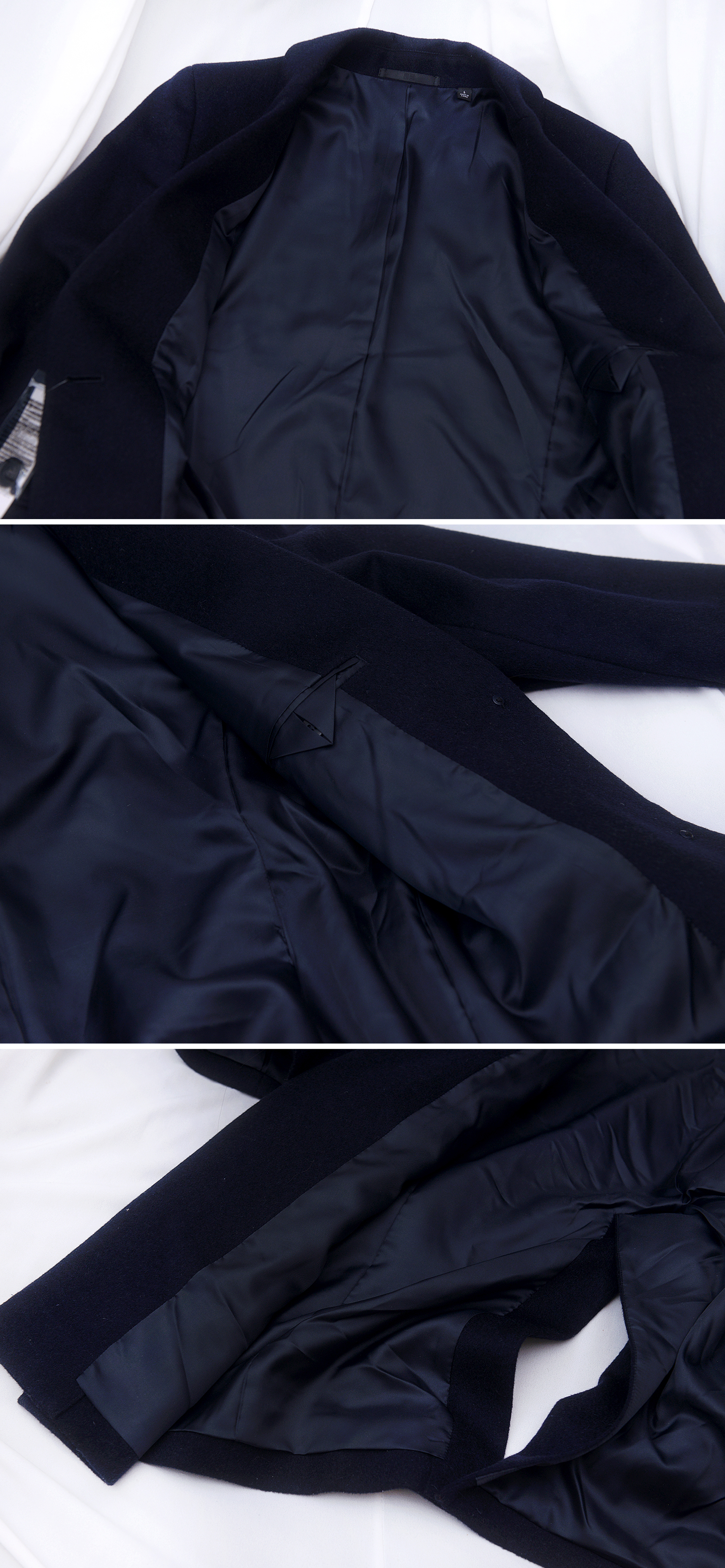 중보급형 SPA 브랜드인 유니클로에서도 나름 고가 라인업으로 매년 나오는 스테디셀러 고급형 클래식 캐시미어 체스터 코트자켓으로 울90 캐시미어10 소재로 확실히 소재감 매우 좋고 캐시미어 특유의 지블링 광택 어느정도 보여서 고급스럽습니다. 딱 깔끔한 스타일의 짙은 다크 네이비 컬러의 클래식한 일자핏 코트 자켓으로 겨울철 깔끔한 일상용 데이트룩부터 출.퇴근용 정장 코트등으로 입기 좋습니다.