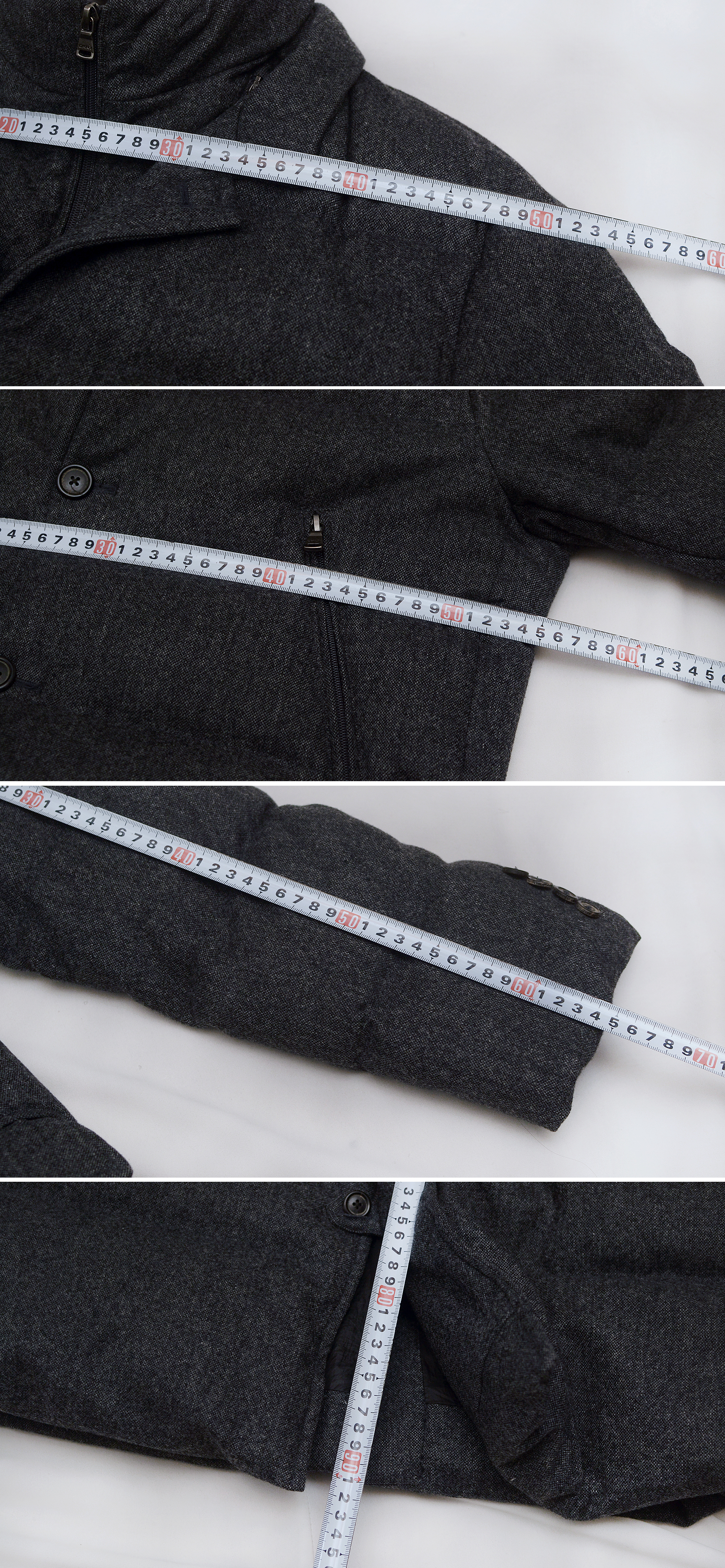 정도로 시크하고 포멀한 디자인 스타일의 브랜드 특성상 핏한 패턴이라 일반 국내 사이즈 기준 넉넉 100-105 정도 보시면 될거 같습니다. 보통 체격 남성분들 살짝 여유로운 폼으로 입기 좋고 105 정도 입는 분들 딱 깔끔한 핏으로 입기 좋습니다. 자연스러운 착용감 정도 있으나 다른 겨울철 코트.패딩등 아우터 많아 돌려가며 입는 편이라 눈에 띄는 파손.훼손없이 상태 양호합니다.