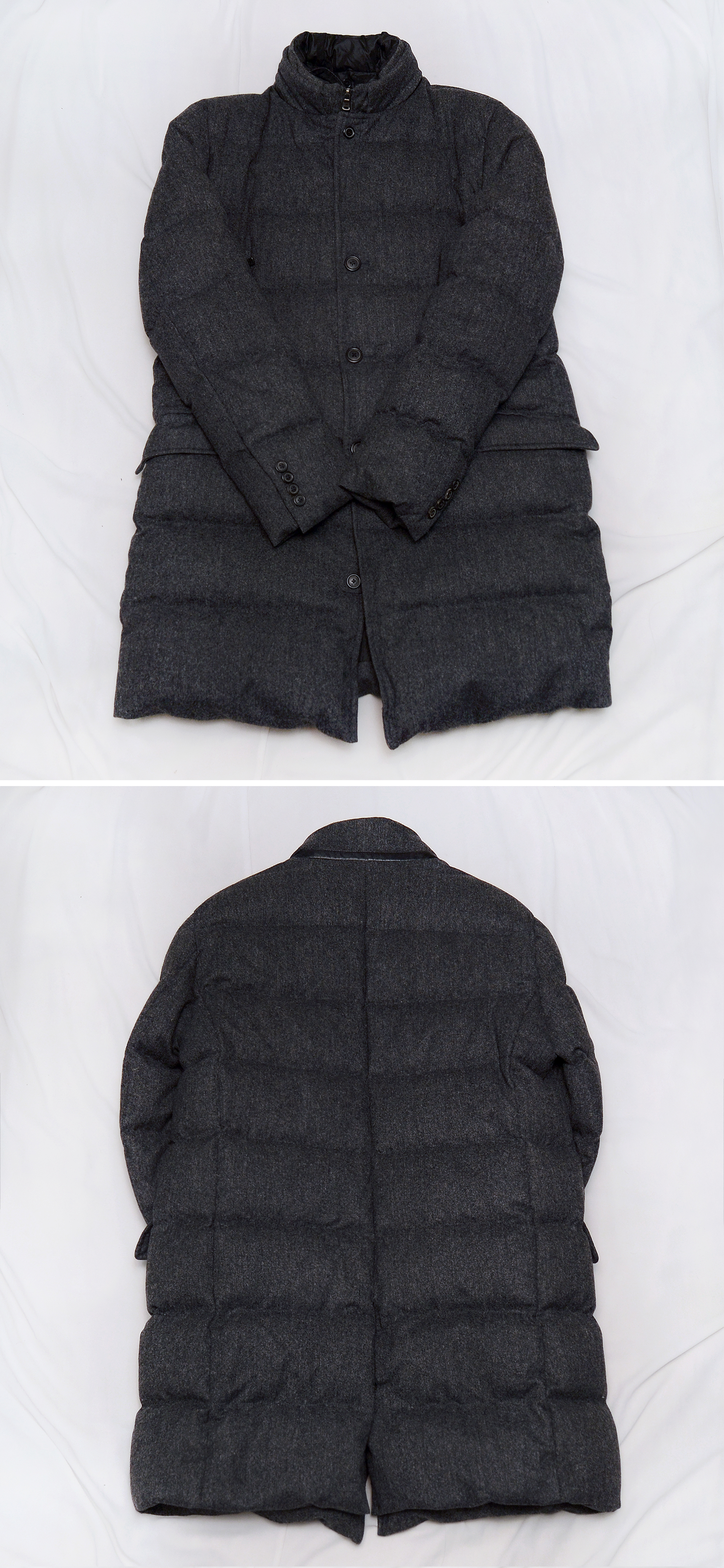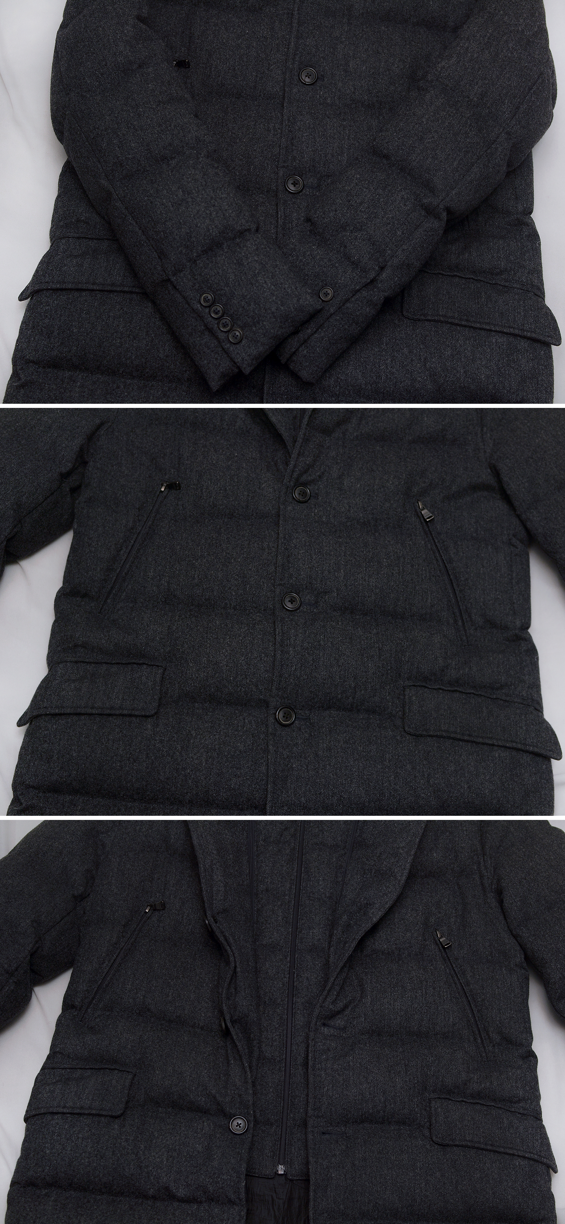 명품 하이 컨템포러리 브랜드 오리지널 DKNY 도나카란 뉴욕 백화점 매장판 풀구스다운 롱패딩 울.실크 코트 입니다. 겉감은 350년 넘는 역사의 최고급 이탈리아 명품 원단인 까노니코사의 차콜 그레이 컬러 섬세한 홈스턴 패턴 울.실크 원단으로 매우 고급스럽고 전체 바디부터 팔부분까지 프리미엄 구스다운 충전재 왠만한 대장급 롱패딩 이상으로 꽉 채워져 있으면서 탈착 가능한 이너 조끼형 하이넥 패딩 카라까지 이중으로 되어있어 한겨울 한파에도 압도적으로 따듯하고 포근합니다. 이너 카라 부분 떼고 입으면 좀 더 포멀한 롱패딩 블레이저 스타일로 연출 가능해 날씨나 코디에 따라 다양하게 활용하기 좋아 겨울철 일상용 롱패딩부터 비즈니스용 패딩 코트까지 두루 활용하기 좋습니다.