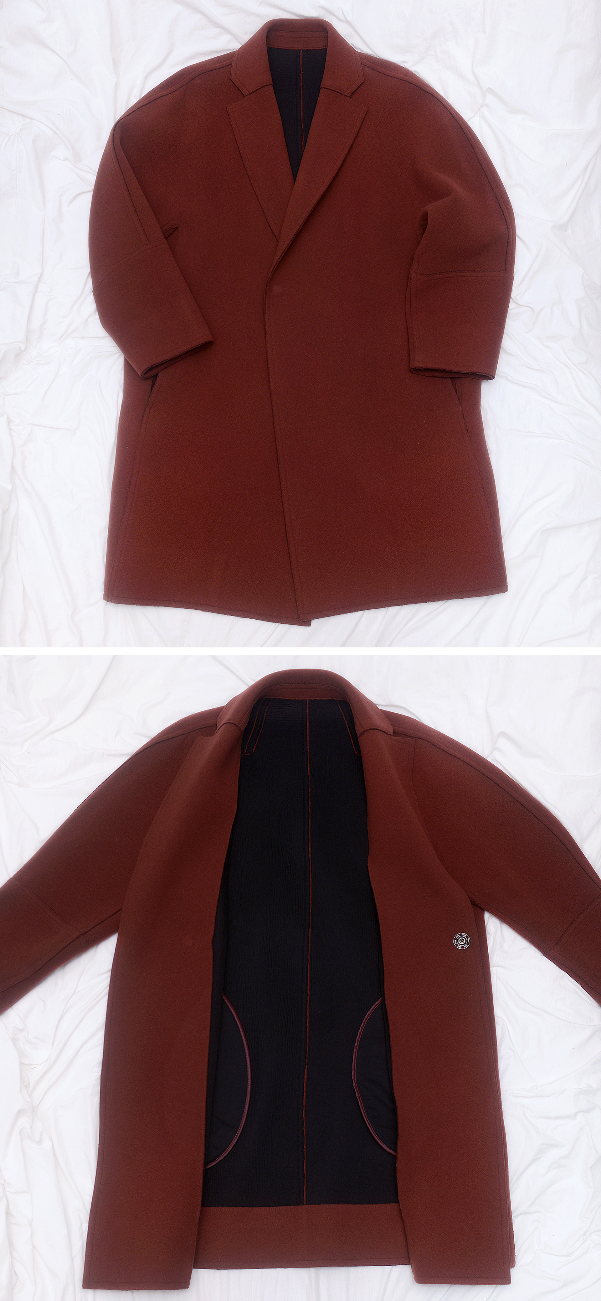 우영미 파리 컬렉션 라인 울캐시미어 핸드메이드 오버 코트입니다. 우영미다운 깔끔하고 우아한 라인에 부드럽게 떨어지는 멋스러운 오버핏 스타일 싱글 오버 코트로 우리나라를 대표하는 최고의 명품 남성복 패션 디자이너 브랜드답게 어깨선 따로 없이 일체형으로 딱 떨어지는 심플하면서도 입체적인 패턴 매우 좋아 실착시 핏 정말 아름답고 멋스럽게 연출됩니다. 짙은 적갈색 브릭 컬러 울.나일론.캐시미어 혼방 소재의 핸드메이드 방식 3중지 도톰하고 폭신한 소재감으로 착용감 훌륭합니다. 별도의 로고플레이등 전혀 없는 심플하고 미니멀한 스타일이면서도 메종 마르지엘라 등에서 자주 사용하는 별도의 원단 끝부분 마감처리 없이 내츄럴하고 러프한 해제주의 스타일의 절개면 그대로 드러내는 방식으로 멋스럽습니다. 핏이 정말 멋스러운 코트라 잘 애용했지만 다른 겨울철 코트등 많아 최근에는 잘 입지 않고 보관만 하고 있어 올려봅니다.