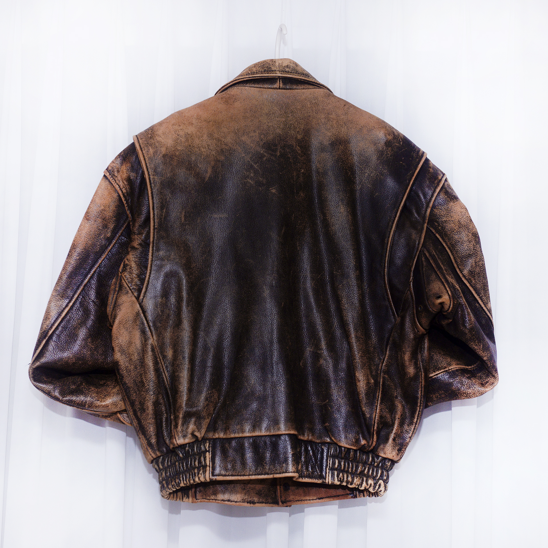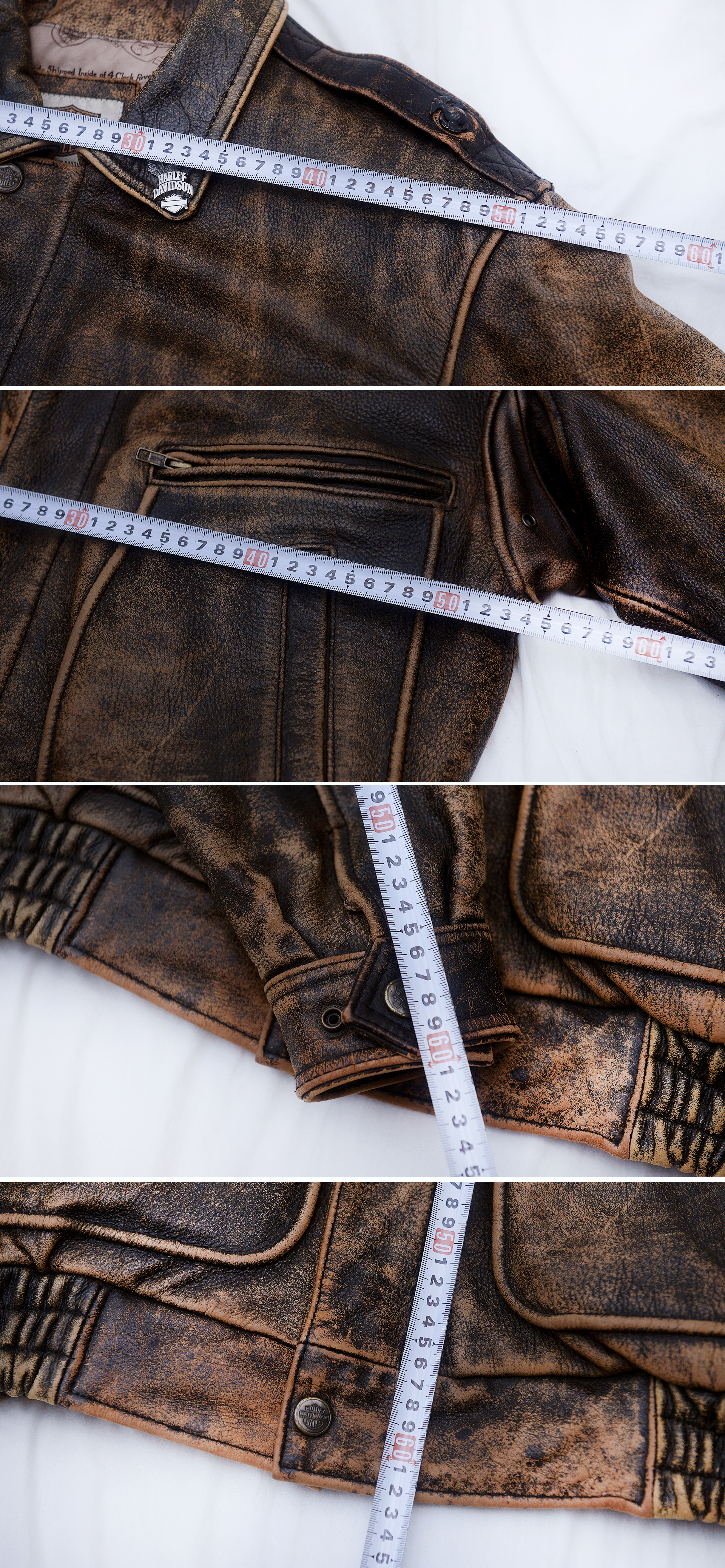 정도로 국내 사이즈 기준 넉넉 100-105 정도 보시면 될거 같습니다. 보통 체격 남성분들 살짝 여유로운 폼으로 입기 좋습니다. 다른 가죽 라이더 자켓들 많아 돌려가며 입는 편이고 주기적으로 가죽 스파해주며 관리해 눈에 띄는 파손.훼손 없이 상태 매우 좋습니다. 바이크 정리하고 잘 안 입더라도 워낙 멋스러운 자켓이라 소장할까 했으나 잘 입어주실 분에게 보내봅니다