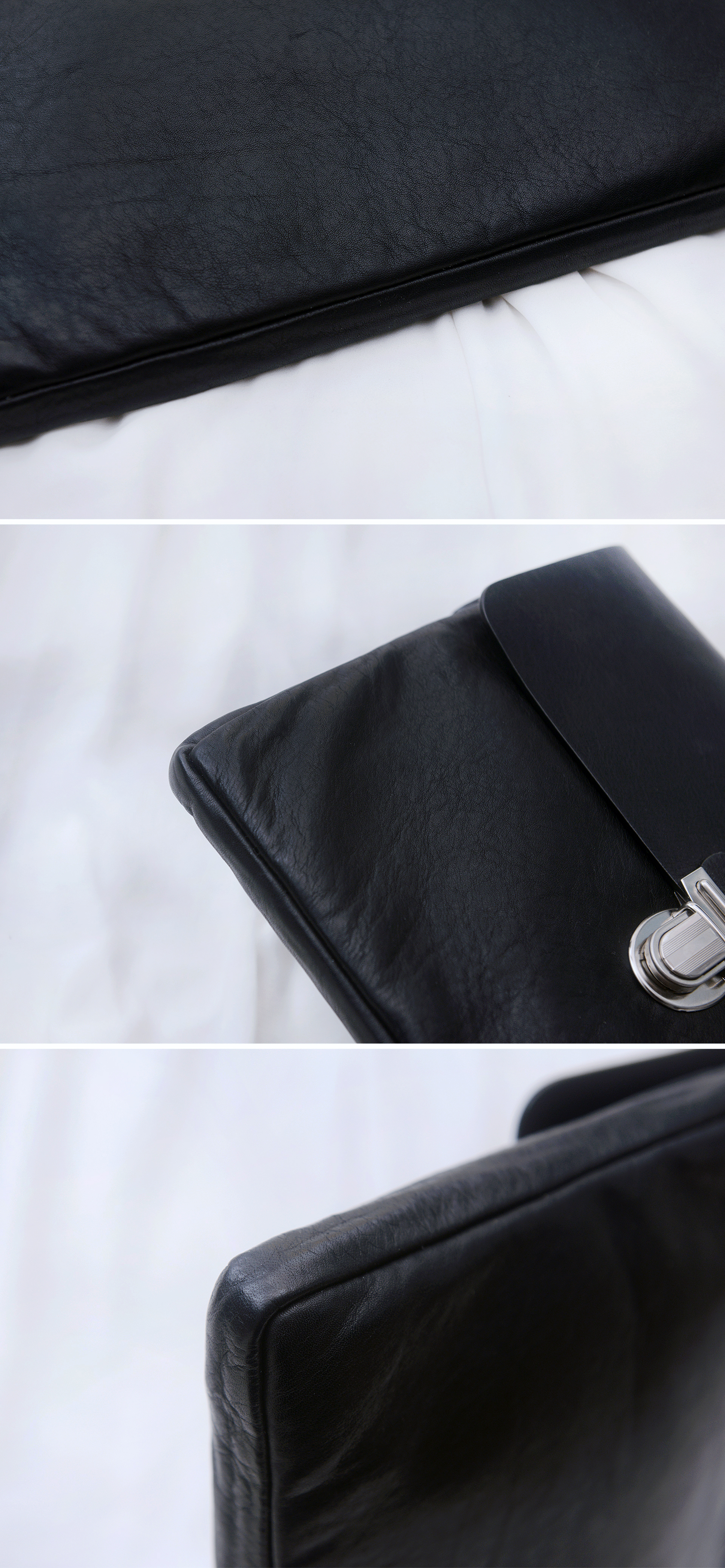 프렌치 클래식 스타일을 추구하는 아미다운 심플하면서도 우아한 프렌치 시크 스타일 화려하지 않지만 깔끔하고 멋스럽습니다. 최상급 이탈리안 풀그레인 베지터블 카프스킨 레더 (송아지 가죽) 소재에 은장 금속 버클 잠금 방식 가죽 탑커버 형태의 클래식 가죽 클러치백.브리프 케이스로 외부 금속 버클 잠금 및 안쪽 지퍼 이중 잠금 방식에 안쪽에 패딩 완충재 들어가 있어 수납품 확실하게 보호해 줍니다.