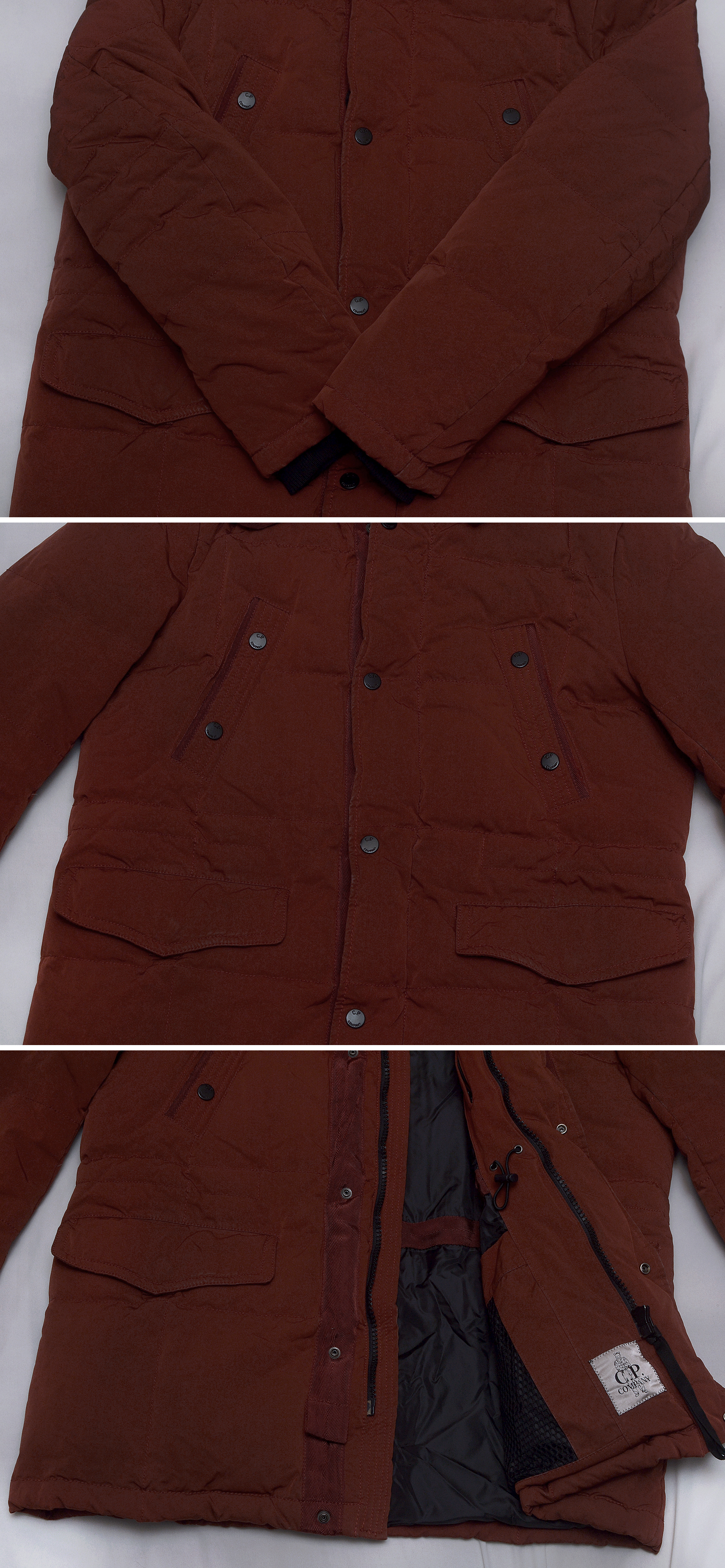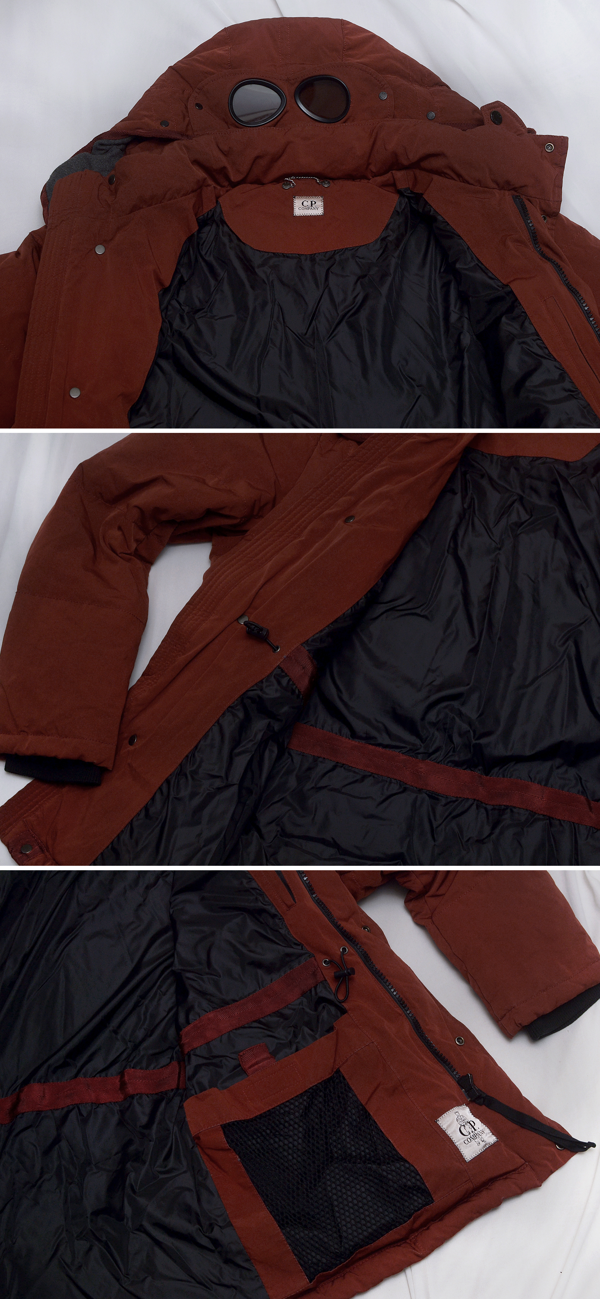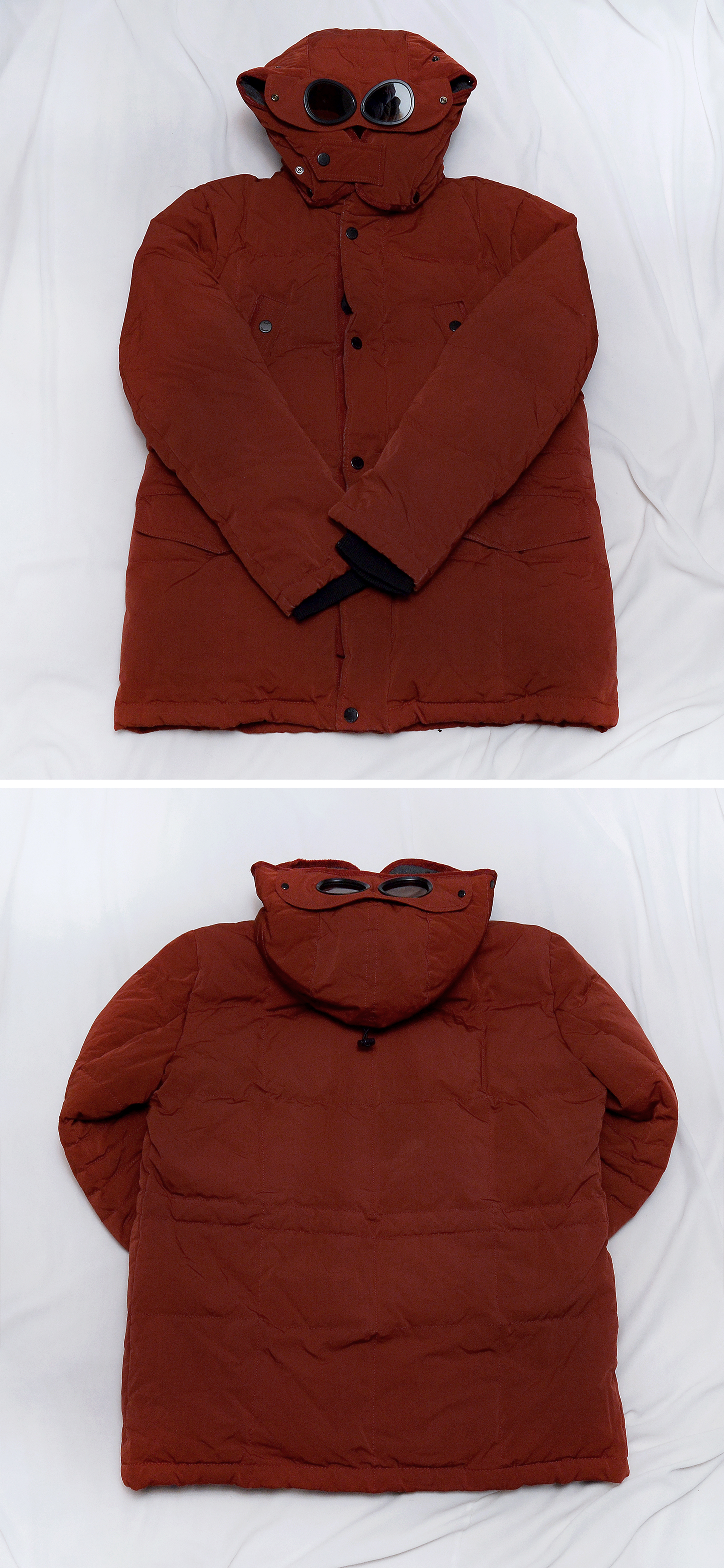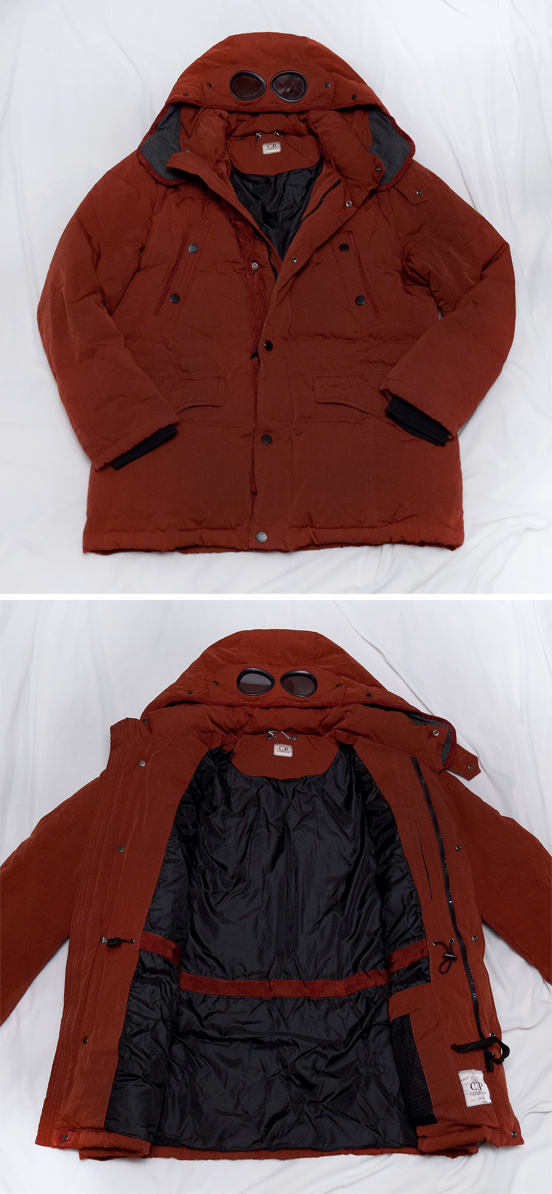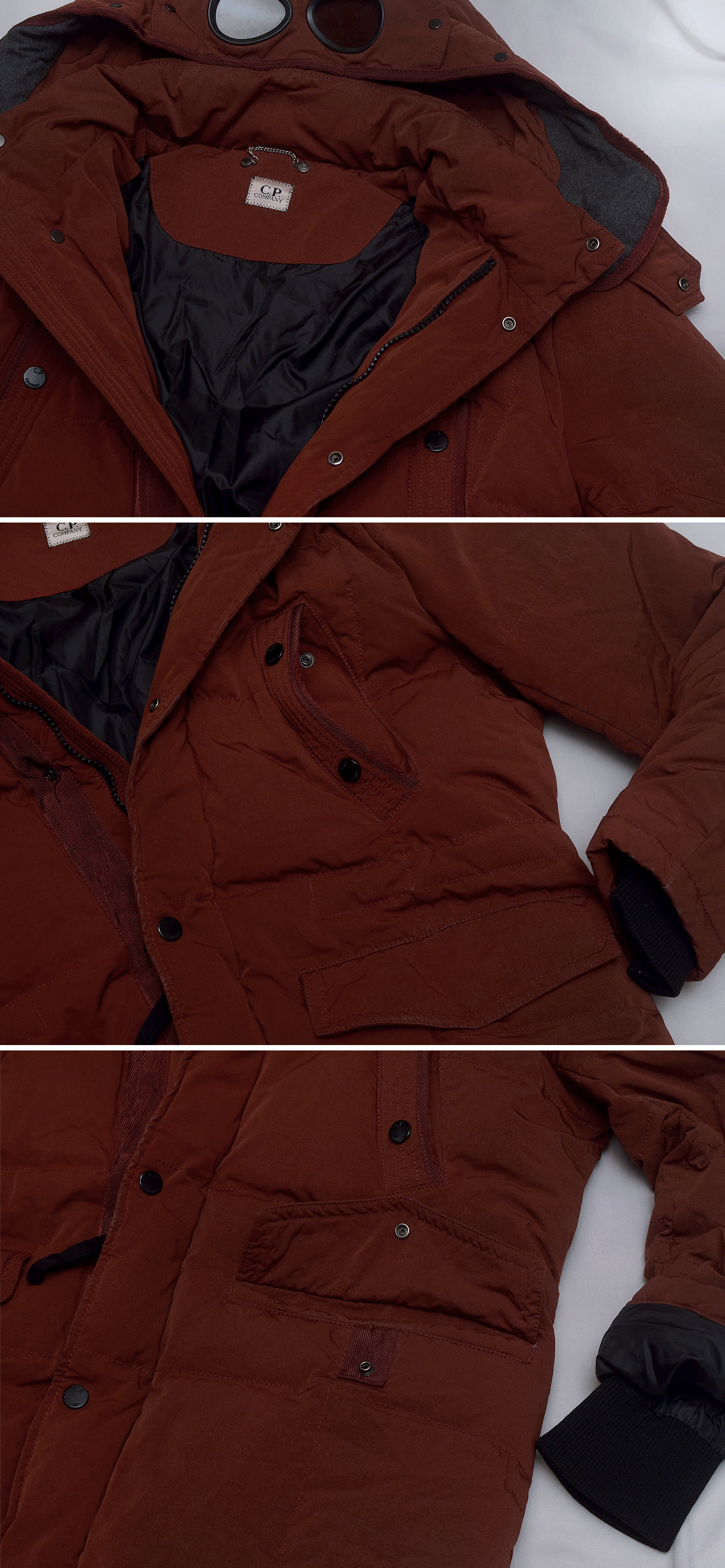 씨피 컴퍼니 특유의 아이코닉한 고글 스타일 렌즈 후드가 돋보이는 브랜드 대표 시그니쳐 스타일 노르지 야상 패딩 다운 자켓입니다. 씨피컴퍼니.스톤 아일랜드의 창업자 마시모 오스티가 추구하는 1차 대전 공군 밀리터리 스트릿 스타일 기반 디자인에 소재와 염색에 진심인 브랜드답게 가먼트다잉 워싱으로 적당히 화려하면서도 크게 튀지 않고 멋스러운 톤다운된 레드 브릭 컬러 나일론 혼방 하드쉘 타입 겉감 소재 멋스럽고 다운 구획 기능적으로 꼼꼼히 잘 나뉘어져 있어서 활동성 좋으면서도 따듯한 멋과 실용성 모두 좋은 최고급형 겨울철 패딩 자켓으로 고글 렌즈 스타일 후드 부분 탈착 가능해 후드 제거하고 입으면 정장위에 걸쳐도 좋을 깔끔한 스타일의 다운 패딩 자켓으로 입기 좋고 후드 결합하고 브랜드 아이덴티티 돋보이는 유니크한 스타일의 투웨이로 연출 가능해 두루 활용하기 좋습니다.