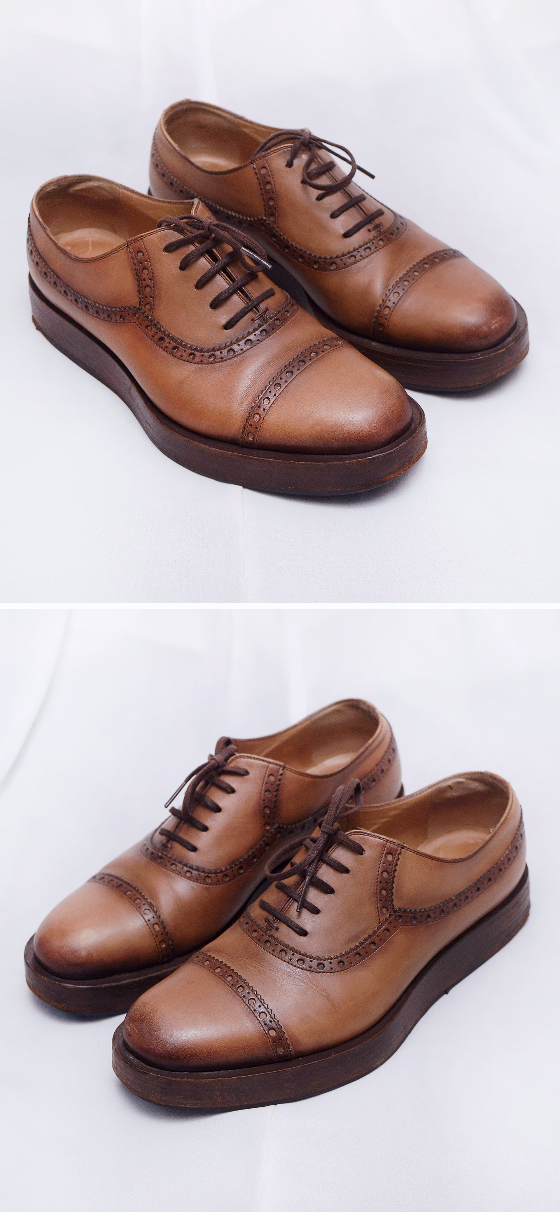 클래식하고 포멀한 옥스포드 슈즈 스타일에 아름다운 브로그 라이닝 장식 멋스럽고 클래식한 구두로 최고급 이태리 뷰테로 레더 소재로 특유의 깊고 차분한 느낌의 컬러감 은은한 광택 매우 좋습니다. 바닥 부분 약 3cm 정도의 우드 플랫폼으로 되어있어 약간의 키높이 효과 있으면서 유니크한 스타일 좋습니다. 정장 스타일부터 캐쥬얼한 스타일까지 어떤 코디에도 두루 잘 어울립니다.