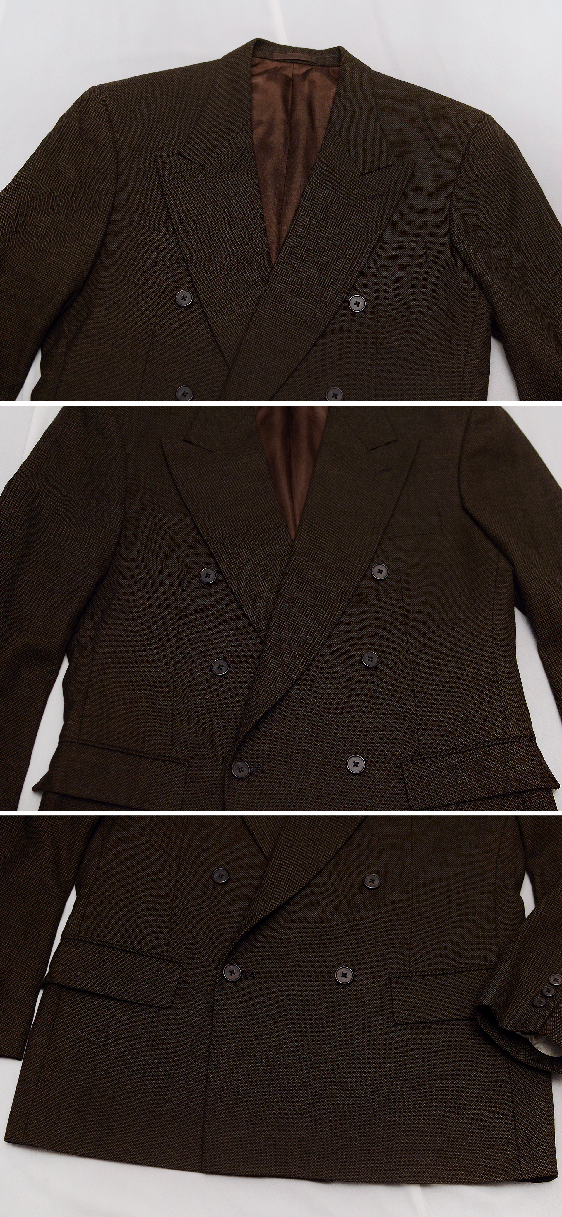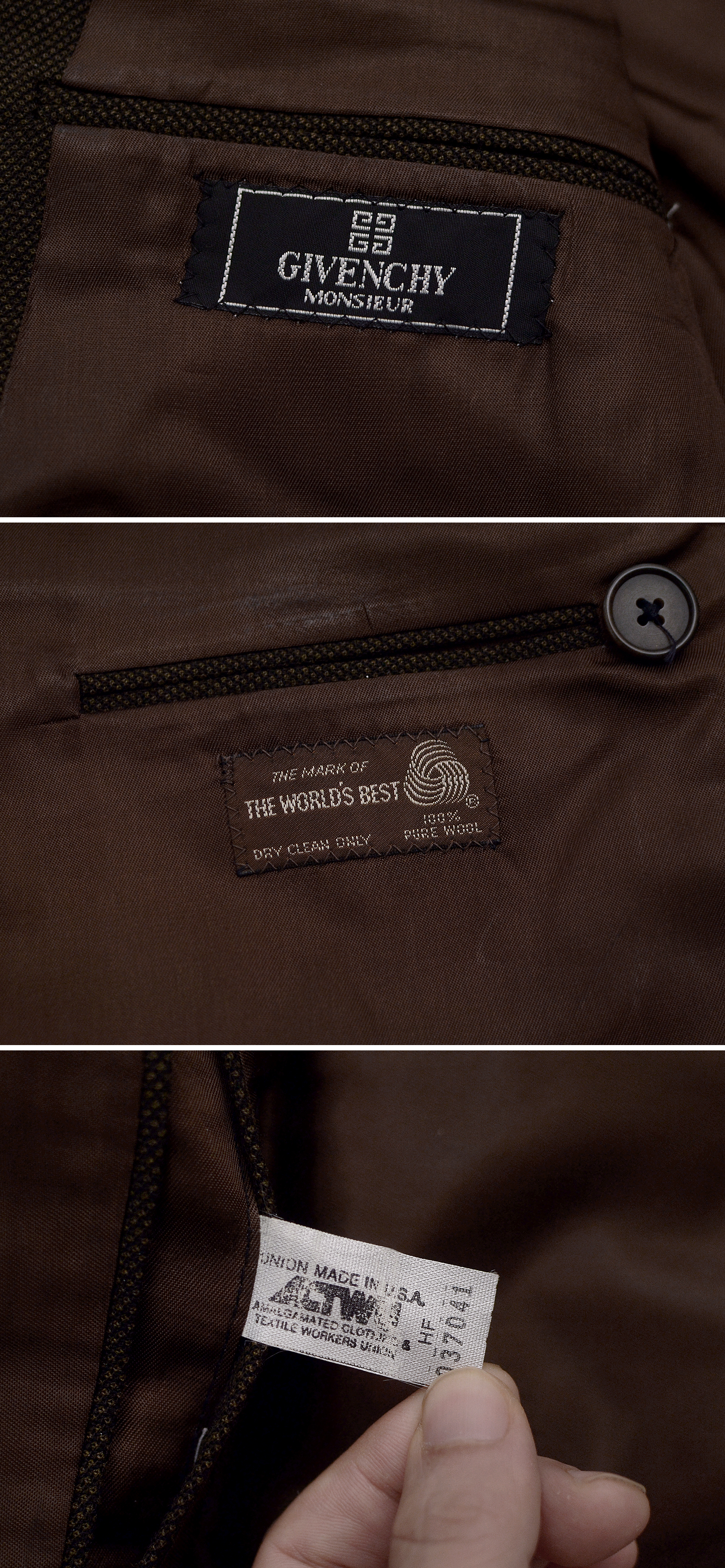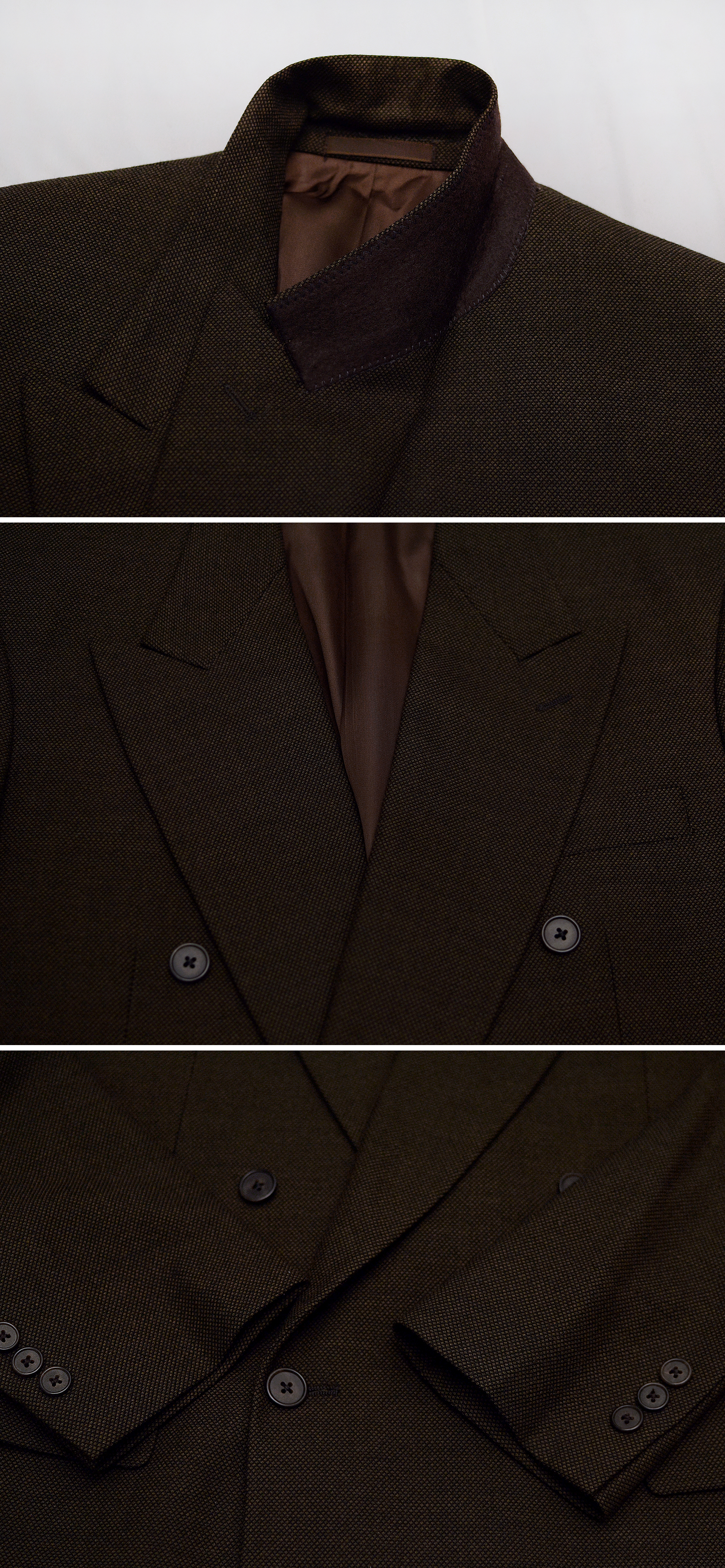 미국 근무시절 뉴욕 버그도프굿맨 지방시 부띠끄에서 오더메이드로 맞춤 제작했던 지방시 더블 버튼 블레이저 자켓입니다. 실착시 부하지 않고 허리 라인 살짝 들어가 있어 전체적으로 딱 떨어지는 더블 버튼 타입 유러피안 클래식 스타일에 짙은 우드 브라운 컬러의 퓨어울 (100% 울.순모) 홈스펀 짜임 소재로 지나치게 무거운 분위기 아니고 멋스러운 느낌으로 입기 좋은 클래식 올드머니 스타일로 꼭 정장 스타일뿐 아니라 청바지등과 매치해서 입어도 잘 어울립니다. 도톰한 두께감으로 봄.가을부터 초겨울 정도까지 입기 좋습니다.