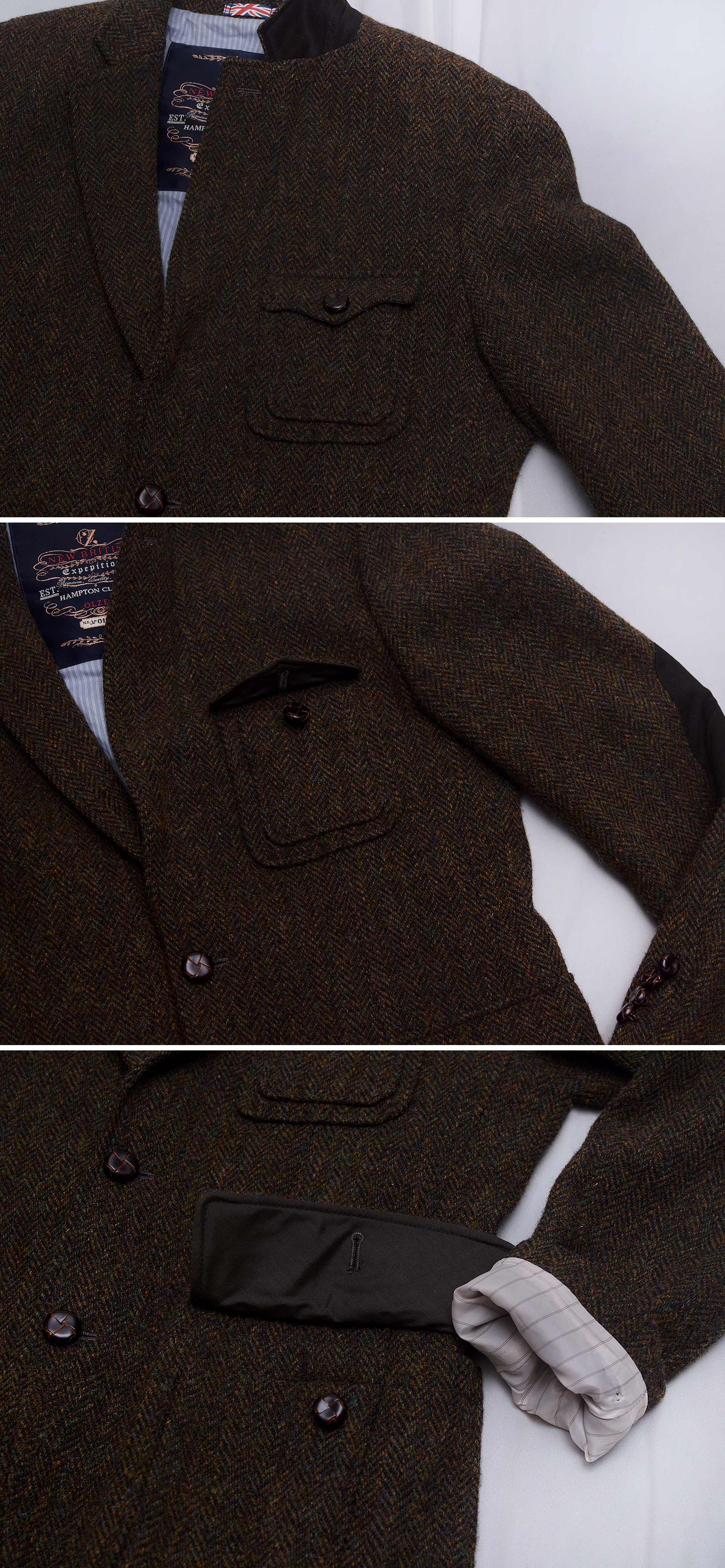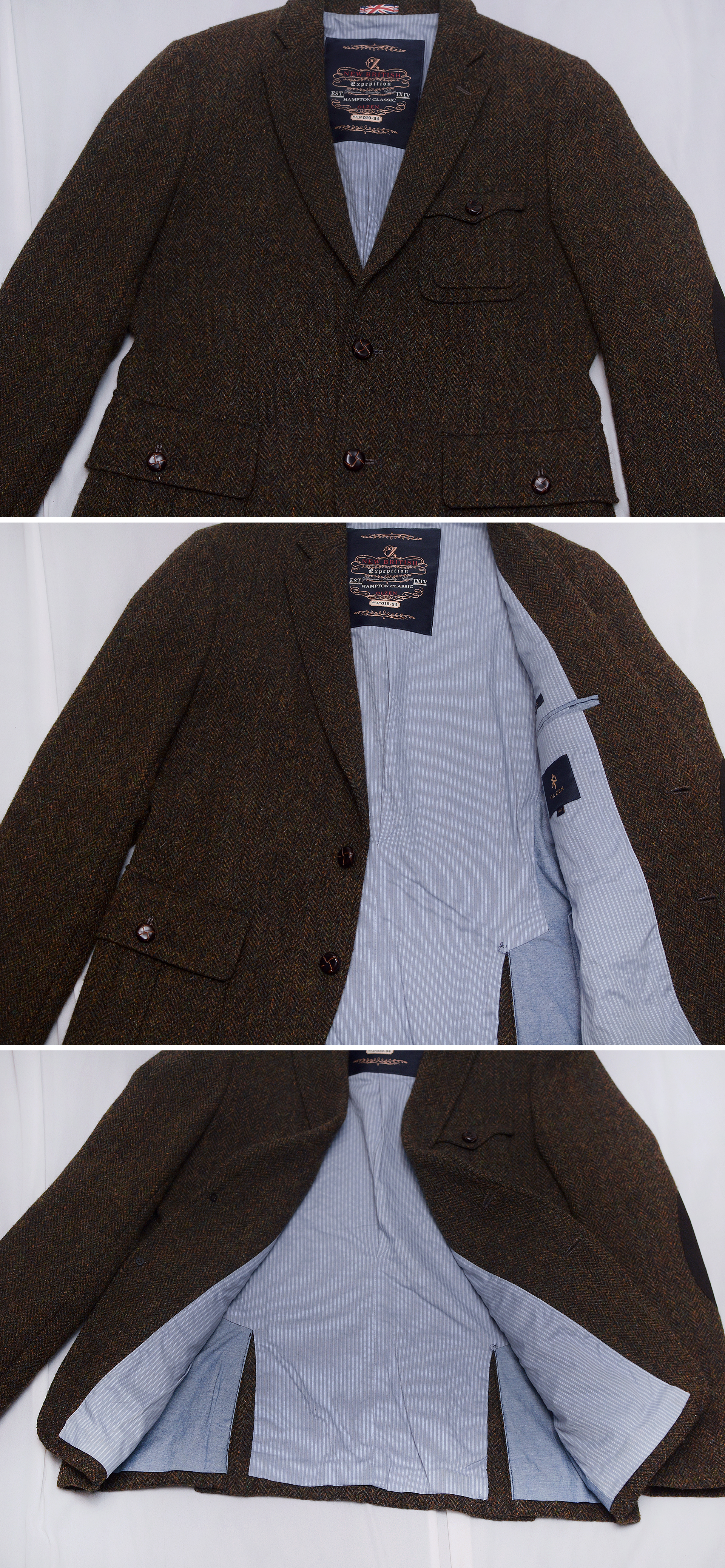 신성통산의 고급 남성복 브랜드 올젠의 브리티시 클래식 스타일 헌팅 블레이저 자켓으로 일반 판매용 아닌 컨셉 스페셜 컬렉션 라인으로 별도 제작된 한정판 제품입니다. 영국.스코틀랜드 핸드우븐 트위드 원단중 가장 최고의 품질로 평가받는 해리스 트위드사의 울해링본 트위드 소재로 스코틀랜드 북부 해브리디스 제도에서만 생산되는 천연 양모 특유의 다양한 색상과 특유의 굵고 자연스러운 느낌 매우 멋스럽고 내구성을 위한 팔꿈치 덧댐 활동성을 위한 후면 액션 플리츠 수제작 가죽 단추등 클래식하고 고급스러운 헌팅 블레이저 자켓의 오리지널리티 아주 잘 구현된 최상급 자켓입니다. 가을.겨울철 지나치게 튀지 않으면서도 멋스러운 클래식 캐쥬얼 스타일로 연출하기 좋습니다.