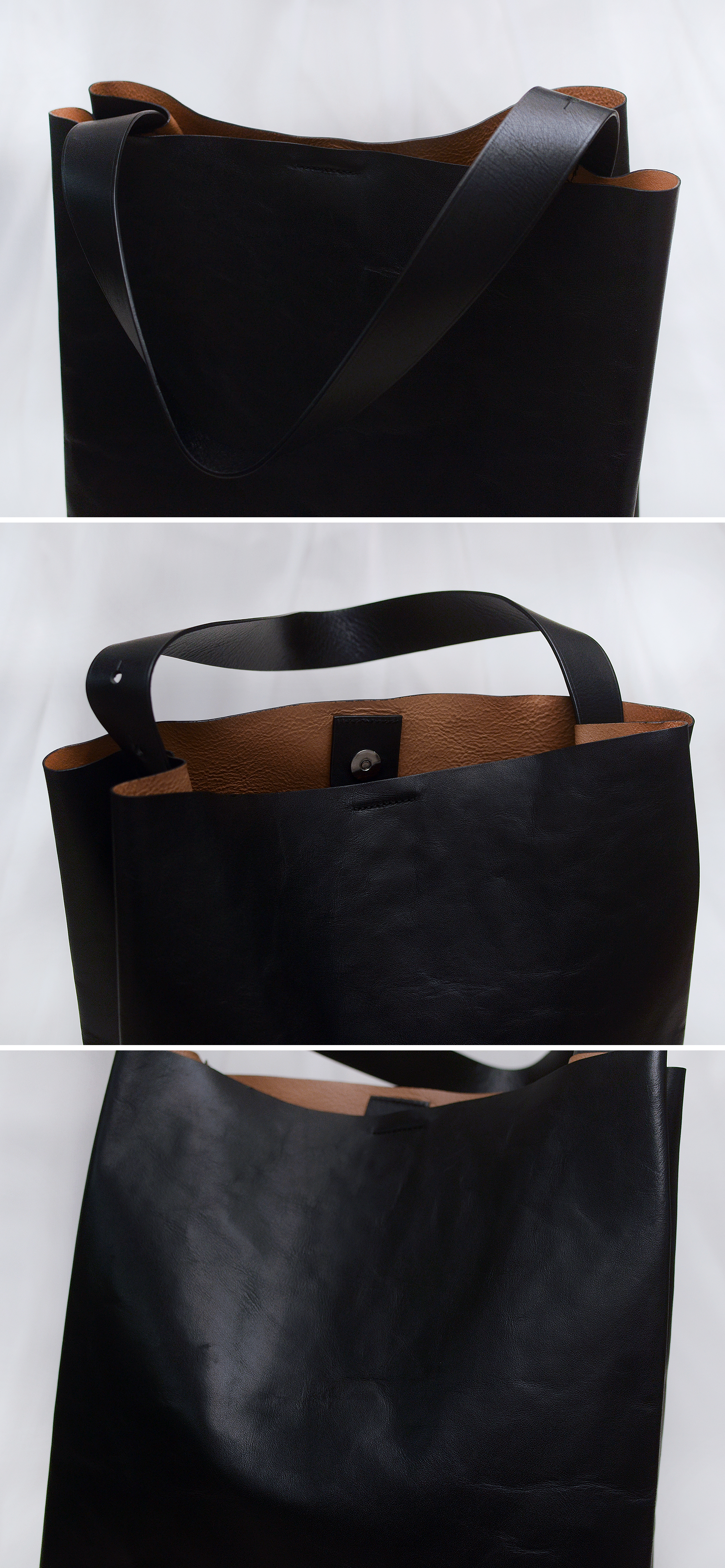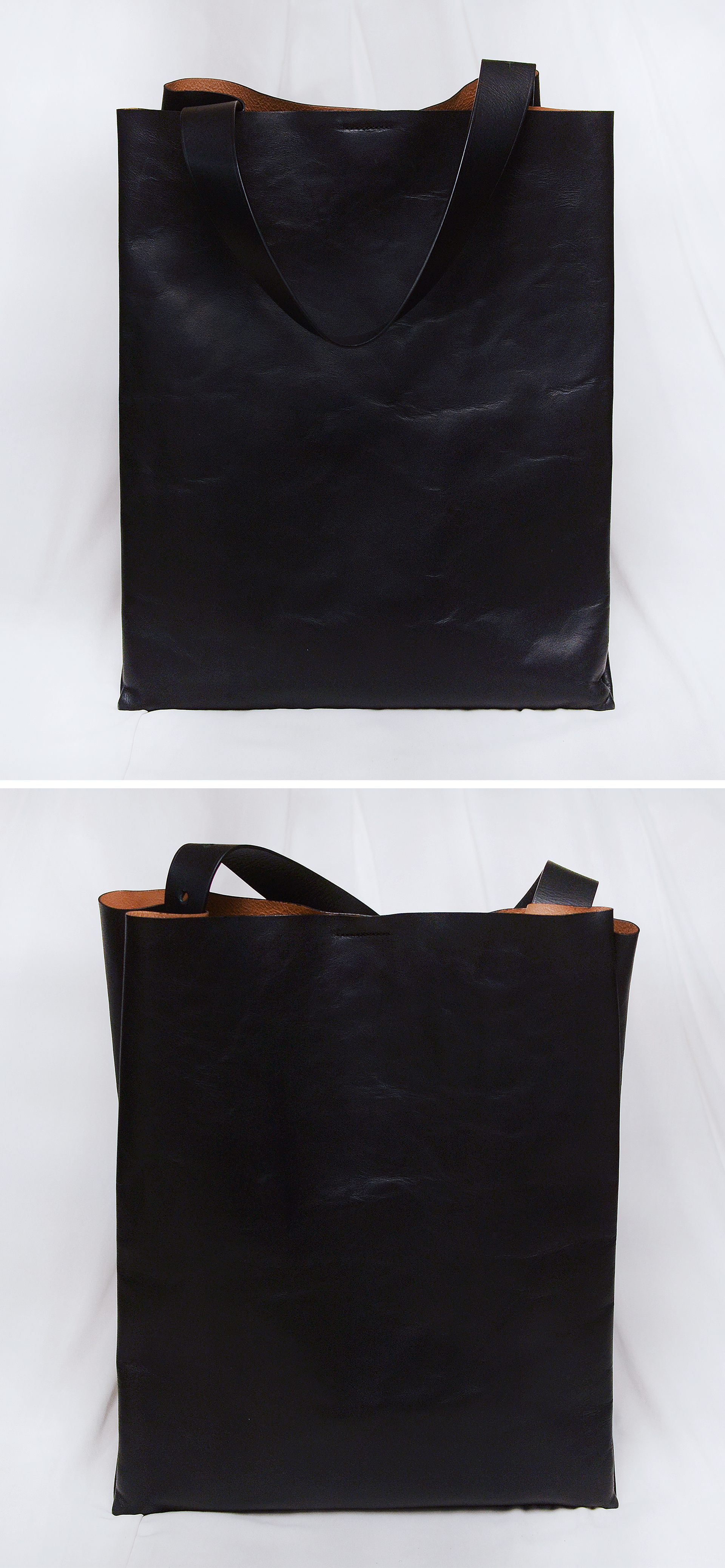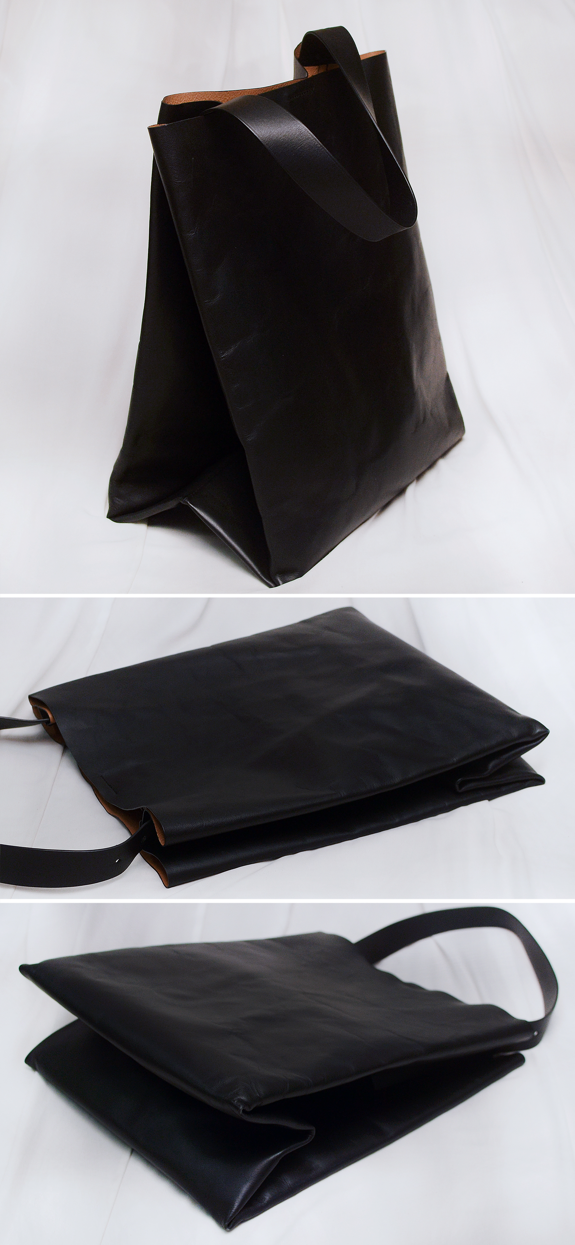 탄탄한 두께감에 부드러운 감촉과 은은한 광택의 복스 코팅된 풀그레인 카우레더 (천연가죽 통가죽) 소재의 가죽 빅백으로 코스다운 심플하게 딱 떨어지는 미니멀한 스타일이면서도 감각적이고 실용적인 접이식 오리카미 형태 디자인이 돋보이는 가방입니다. 절개면을 최소화한 넓은 가죽 원피 그대로를 최대한 살려서 만들어진 가방이라 더하고 뺄것 없는 그야말로 깔끔한 형태에 내구성 매우 좋은 튼튼한 통가죽 가방으로 유행 상관없이 두고 두고 다양한 용도로 멋스럽게 쓰기 좋은 빅백입니다. 스트랩 길이 조절해 토트.숄더로 자유롭게 사용 가능합니다.