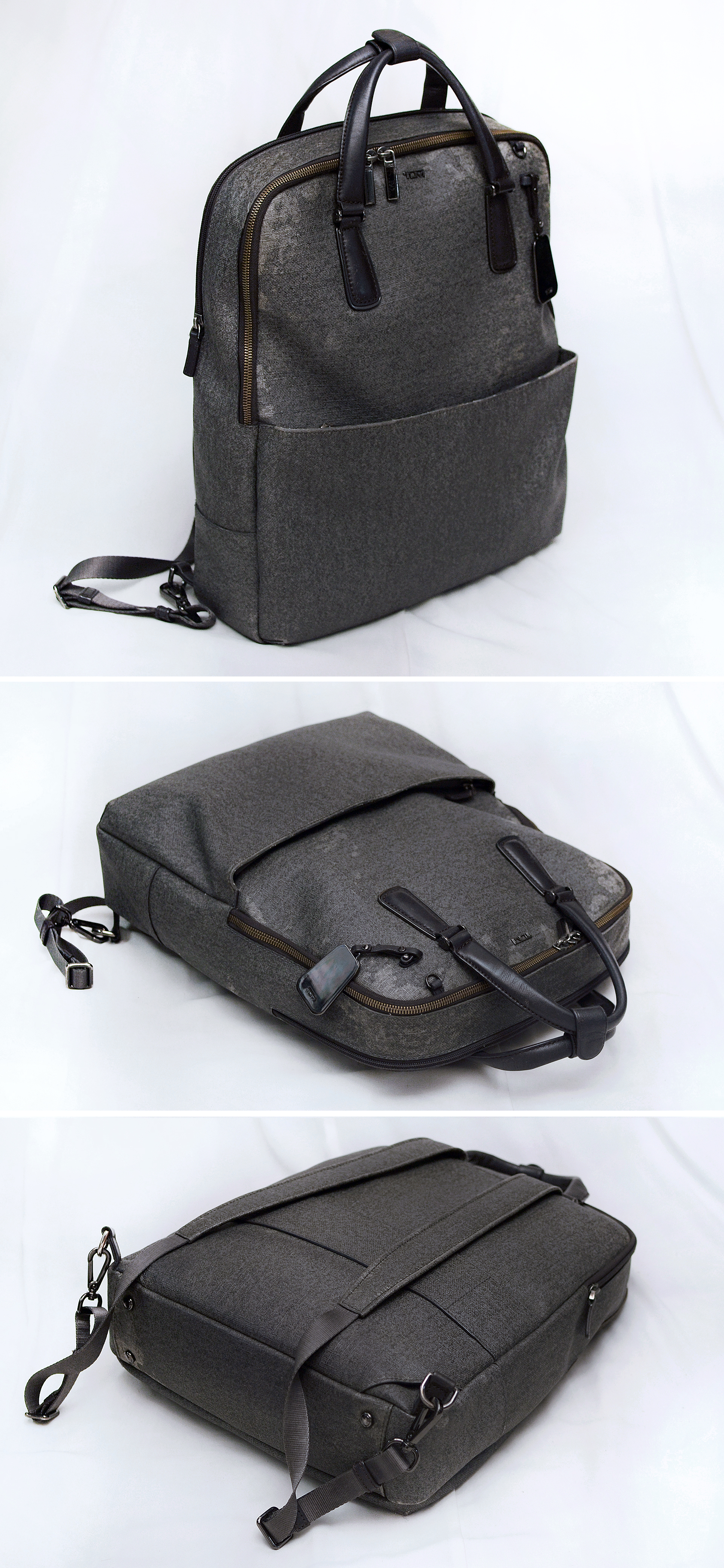 투미 라이프스타일 시리즈중 가장 우아하고 세련된 라인업인 싱클레어 컬렉션 시리즈 2웨이 백팩 얼그레이 컬러입니다. 코팅 처리된 탄탄한 캔버스 바디에 핸들등 주요부위에는 최고급 나파가죽 트림으로 되어있어 가볍고 튼튼합니다. 투미 초경량 백팩 대표 라인인 보야저 2웨이 컨버터블 토트.백팩 스타일을 기반으로 더 모던하고 깔끔한 디자인으로 기본 스타일 백팩으로 사용하거나 백포켓 안으로 숄더 스트랩 안으로 집어넣고 깔끔한 형태의 투핸들 토트백으로도 사용 가능합니다. 전면 넓은 지퍼 퀵포켓이나 후면 랩탑 전용 포켓등 수납 구성 다채롭게 잘 되어있어 사용성 매우 좋고 메인 수납부는 측면까지 넓게 열리는 투웨이 지퍼 와이프 오픈 방식으로 수납품 넣고 빼기 편합니다.