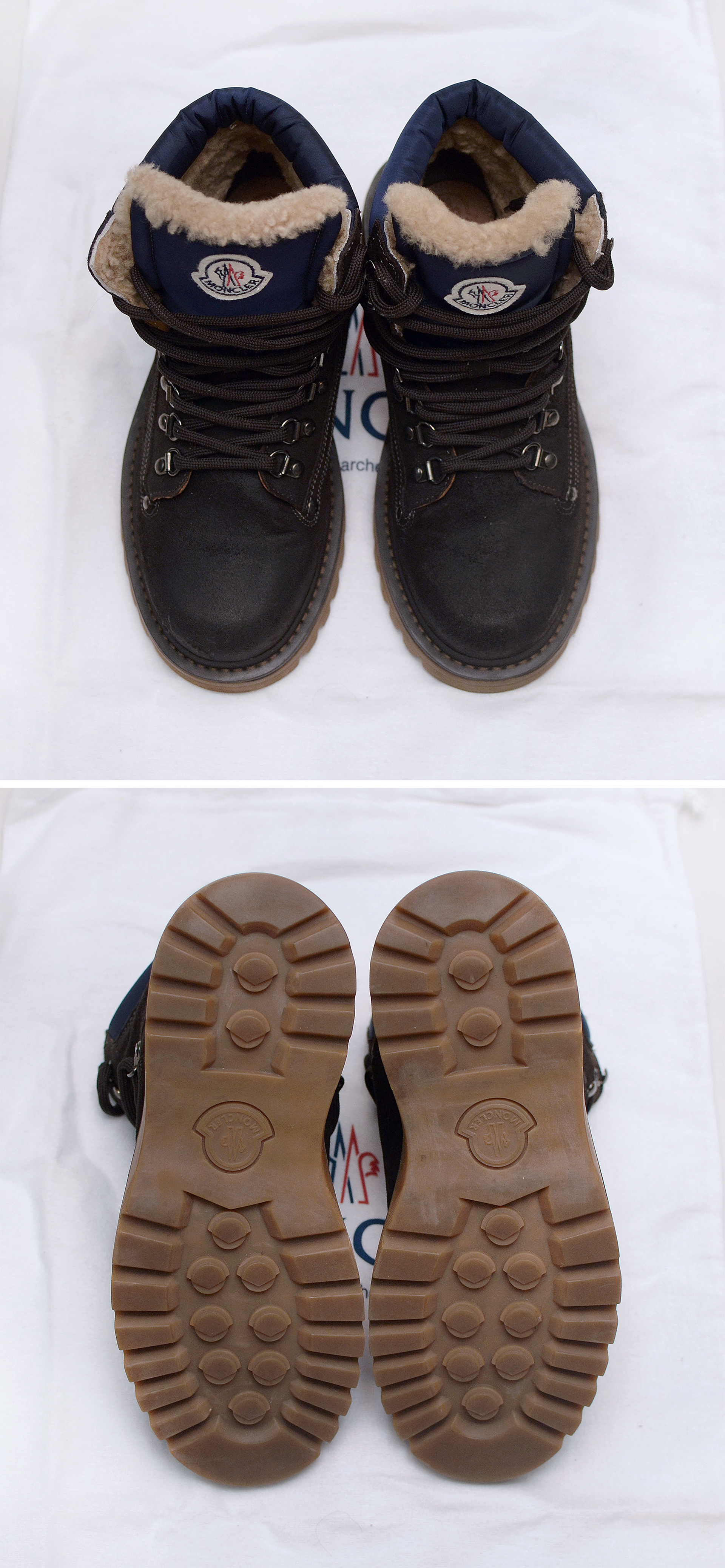 명품 패딩 스타일 웨어로 유명한 몽클레어 이전에 최고급 고기능성 아웃도어 브랜드인 몽클레어의 근본형 본격 겨울용 방한화 하이탑 가죽 워커부츠인 이지드 부츠입니다. 프랑스어 방패라는 뜻의 네이밍만큼 한겨울 혹한과 극한의 환경에서도 확실한 보온성과 보호성을 위해 탄탄한 방수 누벅 스웨이드 천연가죽 갑피와 견고한 아웃솔 튼튼한 금속제 슈레이스등 클래식한 가죽 하이탑 워커 부츠 형태에 안쪽으로는 천연 양모 시어링처리 되어있어 발 전체를 따듯하게 감싸주는 최고급 아웃도어 스타일 겨울철 방한화 입니다.