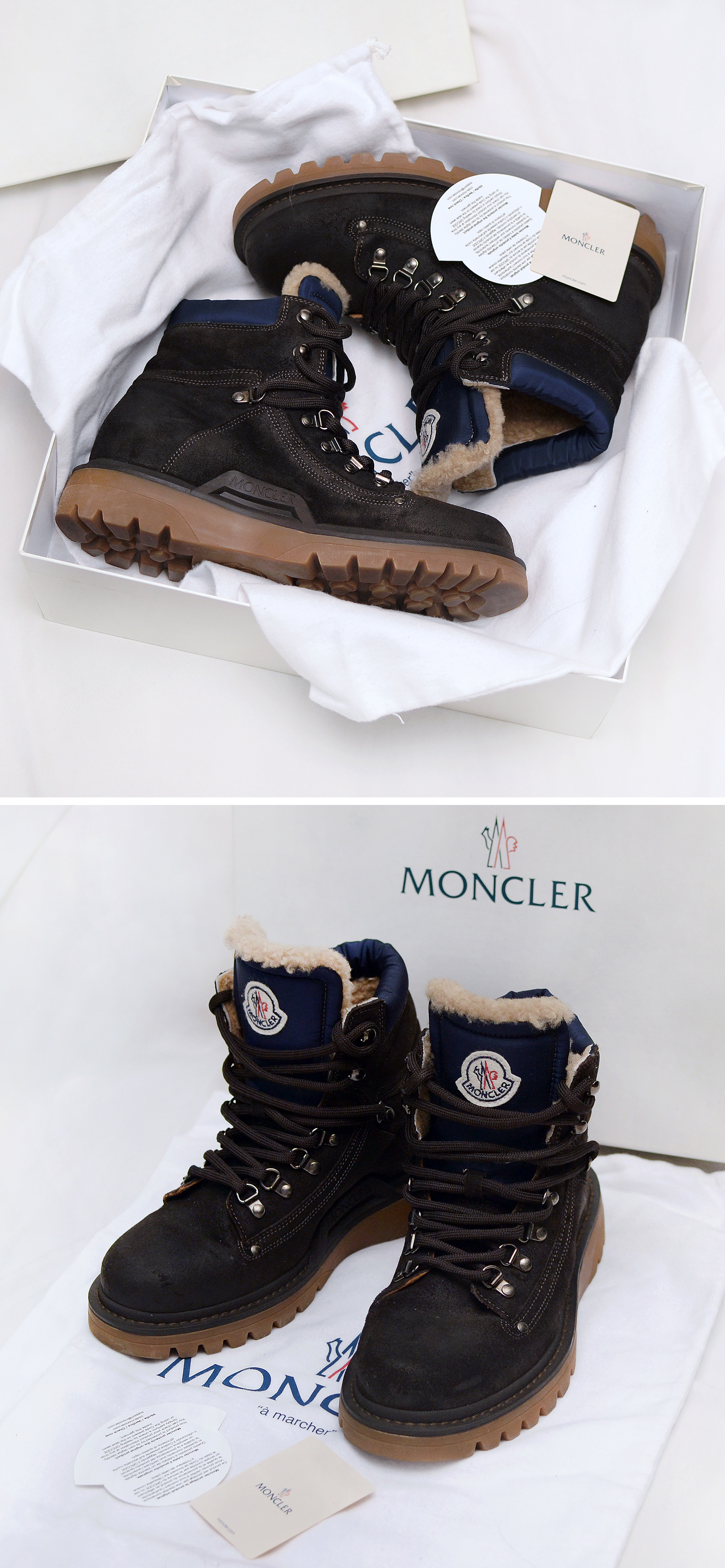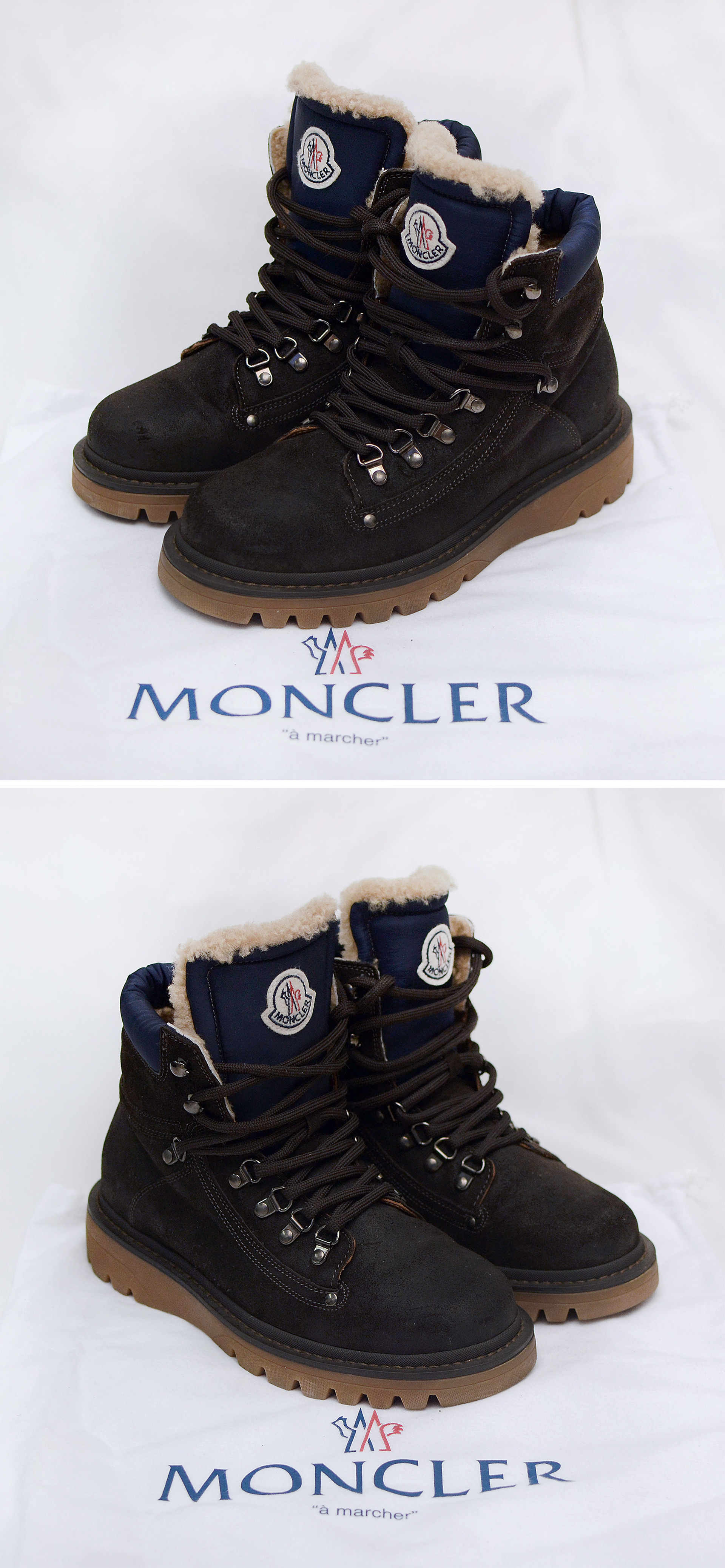 몽클레어 (Moncler) 이지드 (EGIDE) 양모 시어링 누벅 스웨이드 레더 하이탑 방한화 워커부츠 당연히 정품