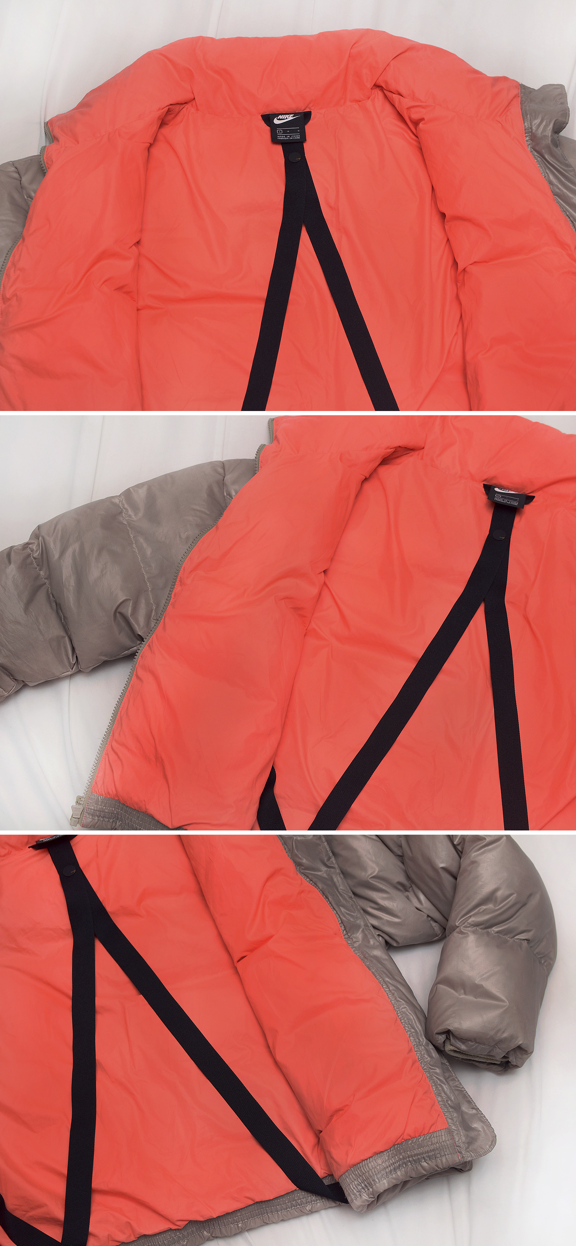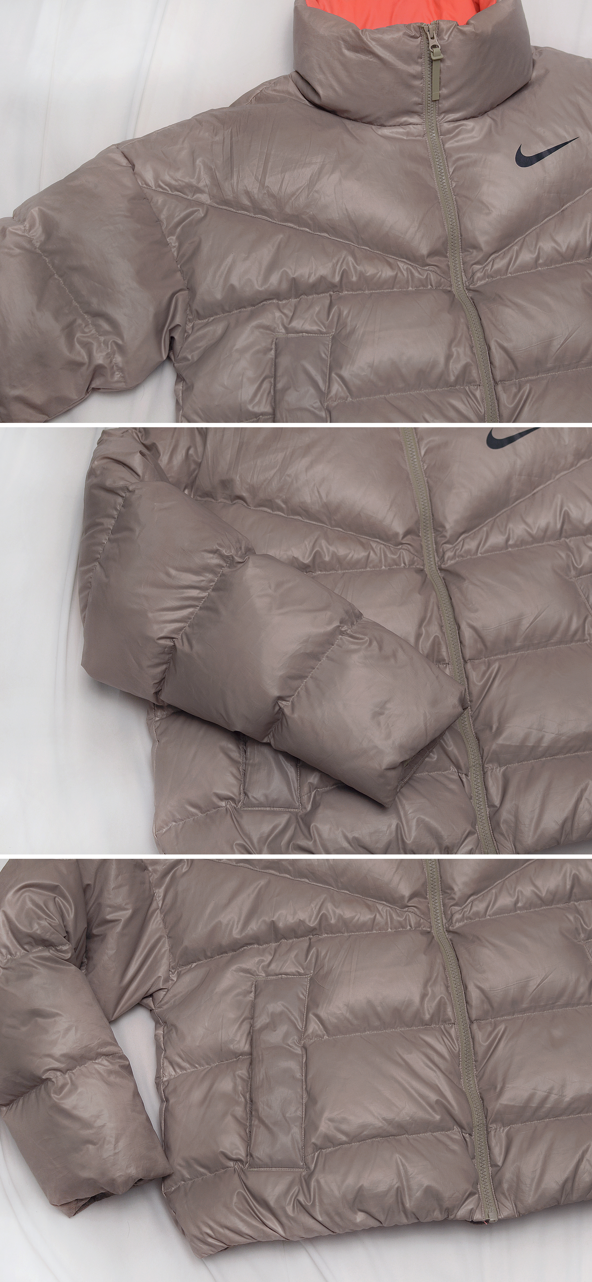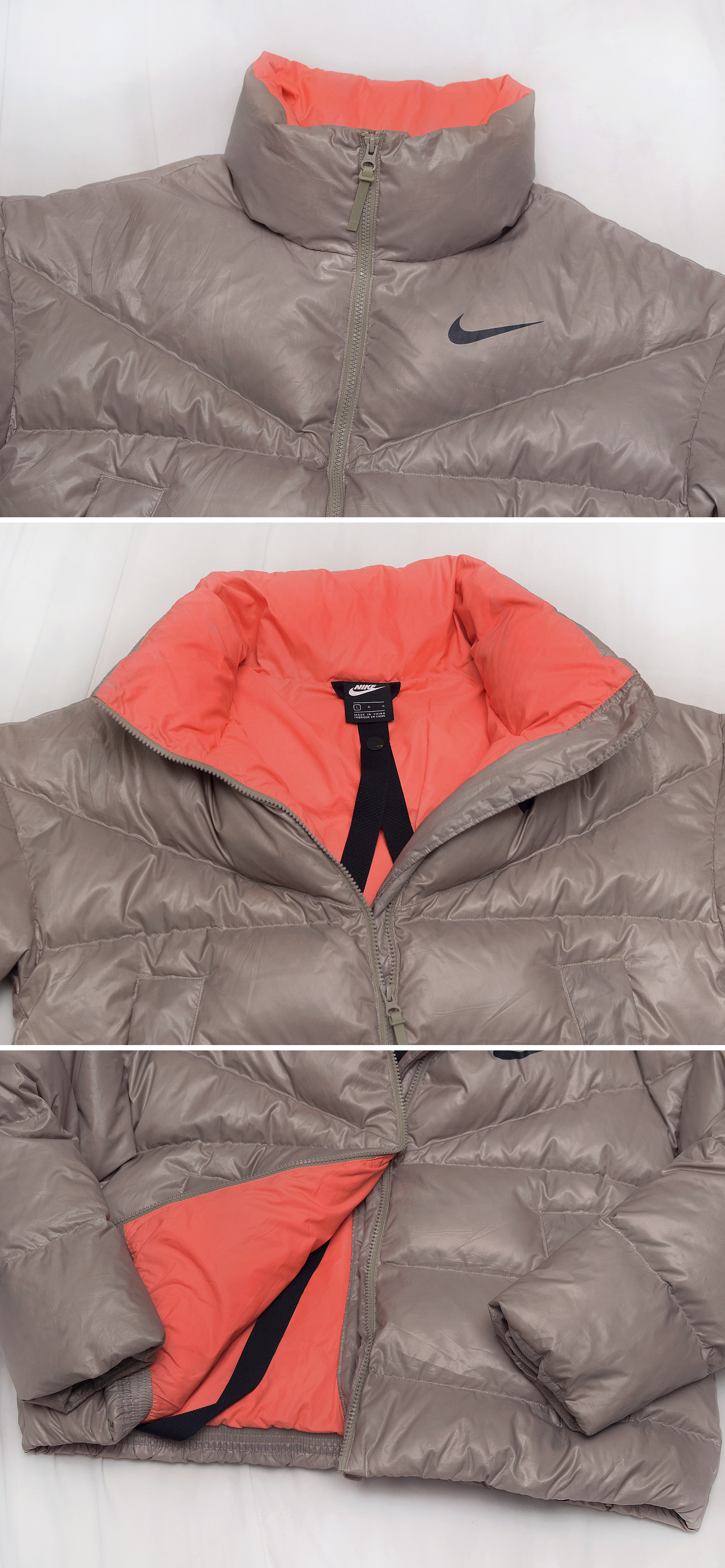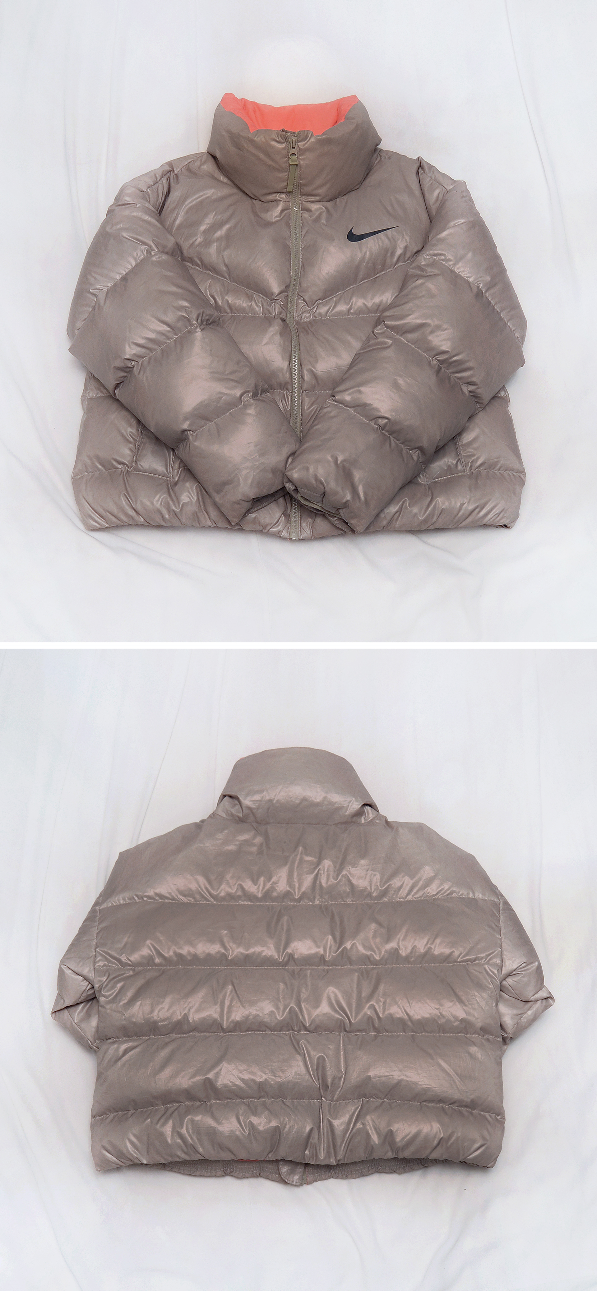 나이키 고급형 토털웨어 NSW 라인 푸퍼 다운 크롭타입 숏패딩 입니다. NSW 라인답게 고품질 소재와 편안한 드롭숄더형 곡선형 라인이 돋보이는 스트릿웨어 스타일 다운 숏패딩으로 깔끔하고 멋스러운 스타일에 가볍고 편안한 착용감과 뛰어난 활동성 두말할 필요없이 좋습니다. 전형적인 푸퍼 패딩 형태이면서도 살짝 크롭한 기장에 안쪽에 숨겨진 허리밴딩 타입으로 되어있어 깔끔한 라인 유지하면서 전체적인 핏 여유롭고 스타일리쉬하게 딱 잡아주고 유니크한 광택감 있는 샴페인 골드 컬러 겉감과 오렌지 컬러 안감 배색 멋스럽습니다.
