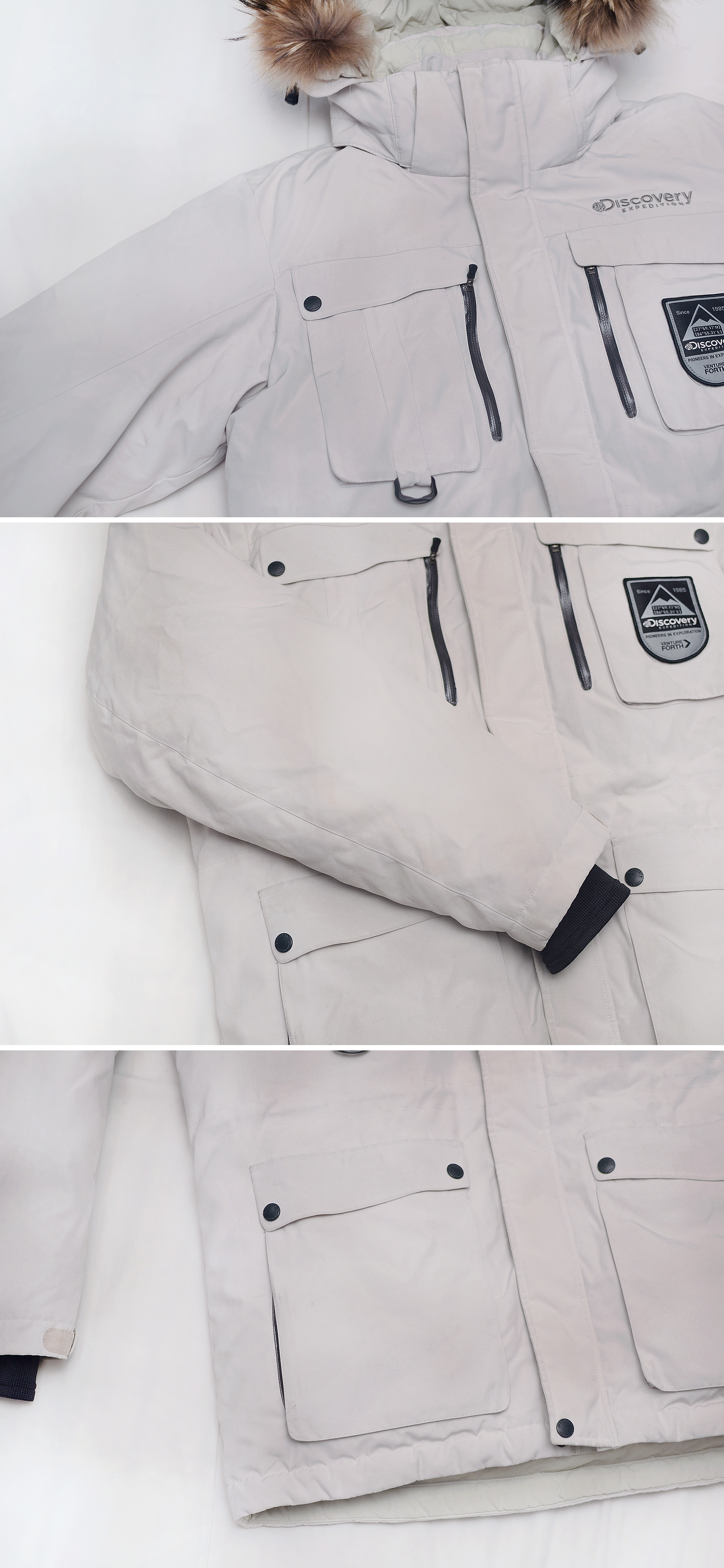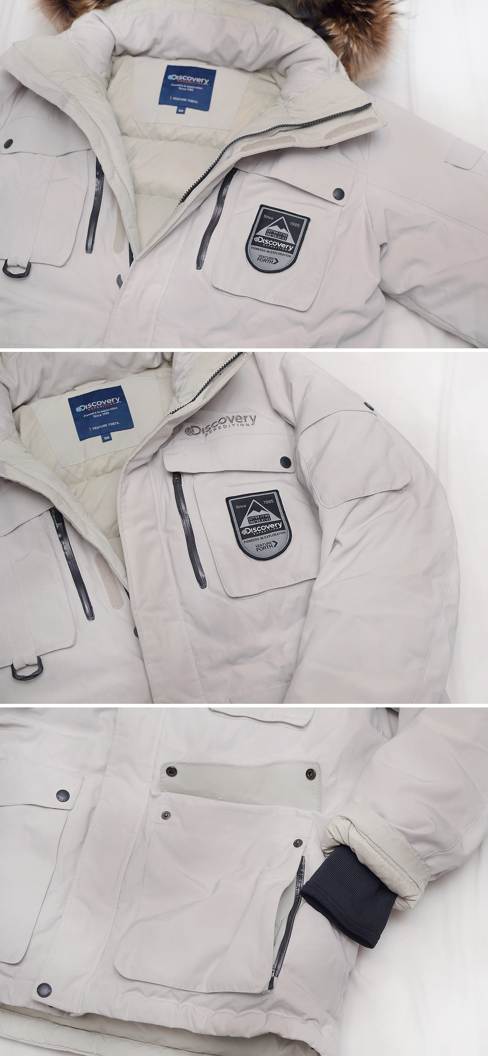 디스커버리의 역작 밀포드 구스다운 패딩입니다. 드라마에서 공유 패딩으로 화제되며 사실상 디스커버리 브랜드를 끌어올렸다고 할 수 있을만큼 가장 유명한 브랜드 베스트셀러 패딩으로 대표적인 극지용 헤비다운 파카인 캐나다구스 익스페디션이나 스노우만트라와 비슷한 다양한 외부 포켓 구성의 유틸리티형 패트롤 파카 타입을 따르면서도 세련된 라인과 깔끔하고 화사한 컬러감으로 차별화되고 외부 주요 포켓 방수실링처리 되어있는 탄탄한 하드쉘 타입 방수방풍 겉감에 동시리즈중 역대 가장 풍성한 400g 이상 압도적인 우모량의 헤비 구스다운 대장급 패딩으로 유행타지 않는 기능적이면서도 뛰어난 디자인 압도적인 보온성등으로 아직까지도 이만큼 뛰어난 패딩 거의 없다고 생각됩니다. 워낙 잘 만든 패딩이라 매년 겨울철 꺼내보며 입어야지 입어야지 하면서도 다른 겨울철 패딩.아우터등 너무 많아 돌려가며 입다보니 잘 안입게 되네요. 잘 안입어도 이만한 패딩 찾기도 힘들어 그냥 가지고 있을까 했지만 더 자주 잘 입어주실 분에게 보내봅니다.