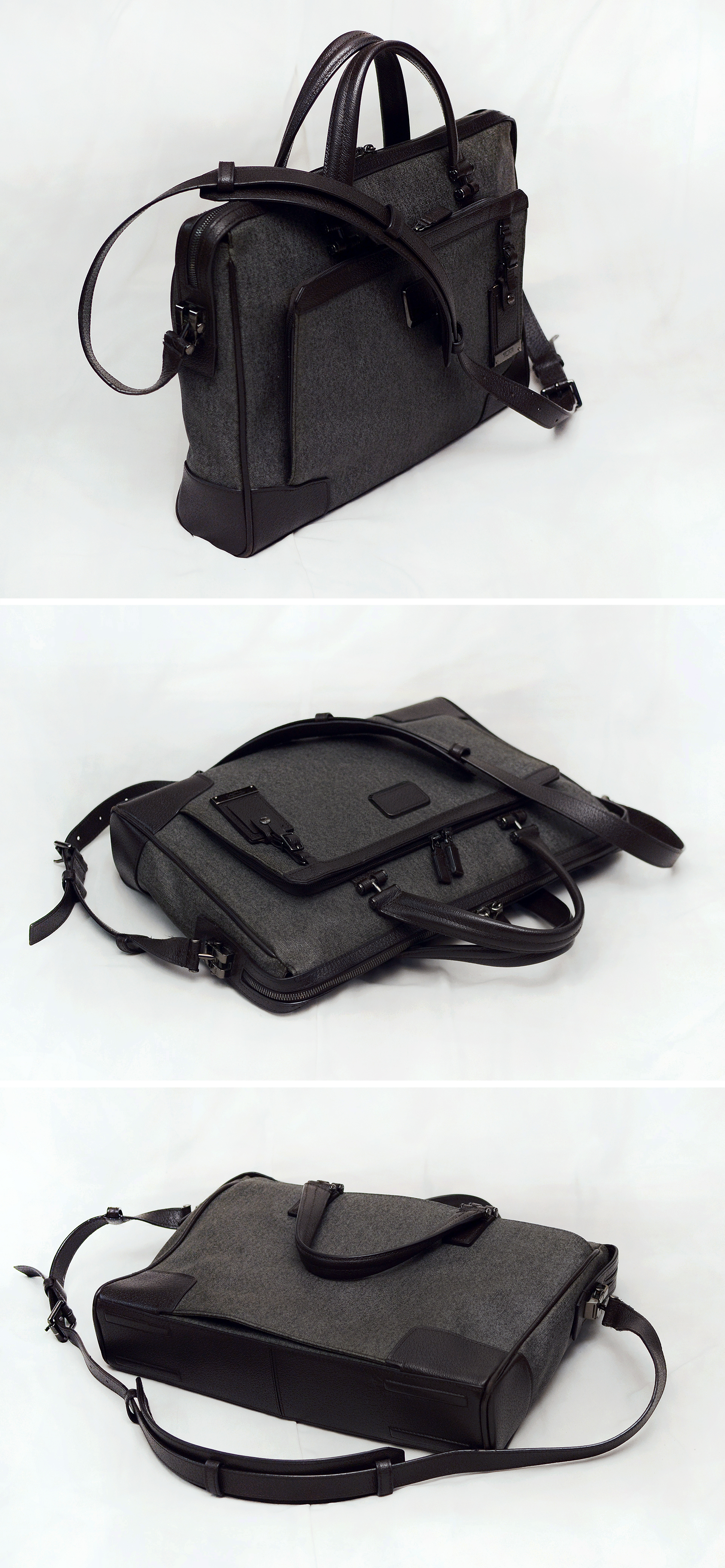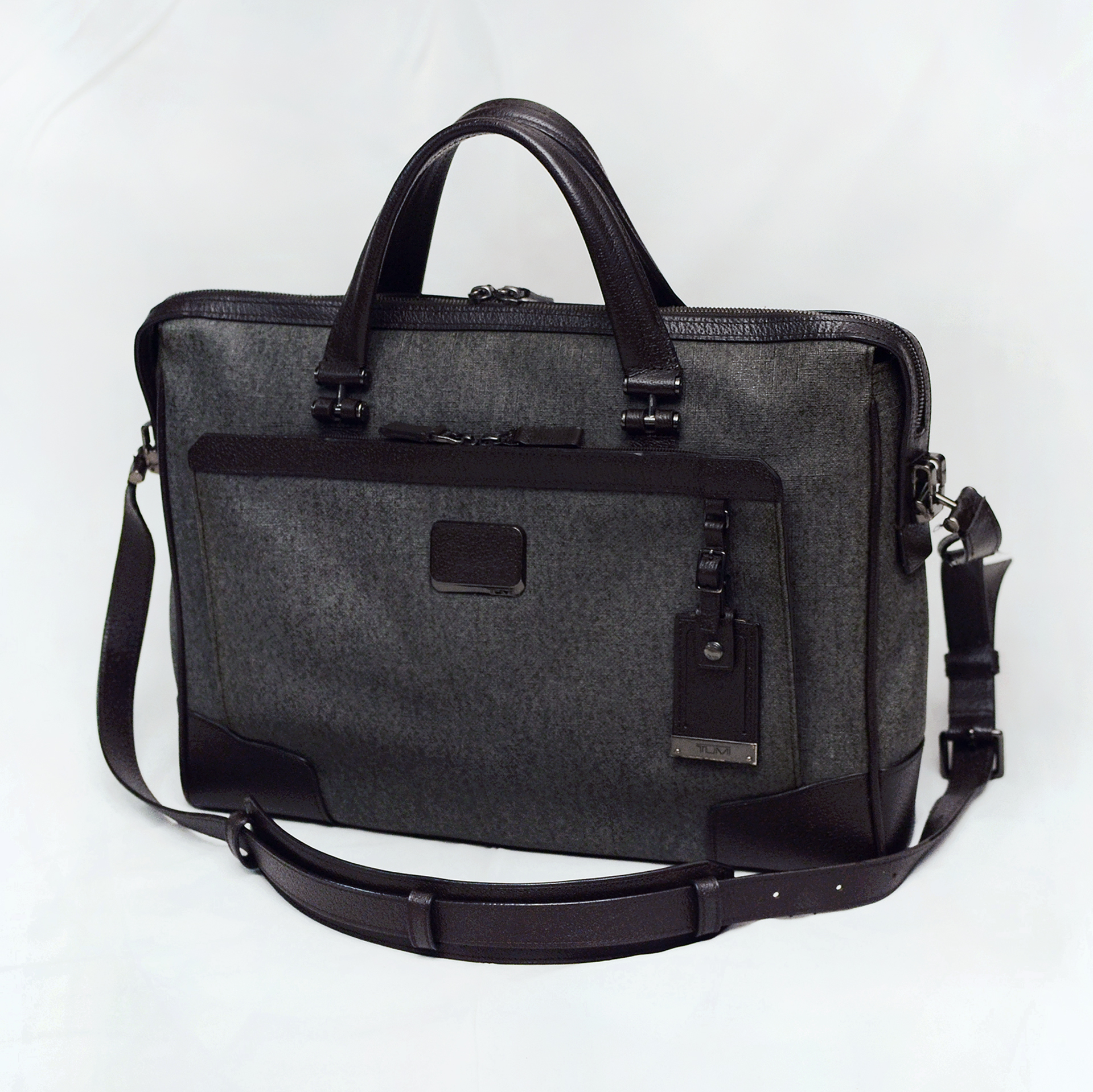 투미 프리미엄 라이프스타일 라인 아스토 컬렉션 브리프케이스 입니다. 투미 최고급형 라인 제품으로 코팅처리된 얼그레이 컬러 캔버스 바디에 핸들 및 스트랩등 주요 부위에는 구찌등에서 주로 사용하는 탄탄하고 독특한 텍스쳐의 다크브라운 컬러 돈피 가죽 트림으로 되어있어 내구성 뛰어나면서도 세련되고 멋스럽습니다. 탈착 가능한 가죽 스트랩 있어 탑핸들.투핸들 토트나 숄더.크로스로 자유롭게 착용 가능하고 후면에 캐리어 연결 가능한 에드어백 시스템 포켓등 투미다운 내.외부 다양한 포켓 구성으로 효율적인 수납 가능합니다.