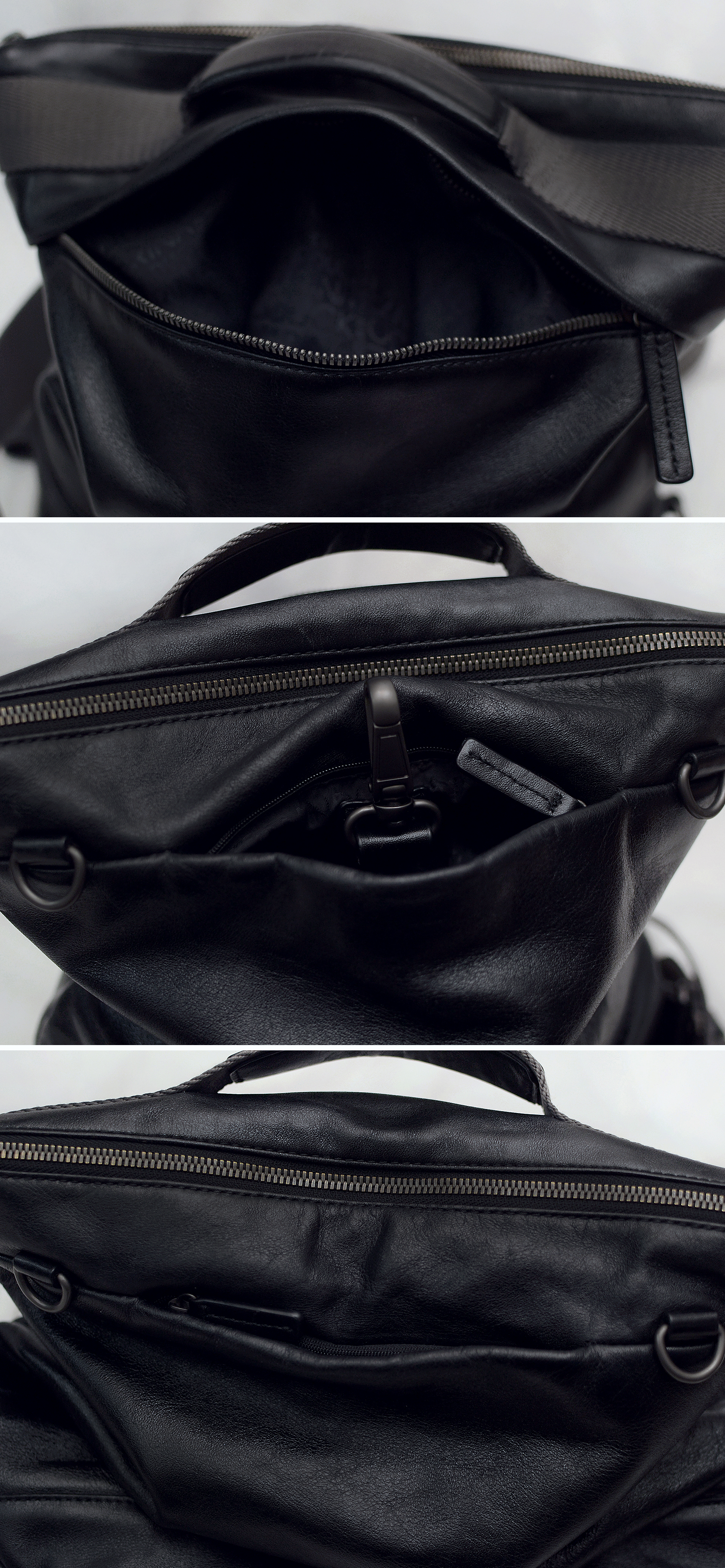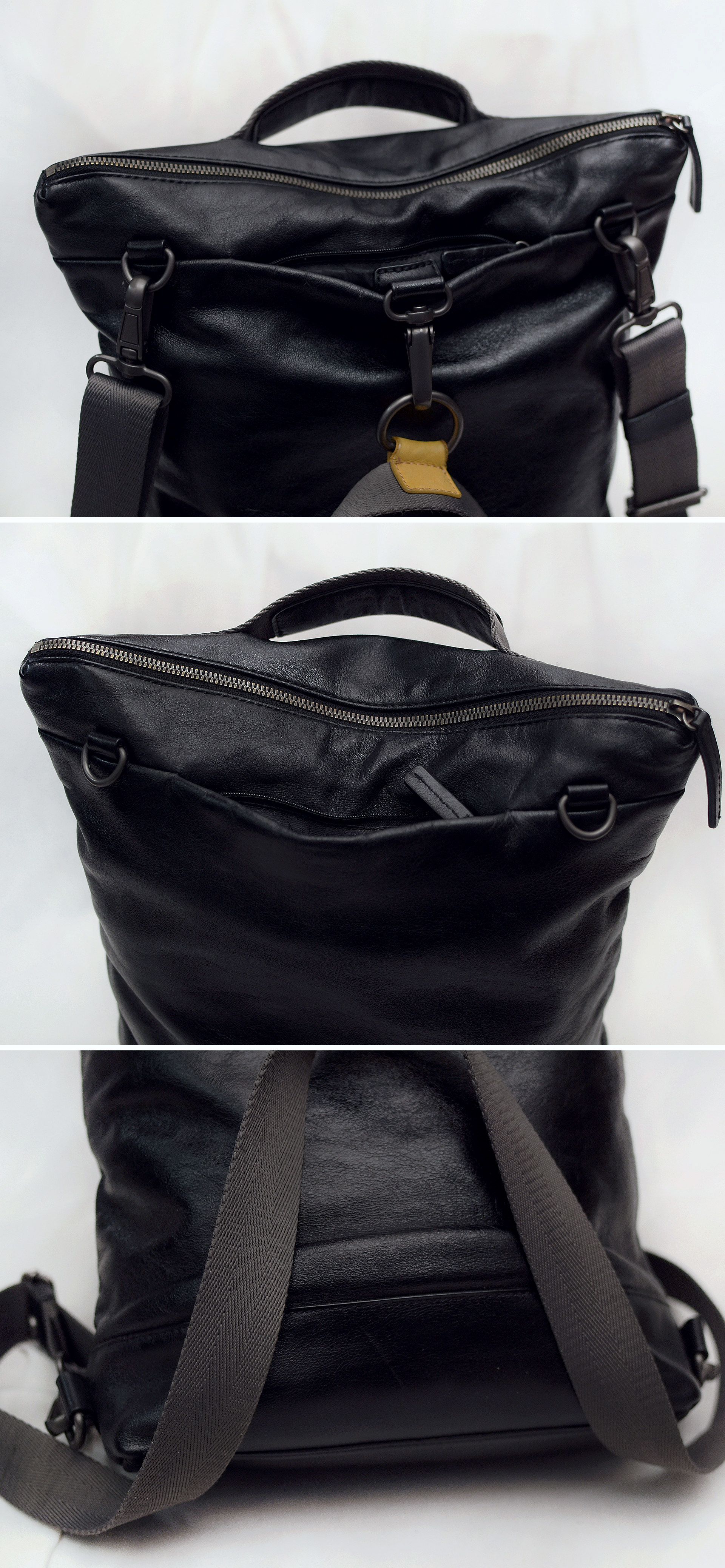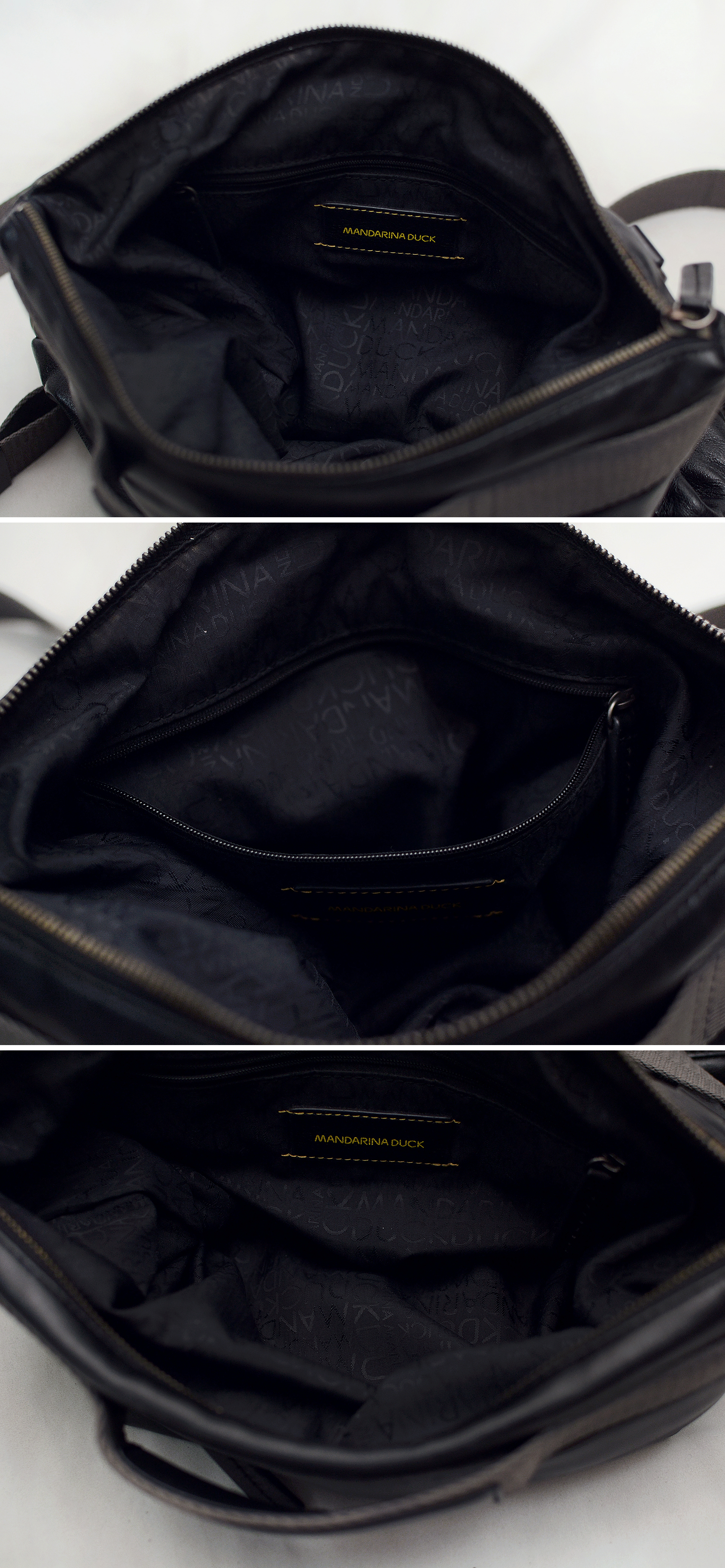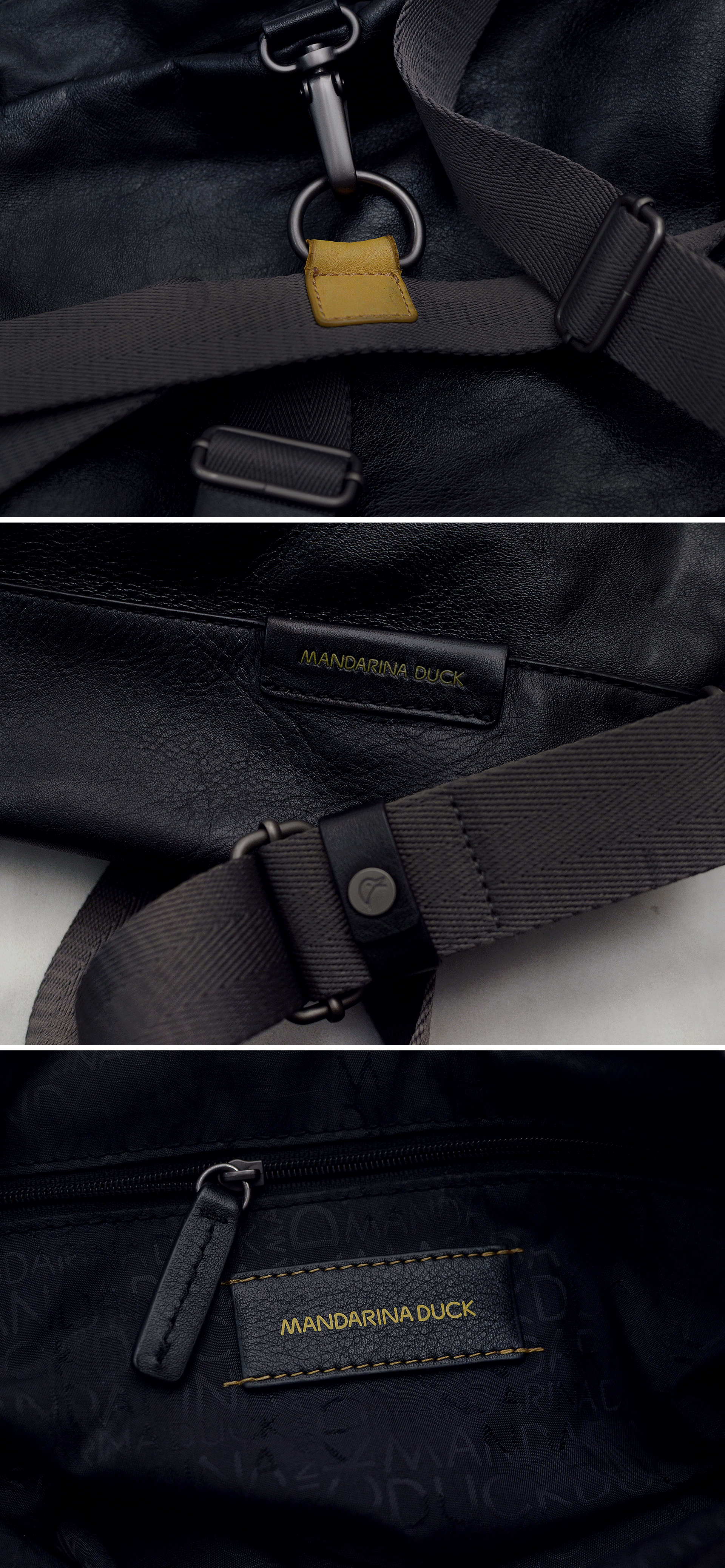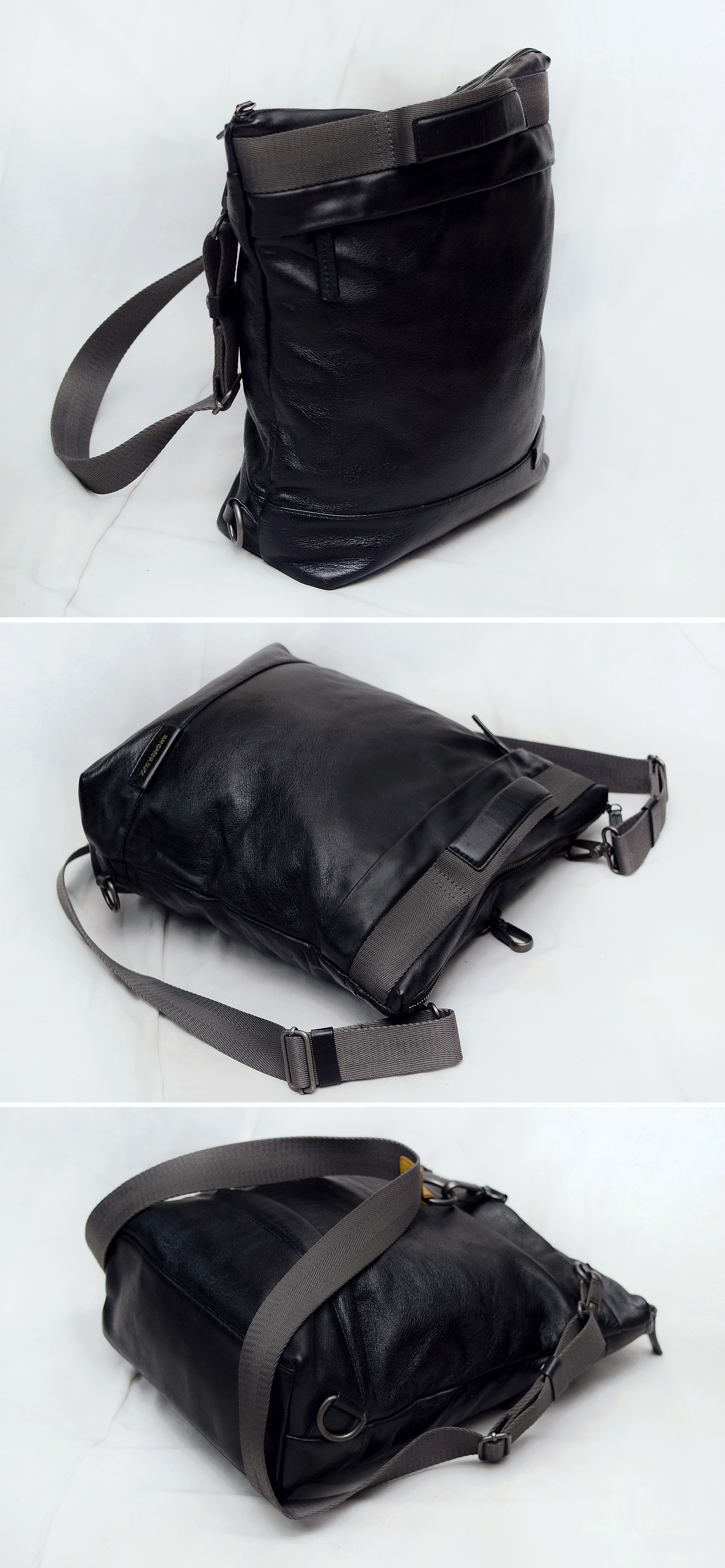 요즘 나오는 원가절감한 폴리소재 인조가죽이나 나일론 캔버스 가방이 아닌 만다리나덕 브랜드 정말 제대로 이탈리안 무드의 디자인과 최고급 소재로 잘 만들던 시절의 가방으로 톤다운된 블랙 컬러 이태리 카프스킨 (송아지 가죽) 복스레더 소재 특유의 실키하고 부드러운 촉감과 광택 매우 좋은 최상급 퀄리티 가죽에 탄탄한 그레이 컬러 멀티웨이 우븐 스트랩 스틸 그레이컬러 단조 금속링등 디자인.소재.만듬새등 모든 부분에서 뛰어나게 잘 만들어진 가방입니다. 드는 방식이나 스트랩 매는 형태에 따라 토트.숄더.크로스.백팩등 어떠한 형태로도 자유롭게 들 수 있는 멀티웨이 스타일로 다양하게 활용하기 좋습니다. 유니크한 디자인과 좋은 만듬새로 잘 안써도 소장용으로 가지고 있을까 했지만 다른 가방들 너무 많아 앞으로도 계속 안쓰고 보관만 할거 같아 잘 써주실 분에게 보내봅니다.