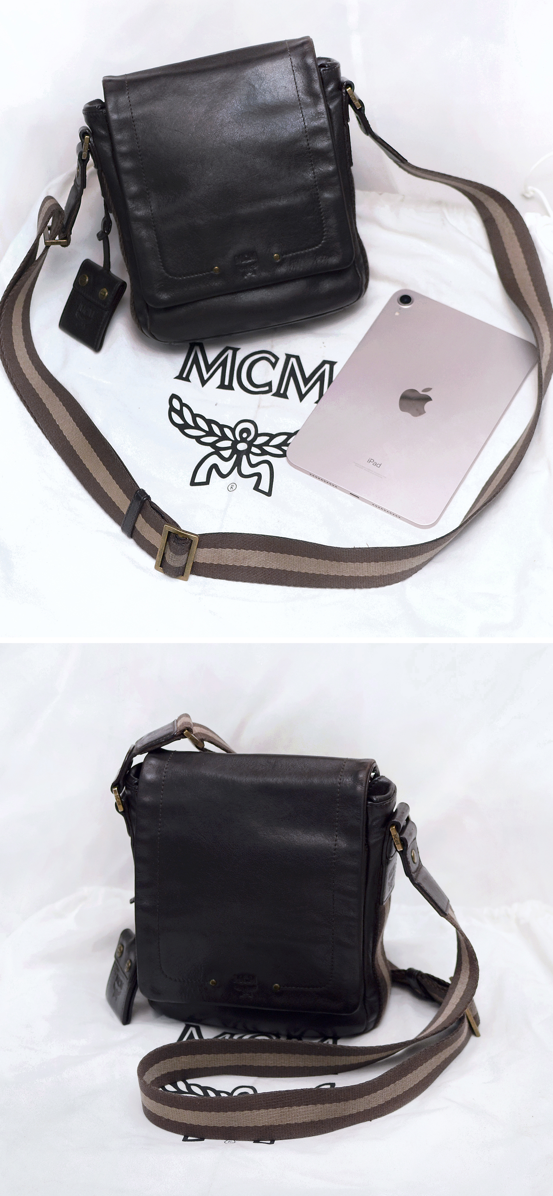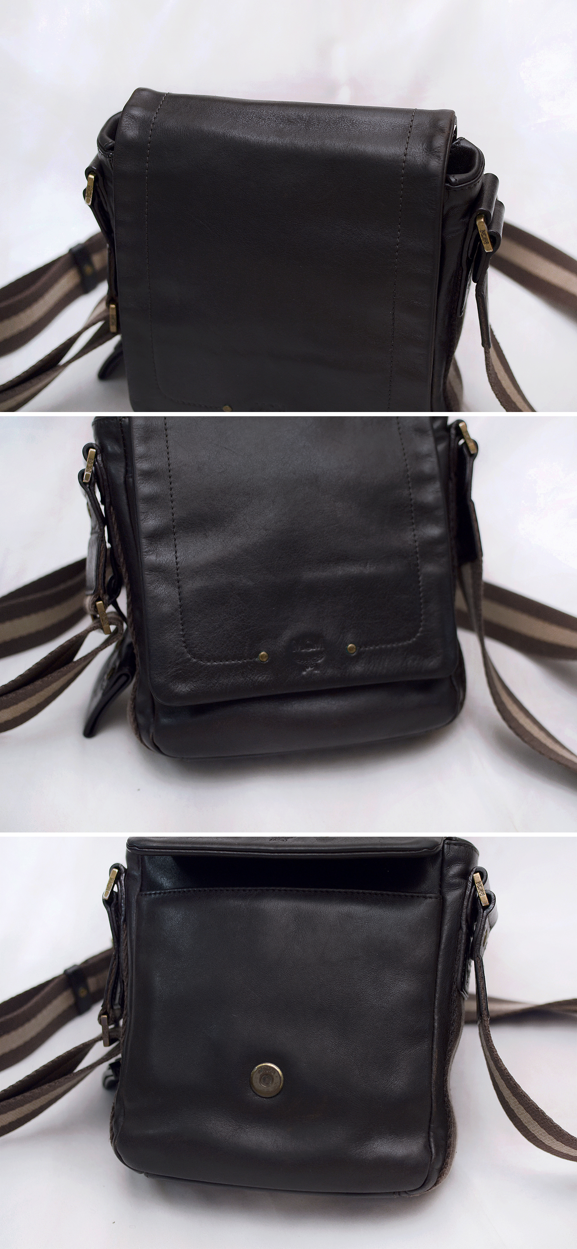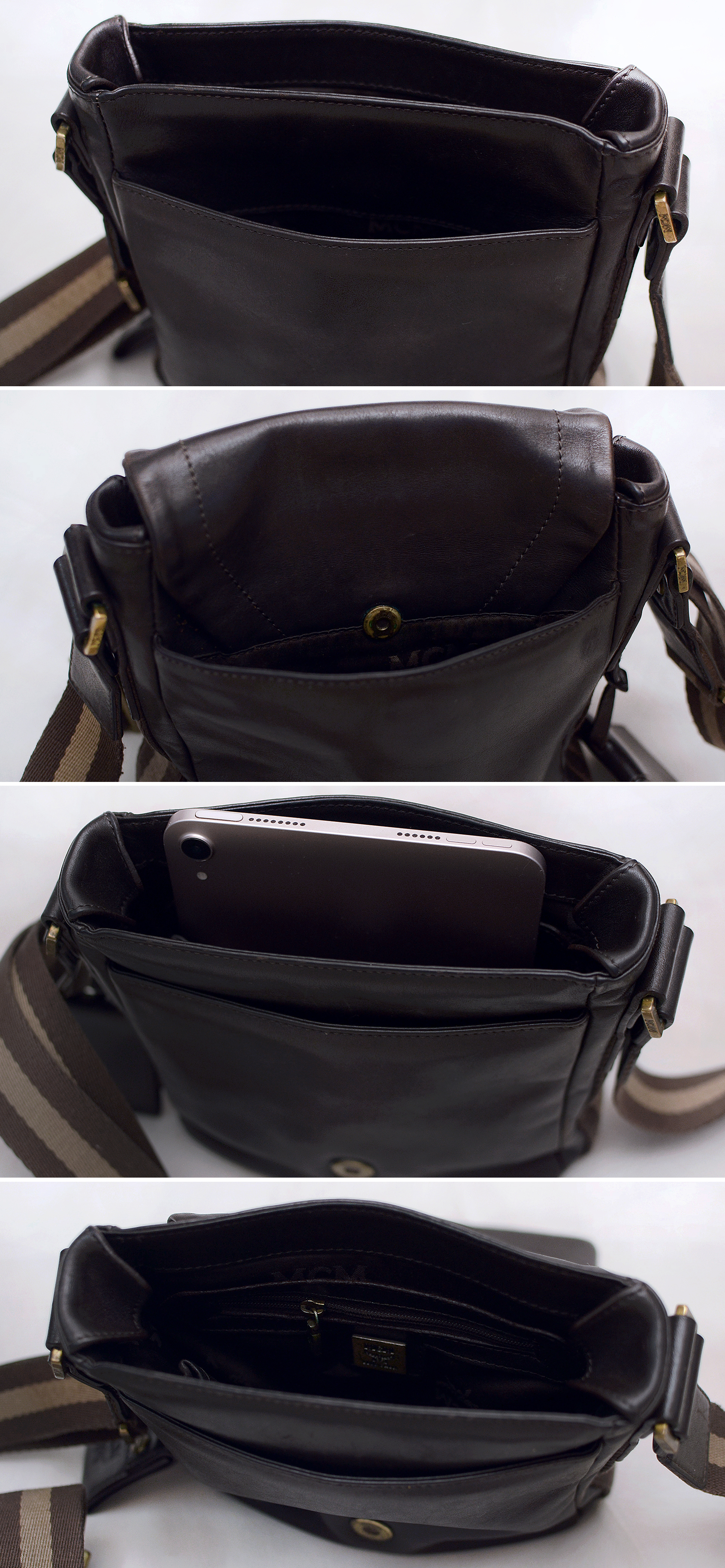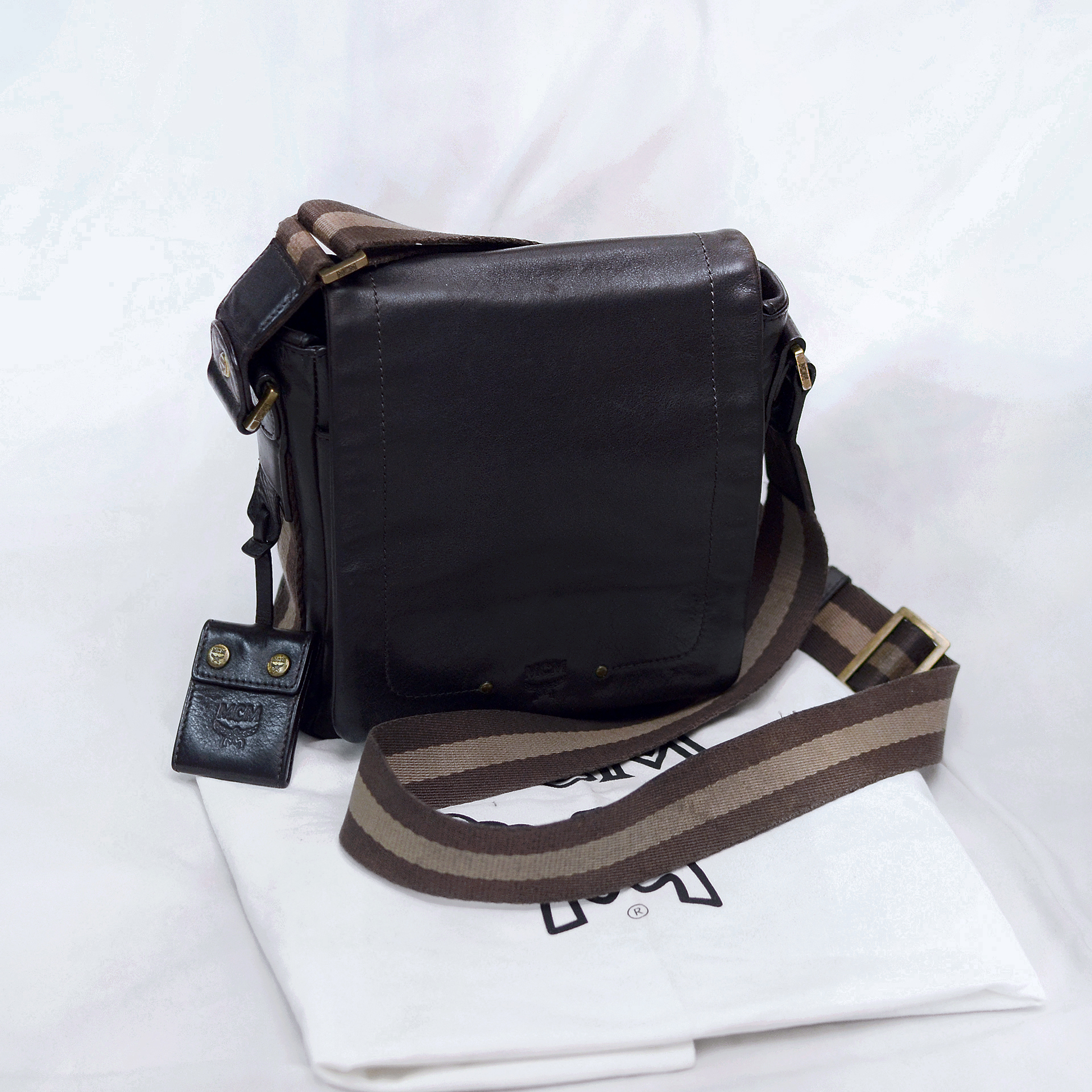 MCM (Modern Creation München) 뮌헨 삼선 라이닝 풀그레인 브라운 카프스킨 레더 미니백 당연히 정품