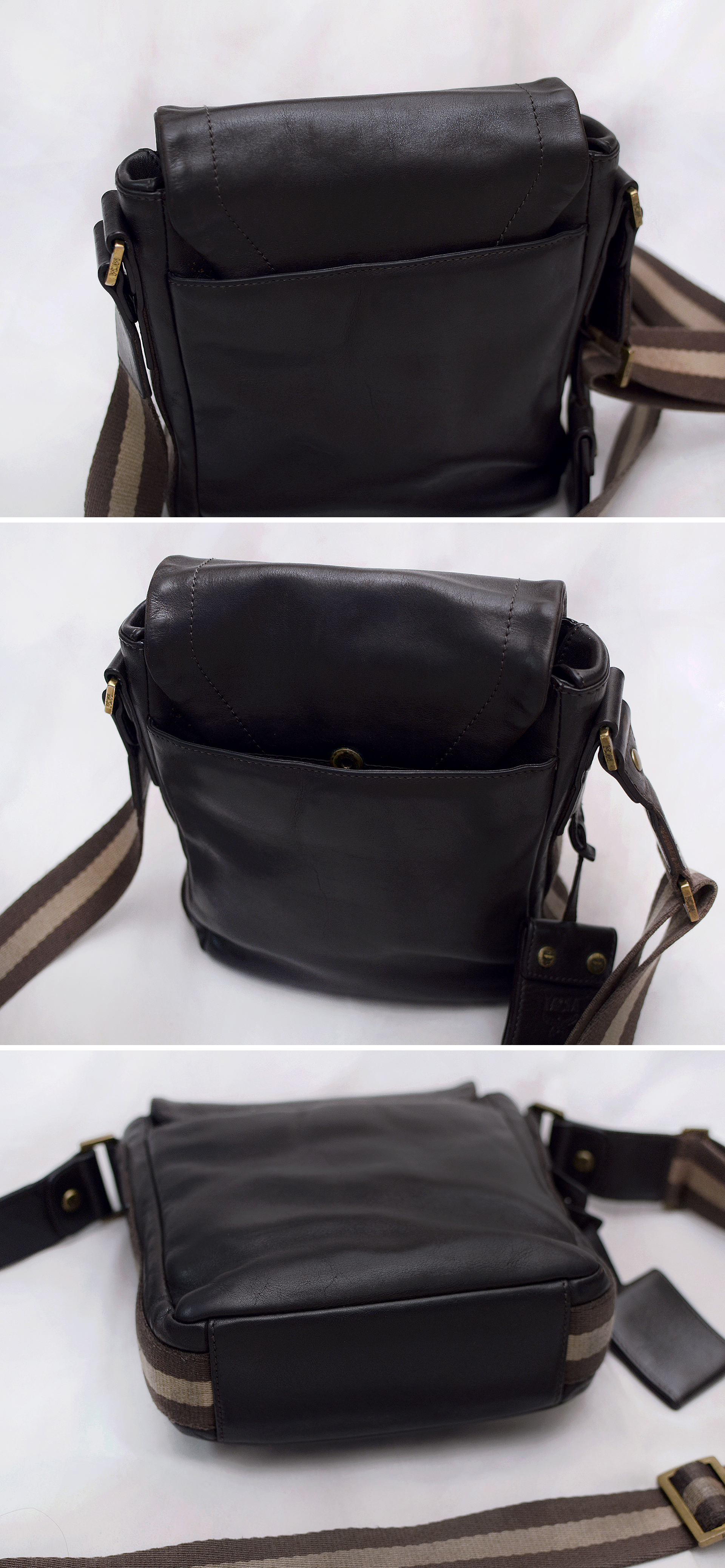 정도의 미니 사이즈 스몰 사이즈로 A5 노트나 7.9인치 아이패드 미니 정도 딱 맞게 들어가고 작은 사이즈지만 포켓 다채롭게 잘 되어있어 깔끔하고 효율적인 수납 가능해 가벼운 일상용 데일리백부터 여행용 사이드백 보조가방등으로 두루 편하게 쓰기 좋습니다. 자연스러운 사용감 정도 있으나 주기적으로 가죽 에센스 발라주며 관리해 가죽 상태 좋고 파손.훼손없이 전체적인 상태 양호합니다.