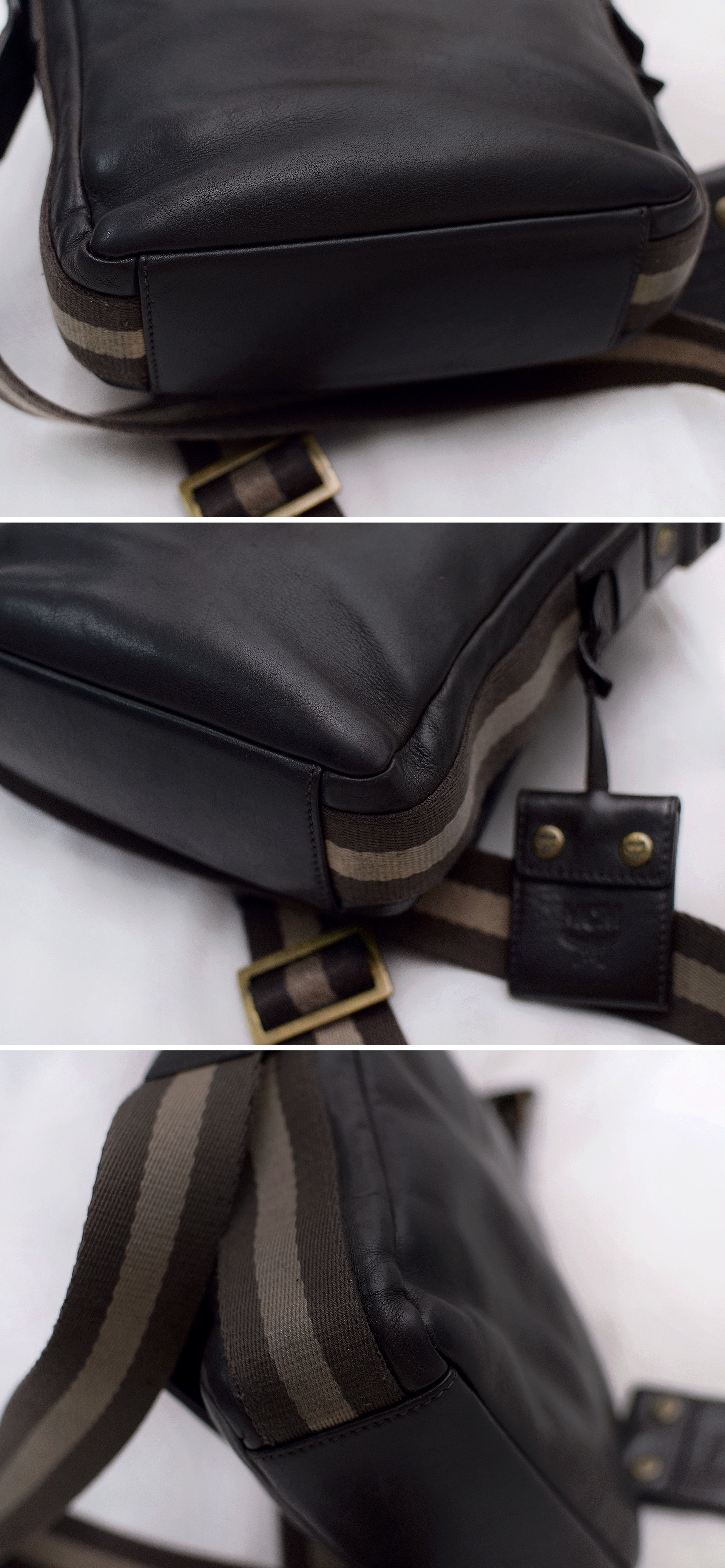 MCM 삼선 라이닝 풀그레인 카프스킨 레더 미니 메신저백 - 15만