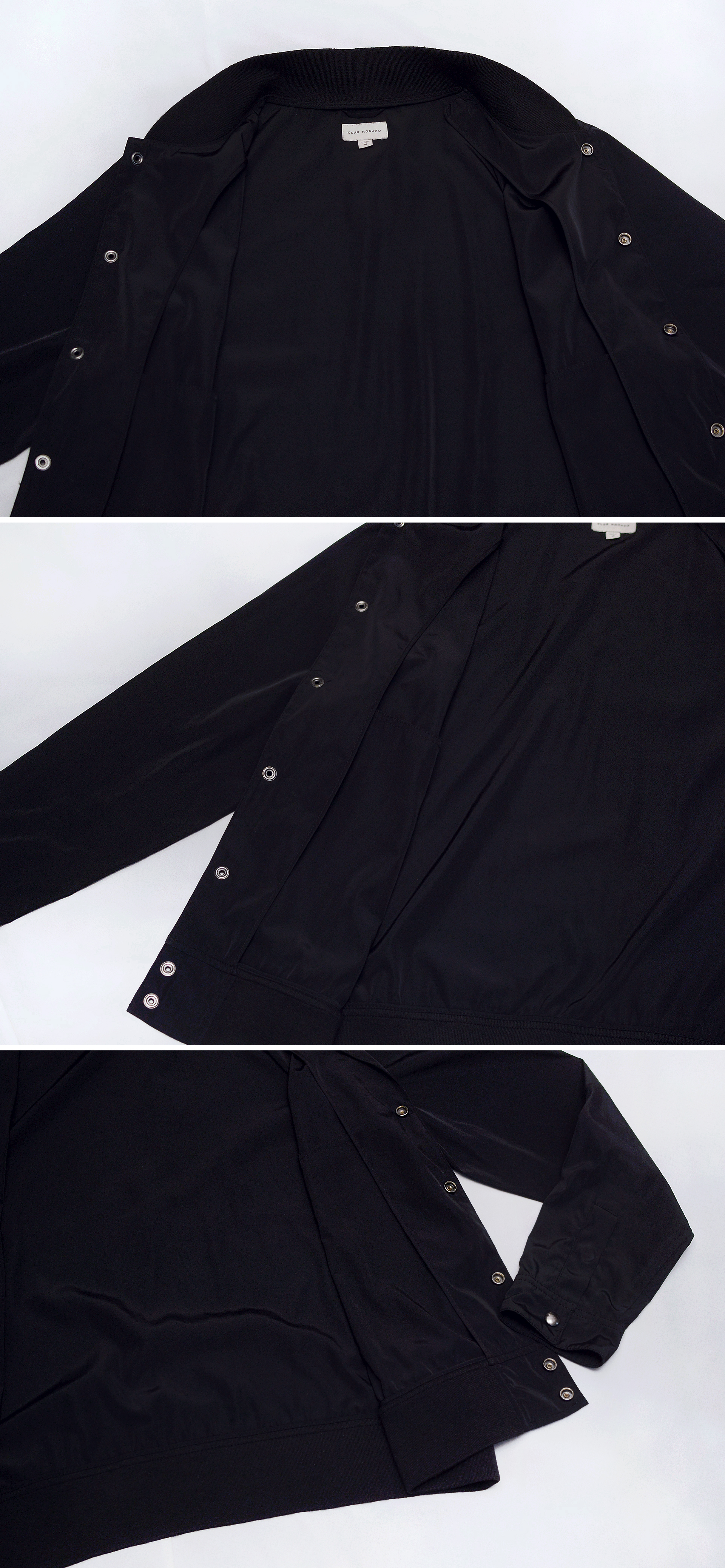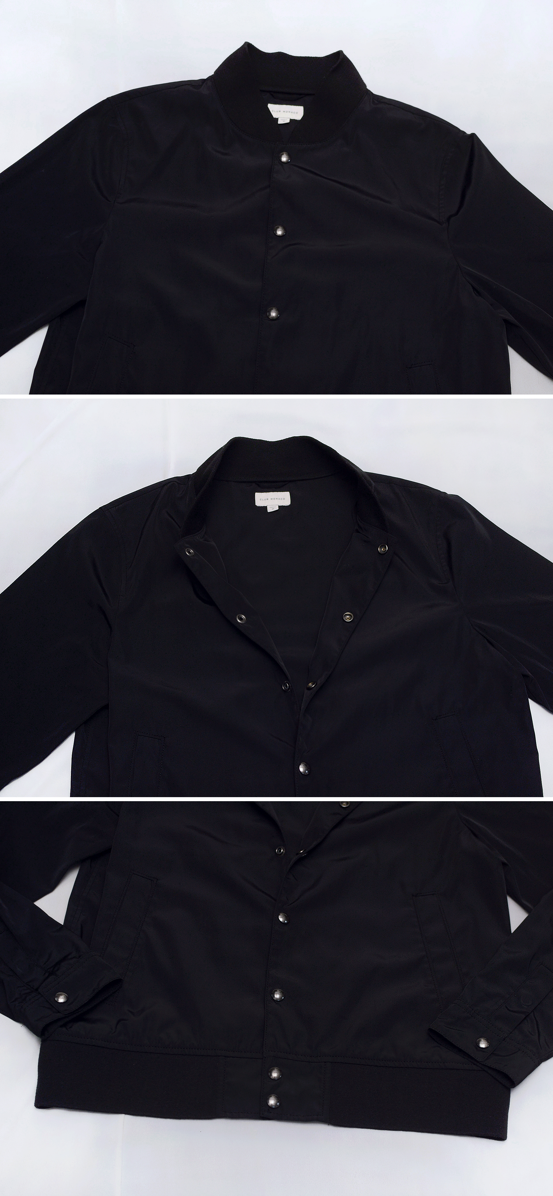 클럽 모나코 뉴욕 블랙 컬러 라이트 소프트쉘 버튼 블루종 자켓입니다. 국내 라이센스 생상품 아니라 뉴욕 소호 클럽 모나코 플래그쉽 스토어에서 직접 구입한 모델로 왠만한 브랜드에서는 다 나오는 흔한 버튼 타입 블루종 자켓이지만 더할것도 뺄것도 없는 딱 깔끔한 모던 클래식 스타일 추구하는 하이엔드 컨템포러리 브랜드 클럽 모나코다운 스타일 잘 보이는 가벼운 봄.가을용 아우터 자켓으로 지나치게 부하지 않고 실착시 라인 깔끔하게 딱 떨어지는 형태에 약간의 광택감 있는 블랙 컬러 기분좋게 바스락거리는 가볍고 착용감 좋은 소프트쉘 소재로 봄.가을철 간절기 가볍고 멋스러운 아우터 자켓으로 깔끔하게 입기 좋습니다.
