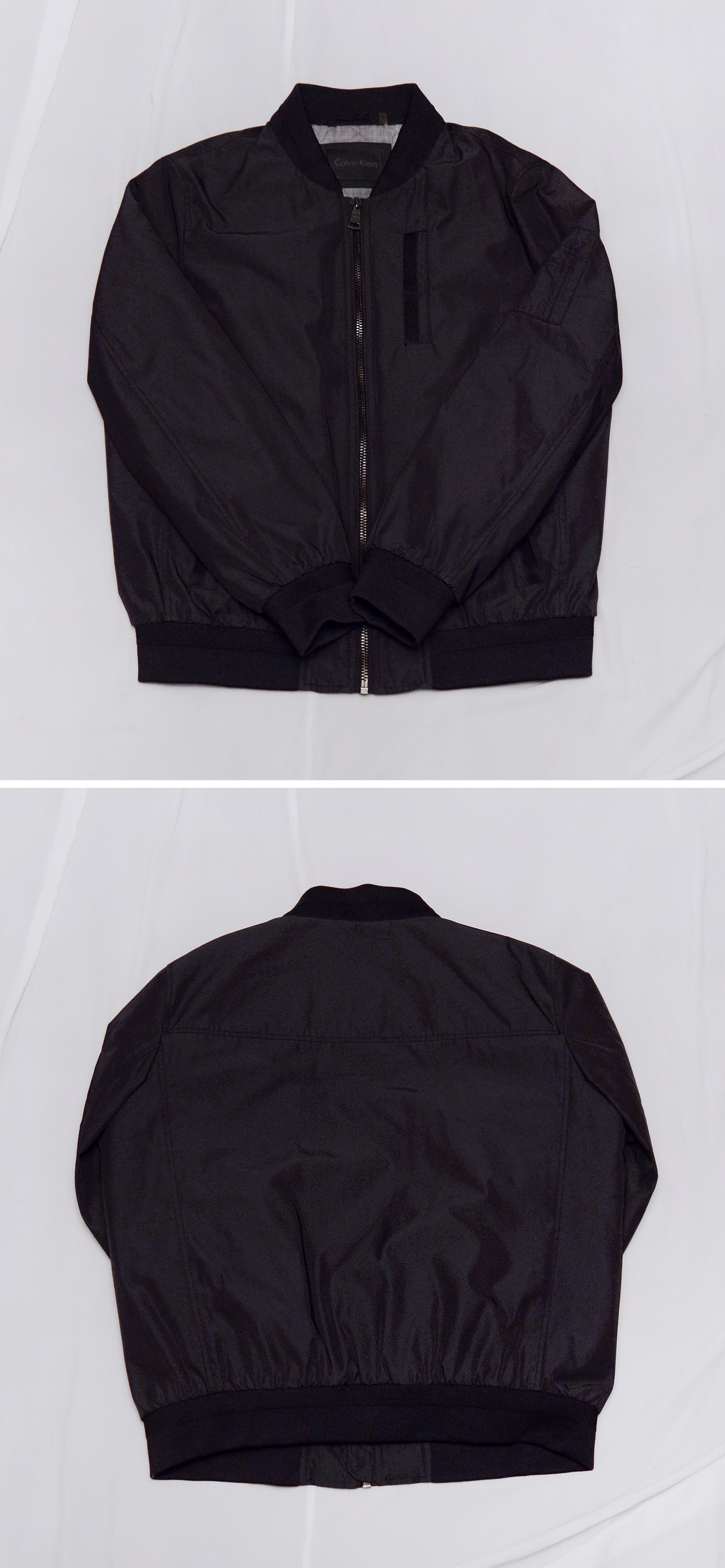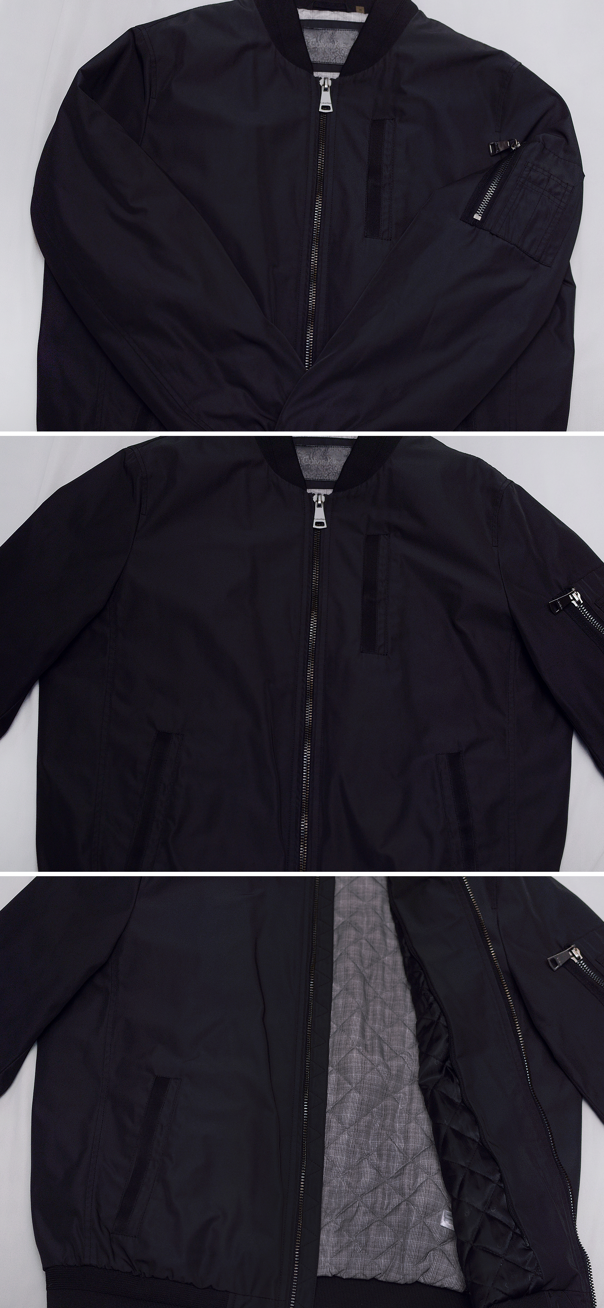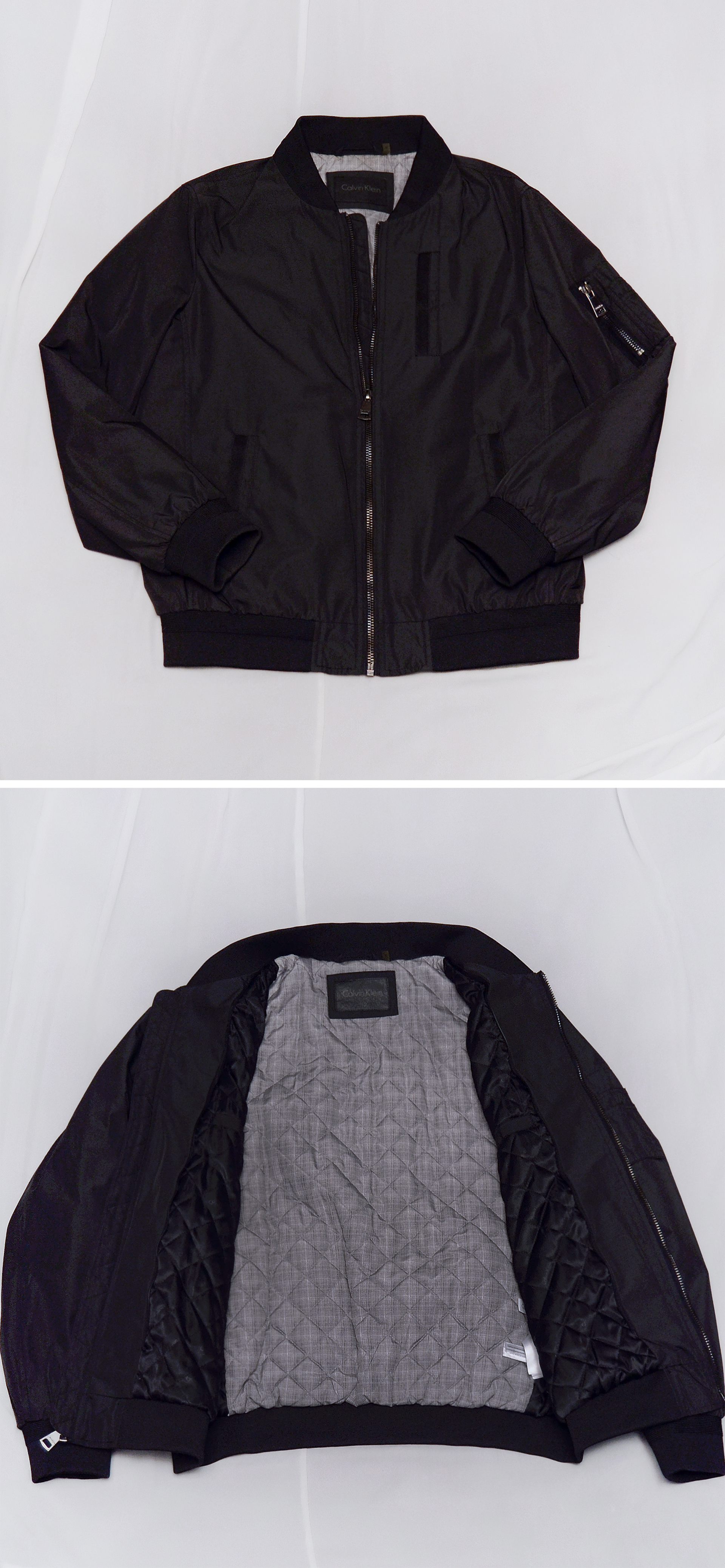 보급형 캐쥬얼 라인 캘빈 클라인 진 (CKJ) 아닌 미국 현지 CK 플래그쉽 스토어에서 구입한 고급형 하이 컨템포러리 라인인 캘빈 클라인 오리지널 브랜드의 MA-1 스타일 퀼팅패딩 봄버 자켓입니다. 밀리터리 항공 자켓의 클래식 스테디셀러인 MA-1 플라이트자켓의 오리지널리티를 충실히 잘 구현하면서도 현대적인 시티 캐쥬얼 스타일 좀 더 깔끔하게 딱 떨어지는 세련된 형태로 재해석한 자켓으로 고급형 오리지널 CK 라인답게 소재 및 만듬새 좋습니다. 너무 펄럭거리는 가벼운 겉감 소재 아니고 다크그린톤 살짝 감도는 무광 블랙 컬러 탄탄한 하드쉘 타입 겉감에 안쪽으로는 너무 부하지 않은 정도로 촘촘한 다이아몬드 퀼팅 패딩 처리되어 있어 어느정도 방한성.보온성 있어 봄.가을 간절기 가벼운 단독 아우터 자켓부터 초겨울 정도까지 도톰한 후드티등과 함께 매치해 멋스럽게 입기 좋습니다.