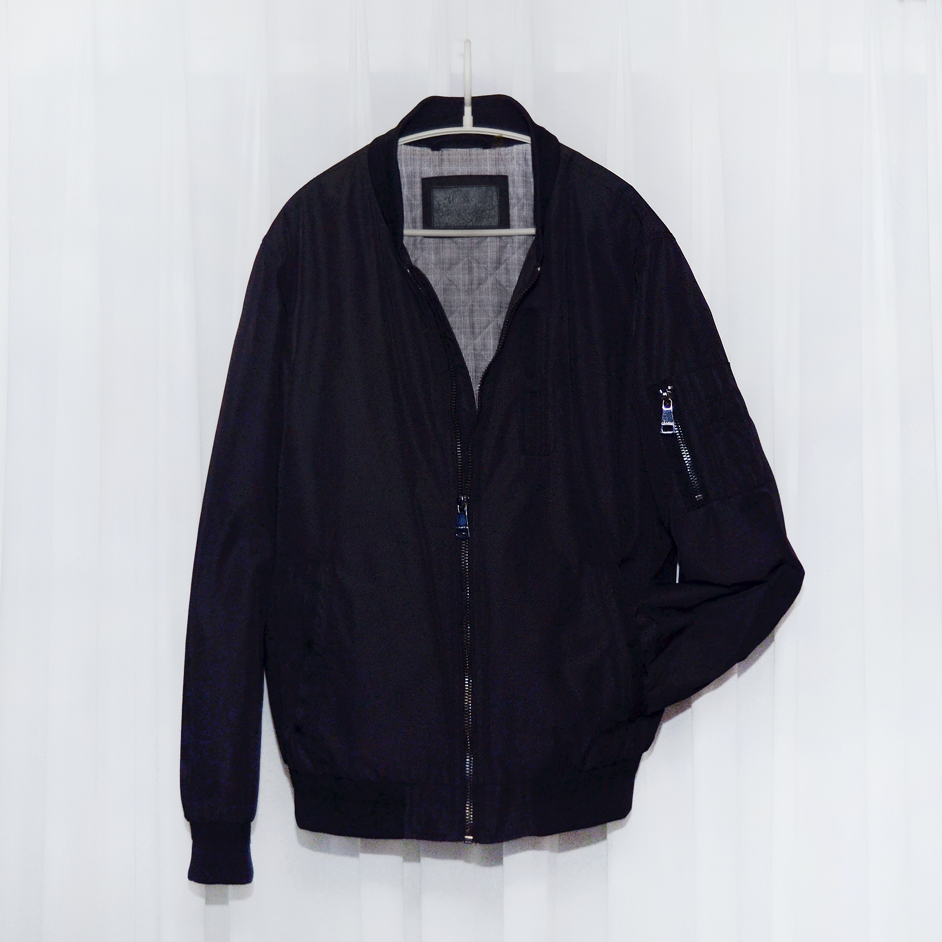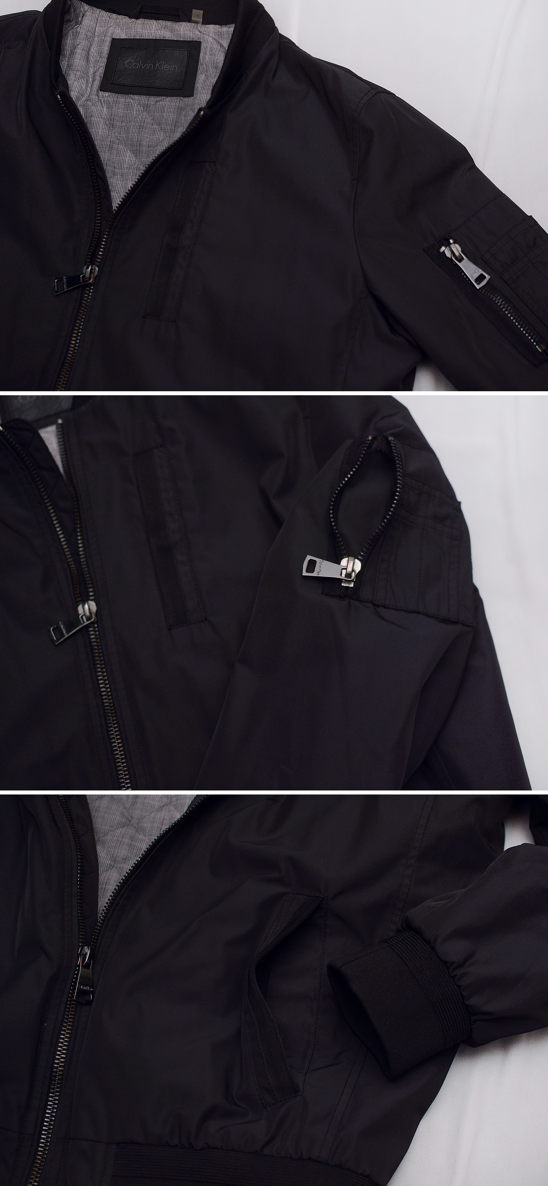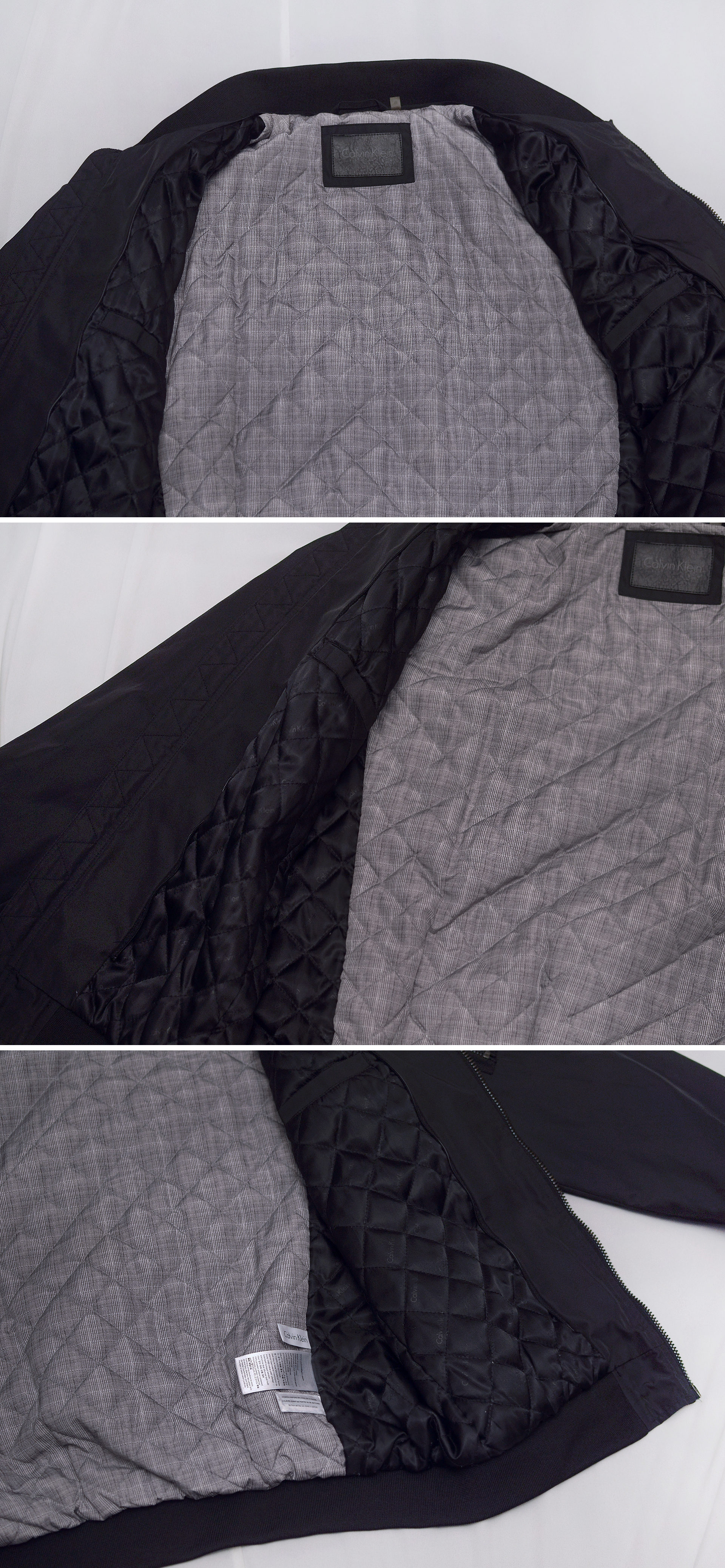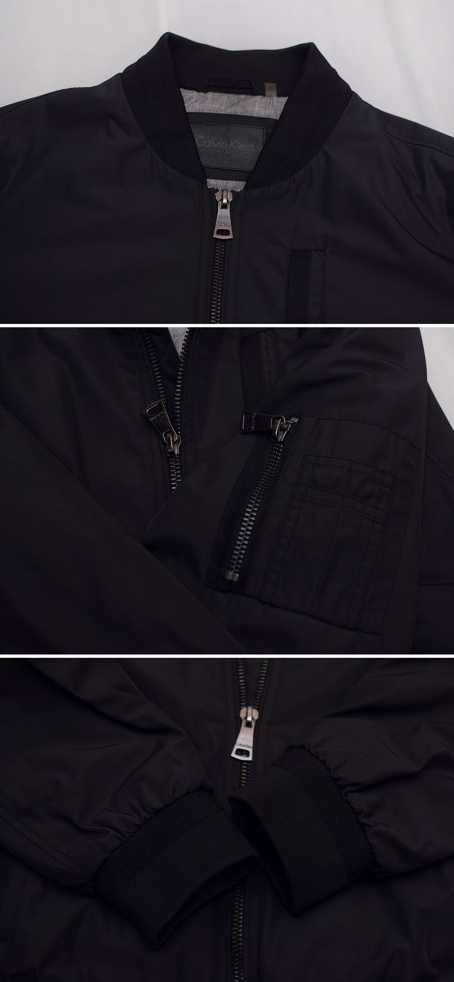 보급형 캐쥬얼 라인 캘빈 클라인 진 (CKJ) 아닌 미국 현지 CK 플래그쉽 스토어에서 구입한 고급형 하이 컨템포러리 라인인 캘빈 클라인 오리지널 브랜드의 MA-1 스타일 퀼팅패딩 봄버 자켓입니다. 밀리터리 항공 자켓의 클래식 스테디셀러인 MA-1 플라이트자켓의 오리지널리티를 충실히 잘 구현하면서도 현대적인 시티 캐쥬얼 스타일 좀 더 깔끔하게 딱 떨어지는 세련된 형태로 재해석한 자켓으로 고급형 오리지널 CK 라인답게 소재 및 만듬새 좋습니다. 너무 펄럭거리는 가벼운 겉감 소재 아니고 다크그린톤 살짝 감도는 무광 블랙 컬러 탄탄한 하드쉘 타입 겉감에 안쪽으로는 너무 부하지 않은 정도로 촘촘한 다이아몬드 퀼팅 패딩 처리되어 있어 어느정도 방한성.보온성 있어 봄.가을 간절기 가벼운 단독 아우터 자켓부터 초겨울 정도까지 도톰한 후드티등과 함께 매치해 멋스럽게 입기 좋습니다.