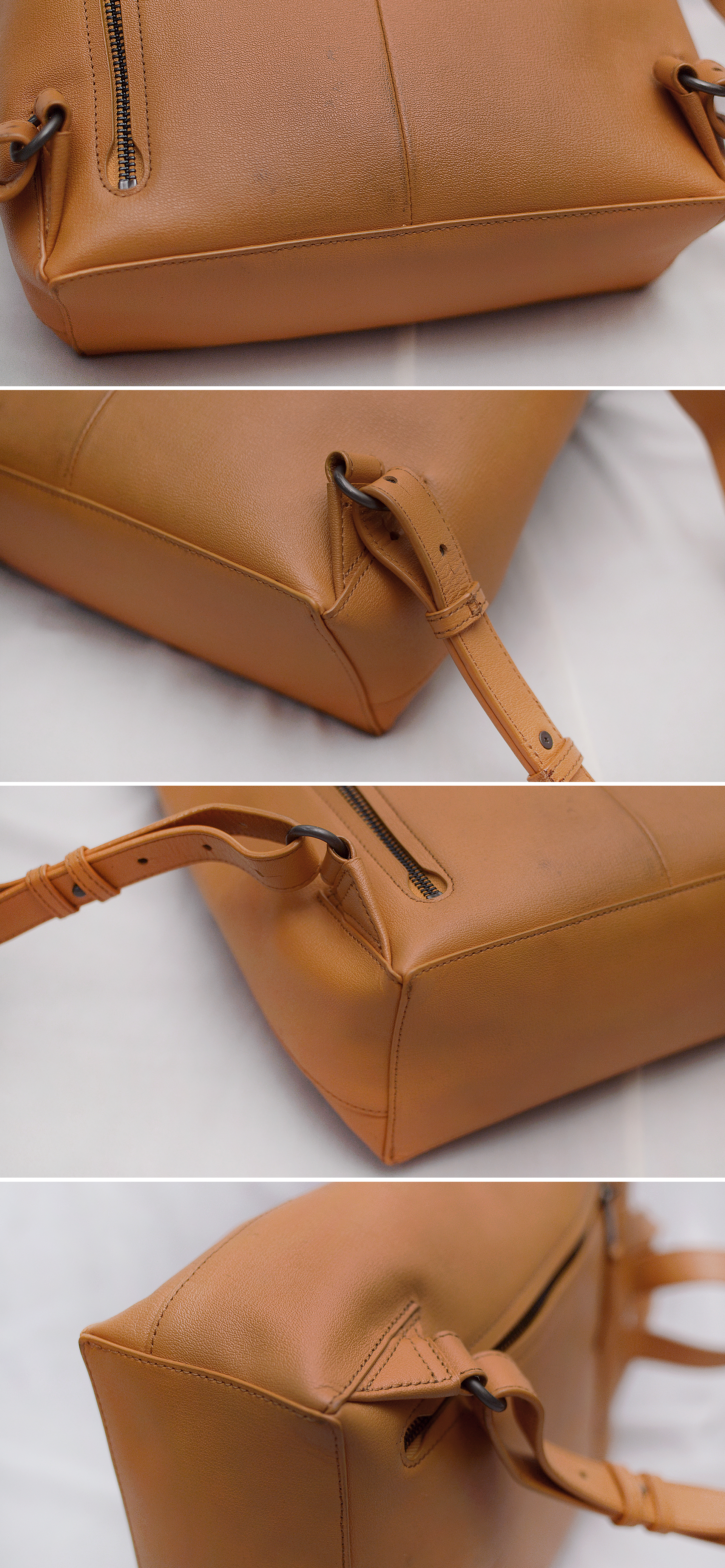 정도의 미디움 사이즈로 A4 서류파일 및 9.7-11인치급 아이패드와 12-13인치급 노트북 정도까지 딱 깔끔하게 수납 가능해 멋스러운 일상용.출퇴근용 백팩부터 여행용 보조가방등 다용도로 두루 편하게 쓰기 좋습니다. 소재 특성상 등쪽 하단 부분등 자주 닿는곳에 자연스러운 사용감 정도 있으나 다른 가방들 많아 돌려가며 쓰는 편이라 눈에띄는 큰 파손.훼손없이 전체적인 상태 양호합니다.