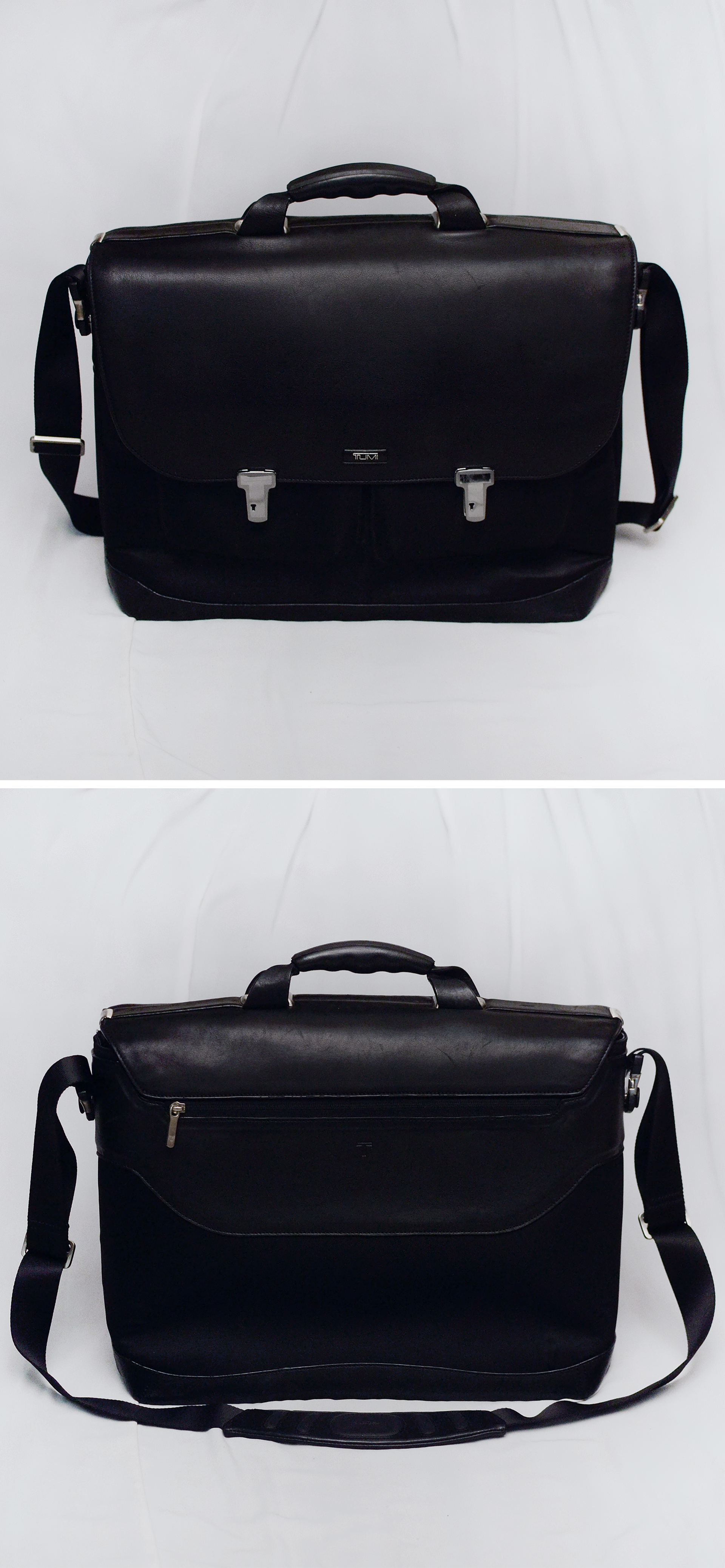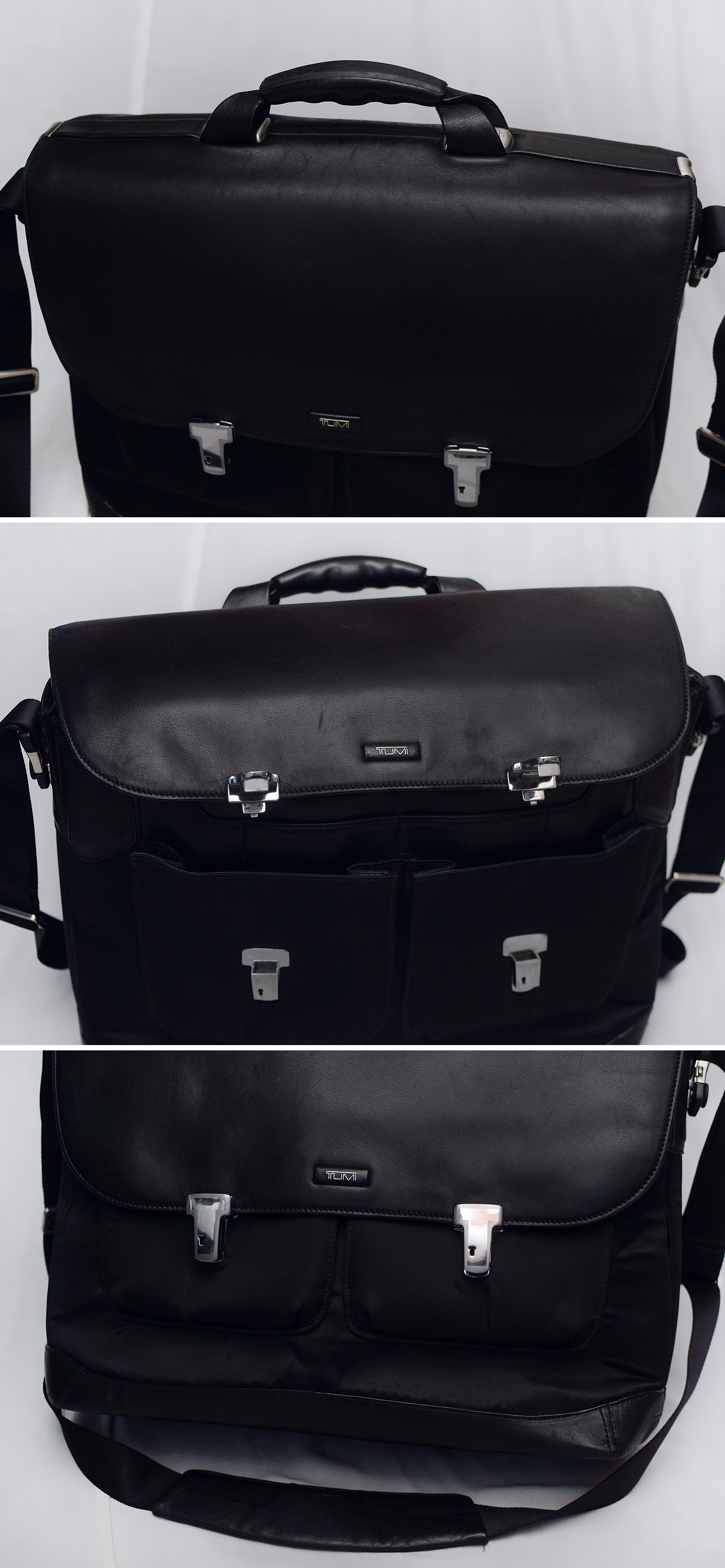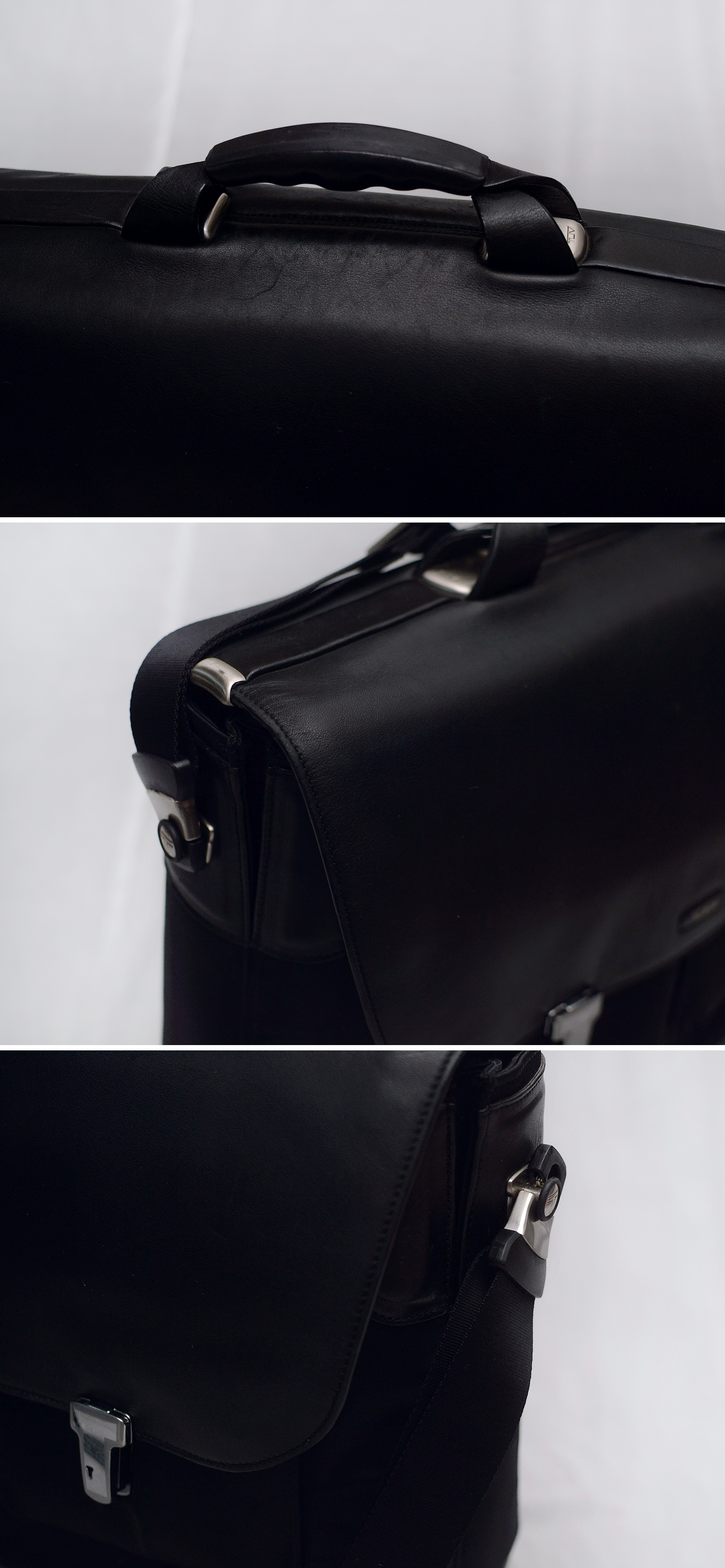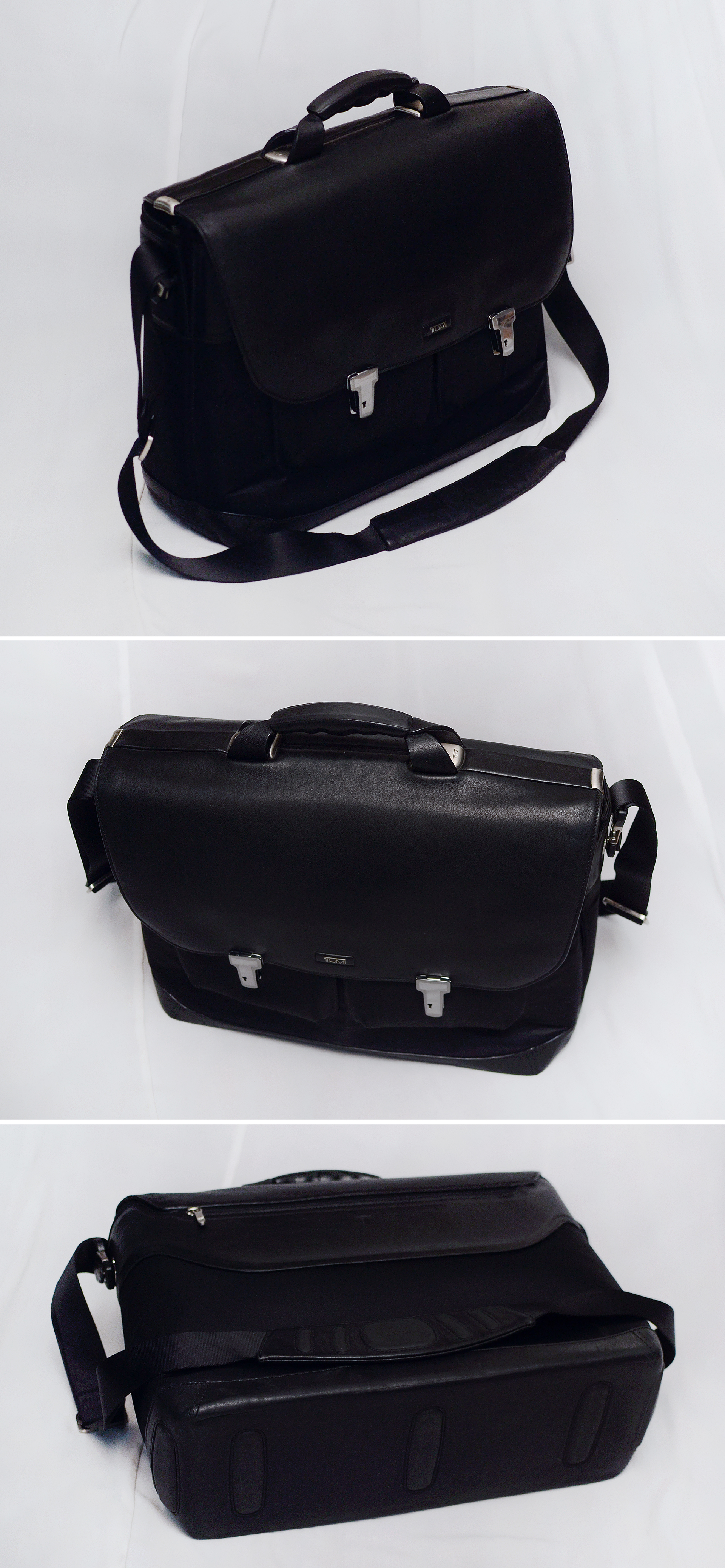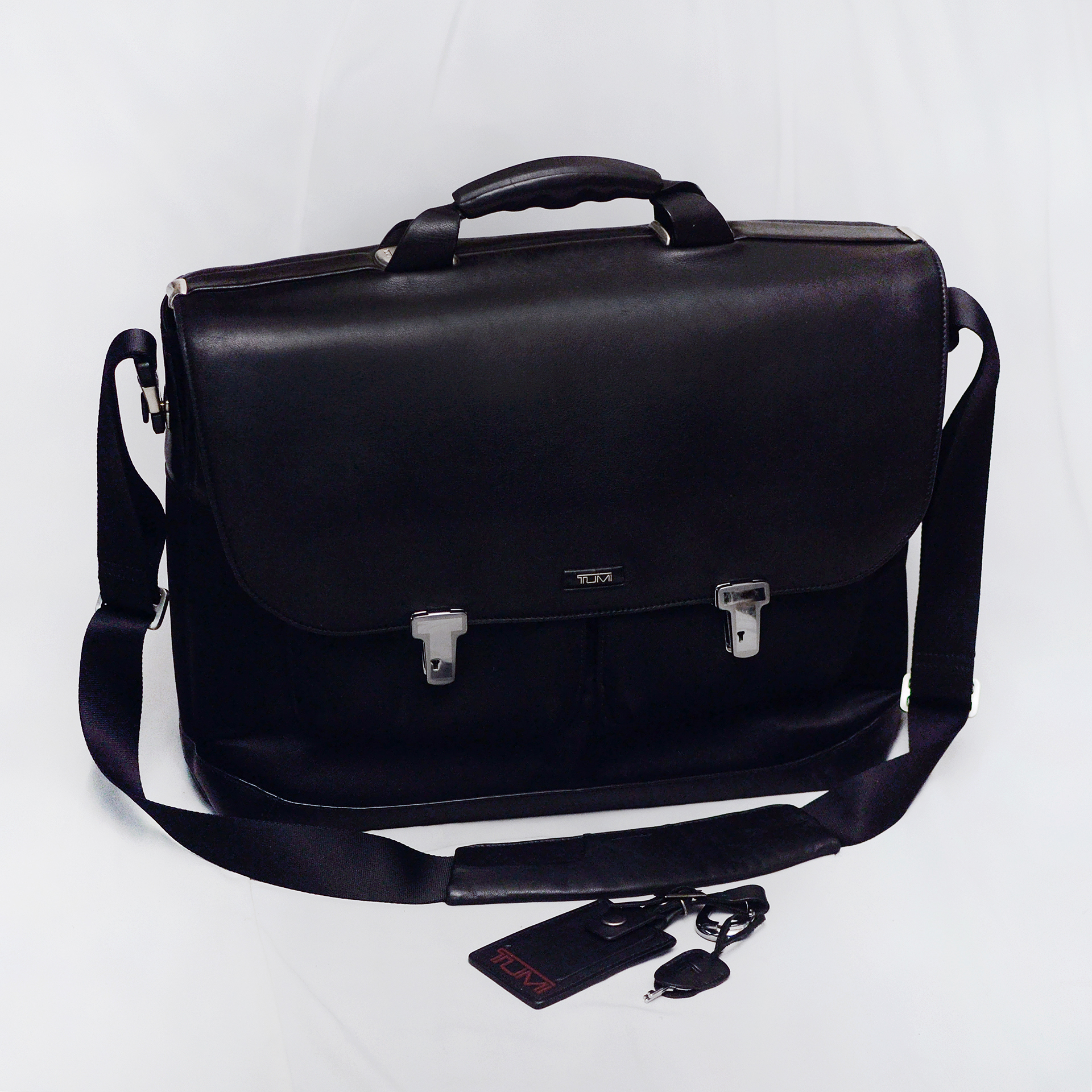 정도의 라지 사이즈에 클래식한 방식의 키락 잠금식 금속 버클등 있어 다양한 서류.노트북등 넣고 다니는 대한원생 직장인 비즈니스용 출장용 가방등으로 멋스럽게 쓰기 좋습니다. 한동안 주력 비즈니스백으로 자주 사용해 자주 닿는 부분등에 자연스러운 사용감 정도 있으나 투미답게 워낙 튼튼하고 내구성 좋은 가방이라 찢김.뜯김등 눈에띄는 큰 파손.훼손없이 전체적인 상태 아직 양호합니다.