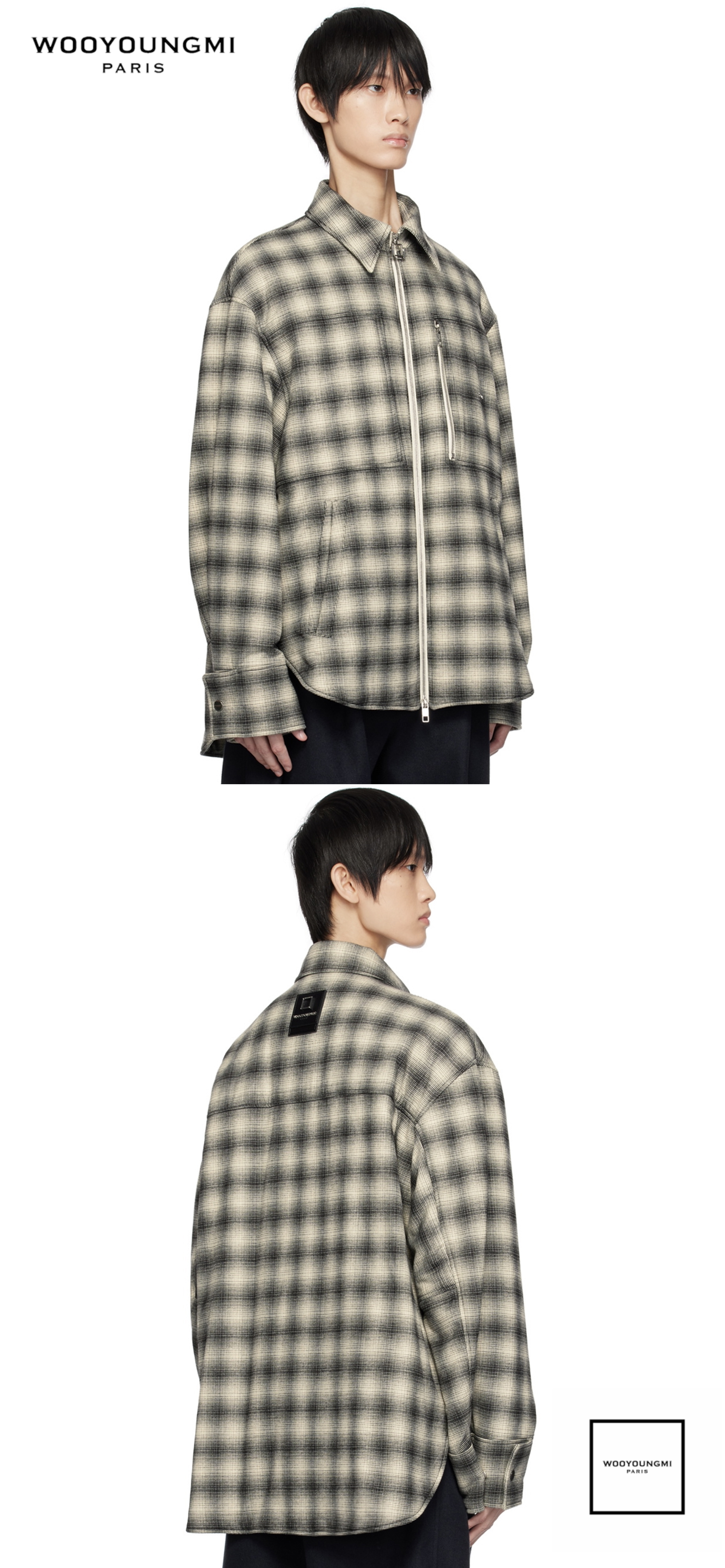 우영미 (WOOYOUNGMI) 파리 플래드 체크 패디드 더블 집업 오버 자켓 당연히 정품