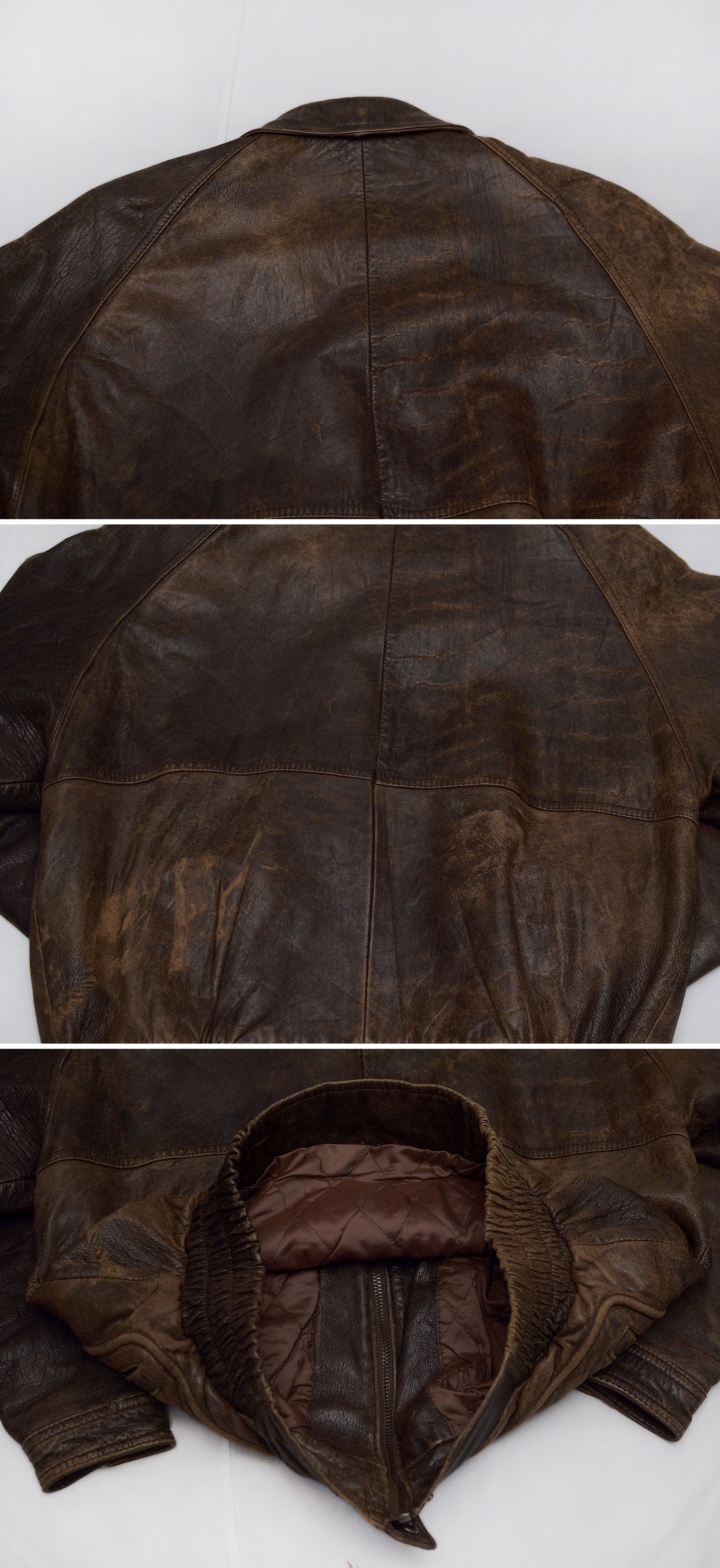 정도로 일반 국내 사이즈 기준 넉넉 100 정도 보시면 될거 같습니다. 보통 체격 남성분들 살짝 넉넉한 폼으로 멋스럽게 입기 좋고 여성분들 여유로운 폼의 오버핏 스타일로 후드티등과 레이어드해서 입어도 멋스럽게 잘 어울립니다. 자연스러운 착용감 정도 있으나 다른 아우터 자켓등 많아 돌려가며 입는 편이고 주기적으로 가죽 에센스 발라주며 잘 관리해 가죽 상태 최상으로 잘 유지했고 찢김.뜯김등 눈에띄는 큰 파손.훼손없이 전체적인 상태 양호합니다.