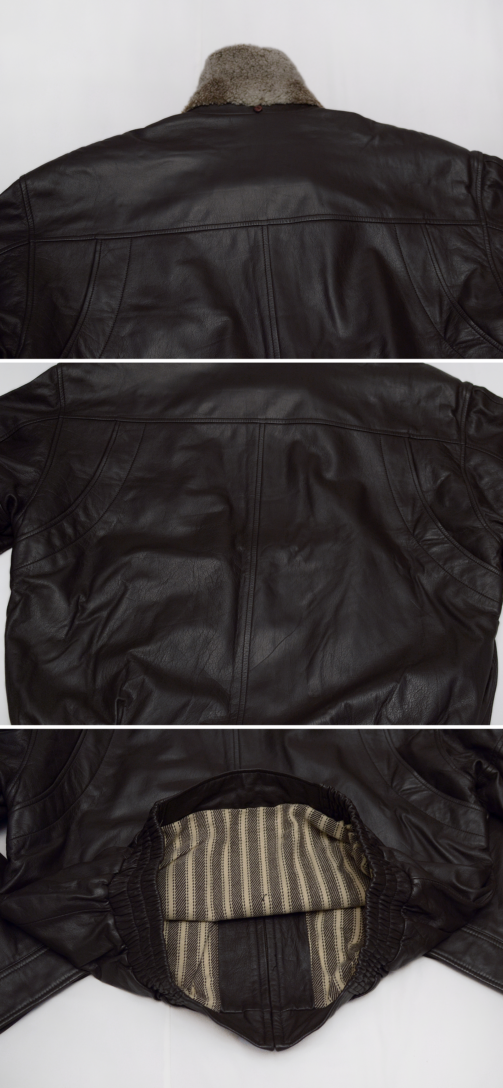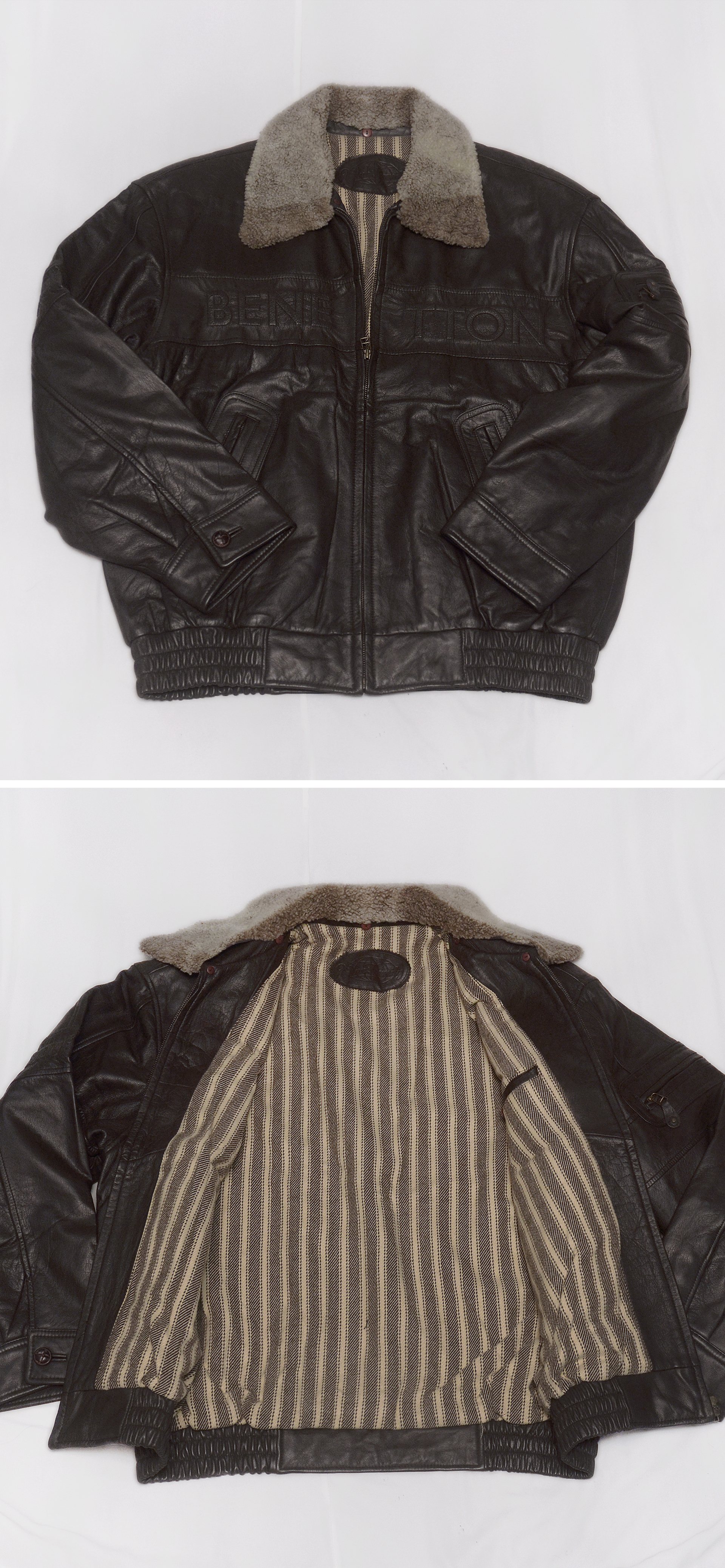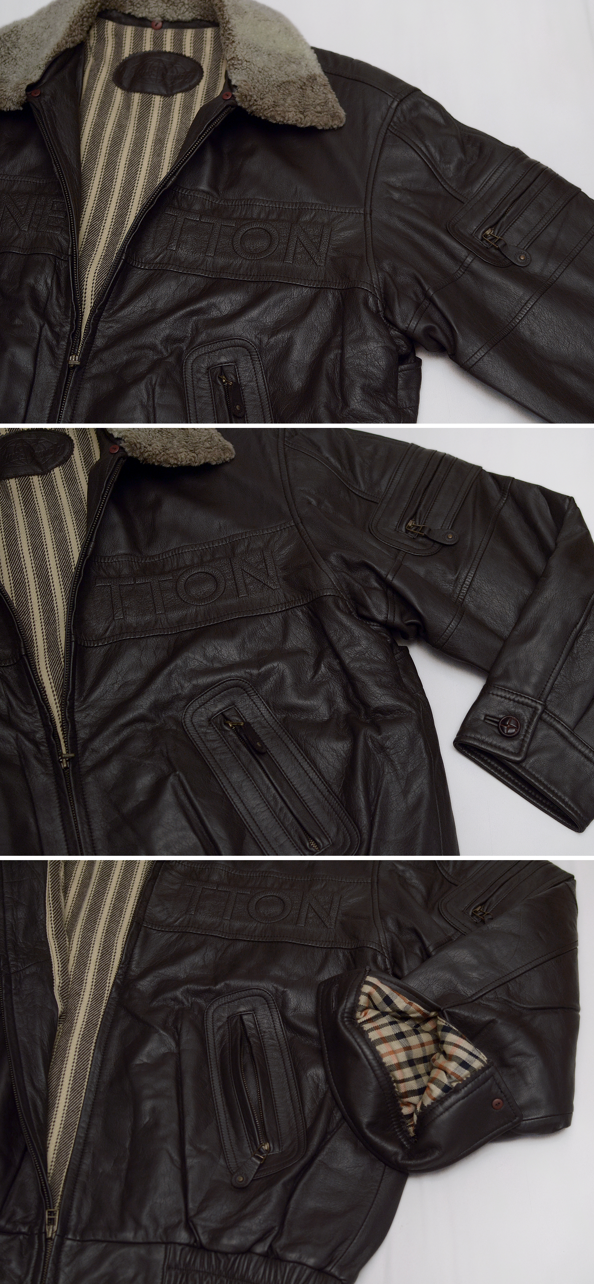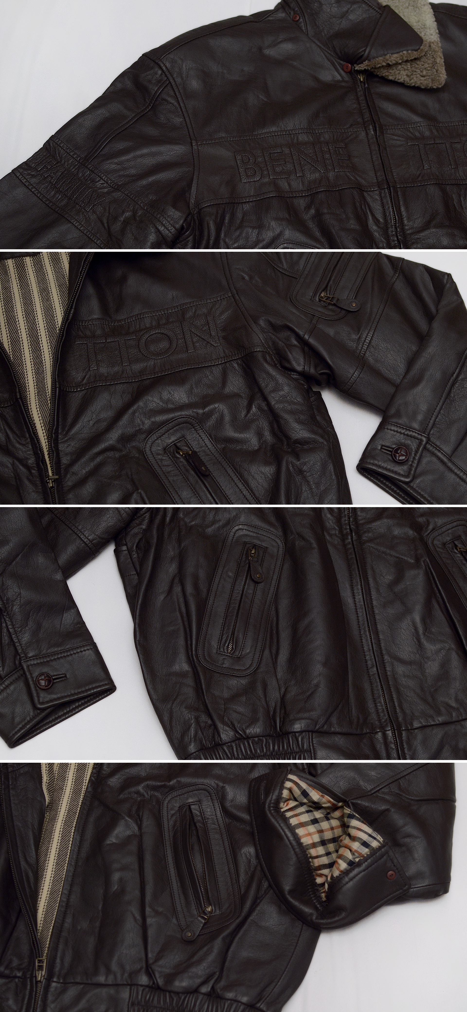 베네통 이태리 메이드 블루패밀리 라인 양털 시어링 카라 레더 봄버 자켓입니다. 90년대 베네통 전성기 시절 만들어진 이태리 메이드 블루패밀리 최고급 라인 국내 정식 수입품으로 매우 희귀한 레어템 입니다. 클래식한 A-2 레더 봄버 플라이트 자켓 스타일을 기반으로 베네통 특유의 유니크한 포인트 멋스러운 8-90년대 레트로한 오버핏하고 루즈한 스타일 여전히 너무나 멋스럽습니다. 짙은 다크초코 컬러에 부드러운 촉감의 최고급 카프스킨 레더 (송아지가죽) 소재에 탈착 가능한 천연 양털 시어링 카라 넉넉한 폼에 넓은 어깨라인 드롭숄더 타입이면서 허리 밴딩으로 라인 깔끔하게 딱 잡아줘 그야말로 남성적 테스토스테론이 흘러넘치는 듯한 멋스러움 훌륭합니다.
