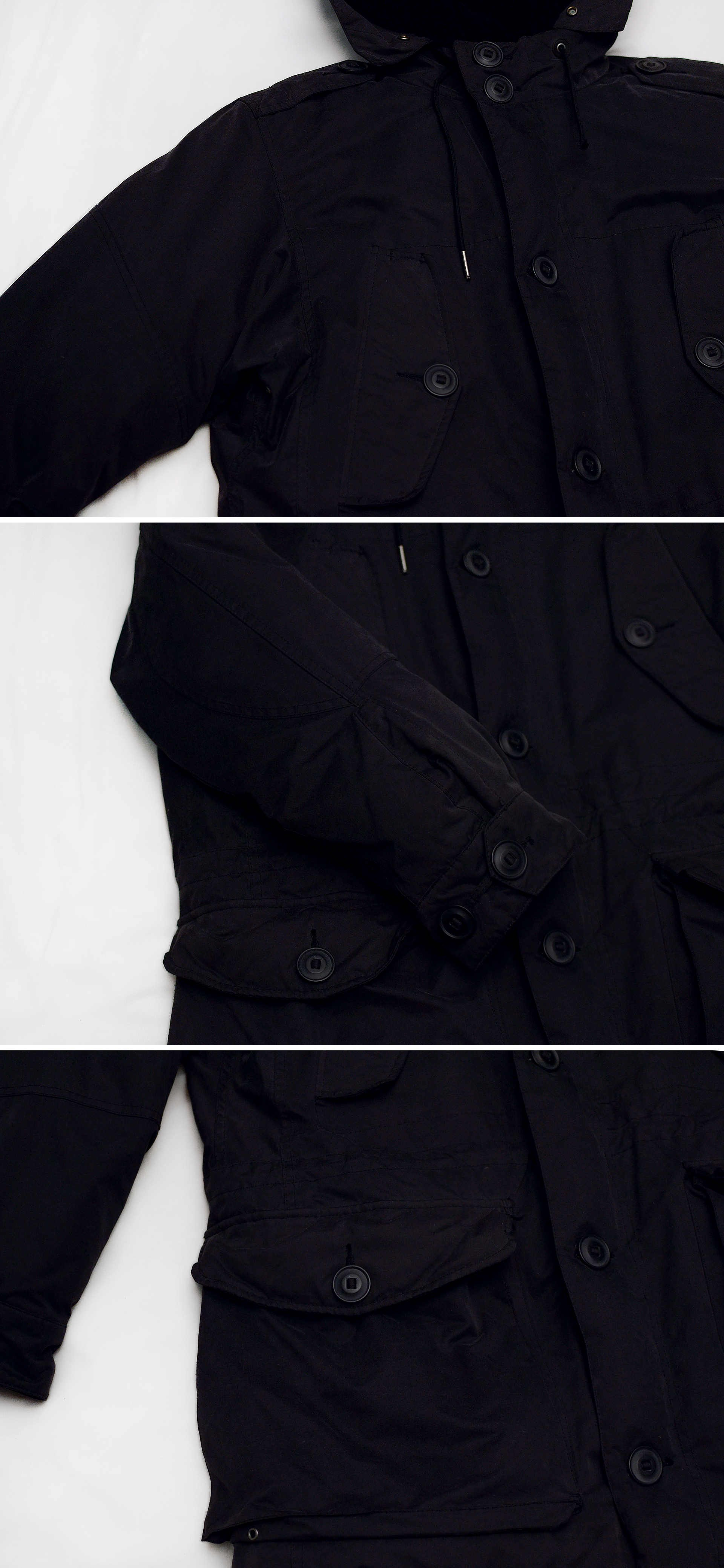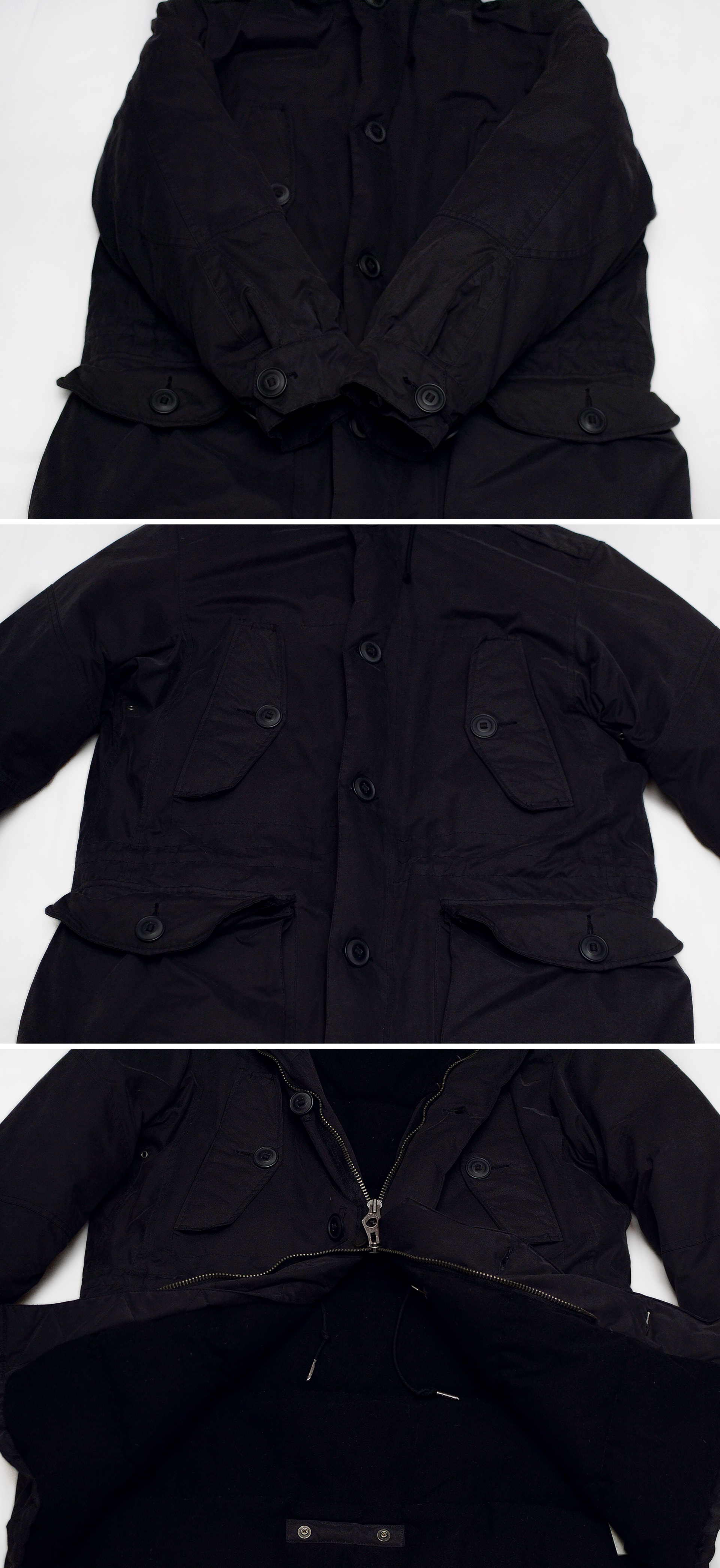 폴롤 랄프로렌 복각 N3B 피쉬테일 덤블 후드 헤비다운 야상 롱파카 입니다. 클래식 아메카지 스타일을 기반으로 하며 1900년대 초중반 멋스러운 밀리터리 의류들에 관해 진심인 랄프로렌다운 오리지널리티 가득한 복각 N3B 피쉬테일 파카입니다. 그저 대충 겉모양만 비슷하게 만들어낸 N3B 스타일 파카가 아니라 원래 미 공군.해군 조종사들이 북극등 극한의 추위에서도 견딜수 있도록 설계된 오리지널 N3B 파카를 제대로 복각해 만들어 내면서도 현대적인 기술력 더해진 헤비다운 롱패딩 파카로 블랙에 가까운 짙은 다크 네이비 컬러 탄탄한 헤비코튼 겉감 소재에 후드 부분 안쪽 퍼안감 되어있고 풍성한 다운 우모량에 더해 기모 안감까지 더해져 보온성 탁월한데다 가슴부분 핸드 포켓의 이중 접이식 돌출형 디자인이나 그냥 모양만이 아니라 실제 안쪽으로 스냅 버튼 고정해 말아올리면 외부 공기와 바람을 확실히 막아주는 뒷부분 피쉬테일등 형태등 오리지널 N3B 파카의 기능적 설계등 그대로 충실히 잘 구현되어 있습니다. 때문에 꽤 묵직한 무게감이지만 그만큼 따듯하고 포근해 한겨울 한파에도 든든하고 유행 상관없는 클래식 밀리터리 파카 스타일이라 두고 두고 입기 좋습니다.