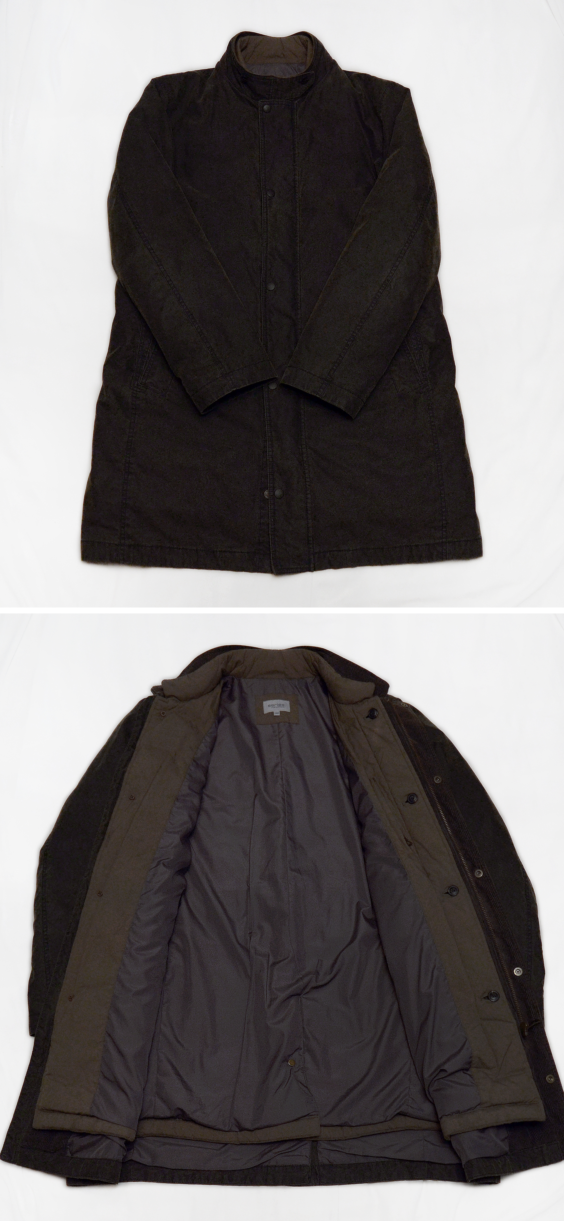 코오롱 어반 시티 캐쥬얼 스타일 고급 남성복 브랜드의 시리즈의 더블린 구스다운 코트 자켓입니다. 아일랜드의 수도 더블린의 이름을 딴 FW 시즌 시그니처 아이템으로 같은 계절 같은 하루중에도 계속해서 변하는 아일랜드 지역의 변화무쌍한 날씨에도 유연하게 대처할 수 있게 한다는 컨셉으로 만들어져 날씨나 필요에 따라 따로 또 같이 입을 수 있는 디테처블 타입 구스다운 라이너 내피 자켓과 멋스러운한 스타일의 외피 자켓으로 구성된 2웨이 코트 자켓입니다. 가먼트다잉 피그먼트 코팅된 짙은 다크 카키 컬러 도톰한 코튼 혼방 소재에 카라 안쪽 코듀로이 배색된 내츄럴 빈티지한 시리즈 특유의 멋스러운 느낌 가득한 외피 자켓과 롱기장 깔끔한 구스다운 패딩 라이너 자켓 각각 따로 입어도 충분히 멋스럽고 실용적이라 봄.가을에는 외피 자켓만 초겨울에는 다운 자켓만 각각 따로 입기 좋고 한겨울에는 같이 결합해서 입으면 충분히 멋스럽고 따듯하게 입을 수 있어 활용성 매우 좋습니다.