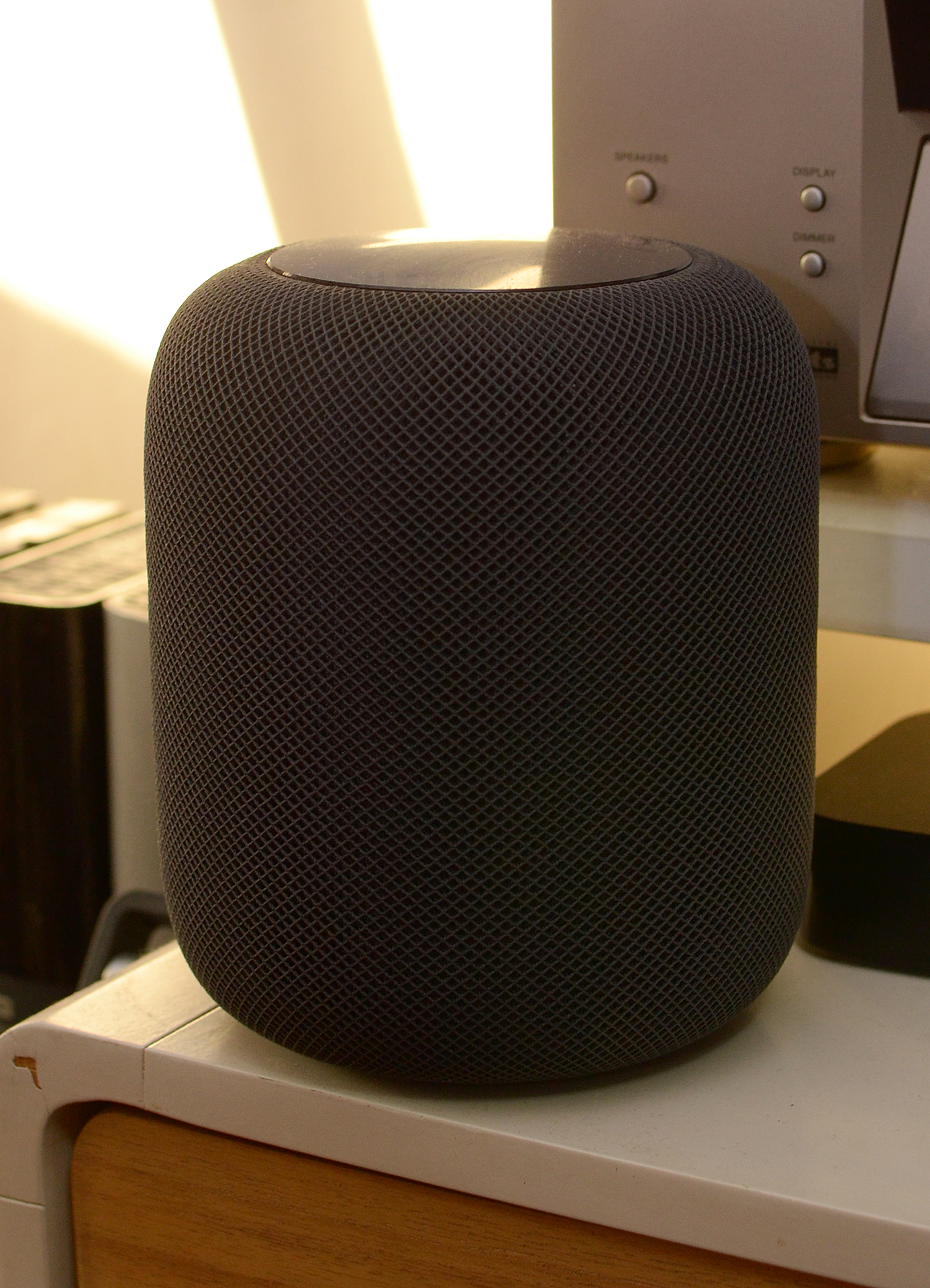 기본적인 볼록한 원통형 생김새나 패브릭 재질의 스피커 그릴의 만듬새가 애플 홈팟과 매우 흡사하다.