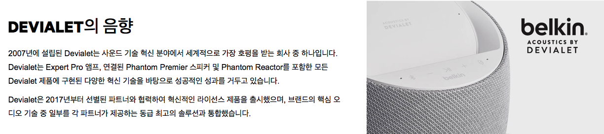 벨킨 국내 공식 사이트 제품 설명 = https://www.belkin.com/kr/speakers-headphones/speakers/soundform-elite-smart-speaker-wireless-charger/p/p-g1s0001/